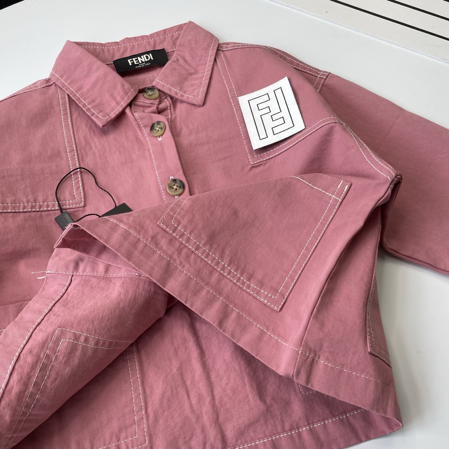 这款children's clothes是AAAAA 1:1 质量 (非常棒). 使用了和原版一模一样的材料. 商标部分也保持了和芬迪/Fendi一样. 图片拍摄是实物children's clothes拍摄, 您所收到的实物保证和我们图片一模一样.