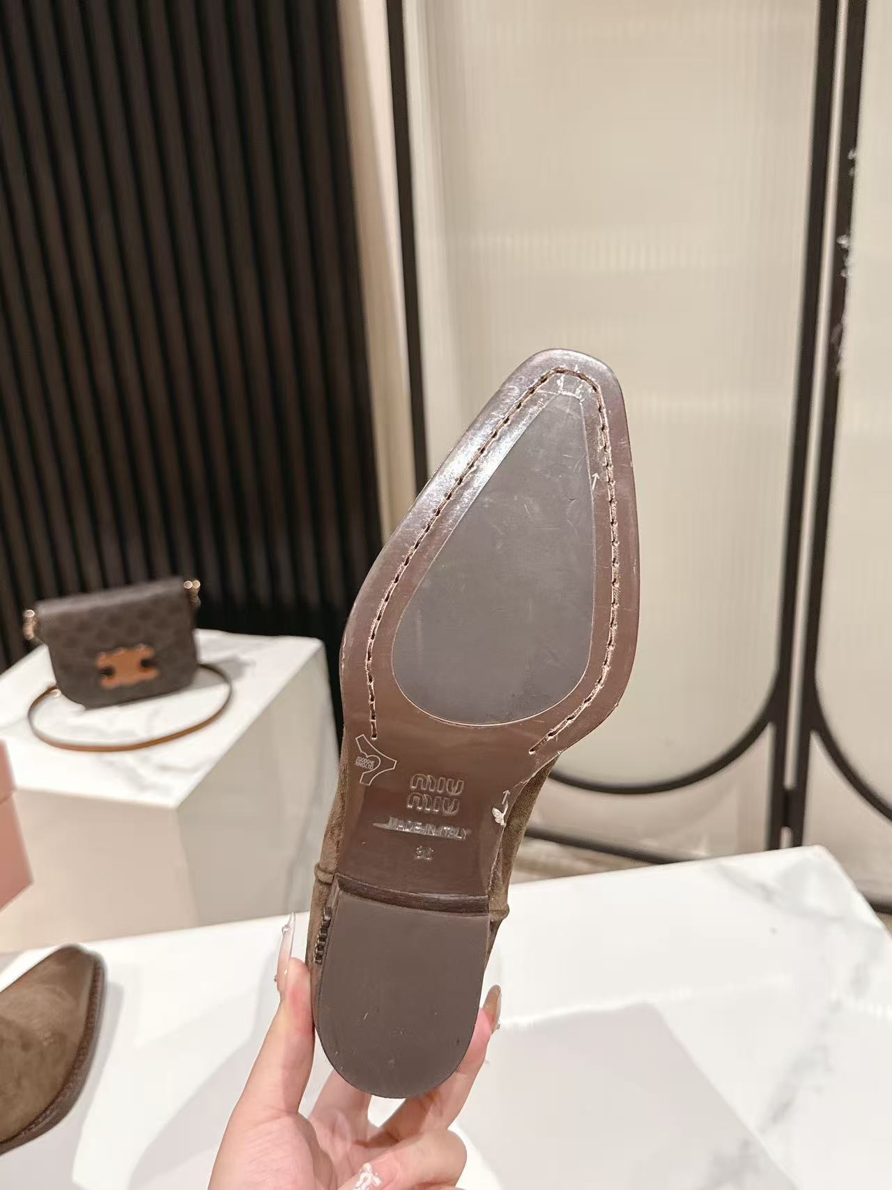 这款鞋子是AAAAA 1:1 质量 (非常棒). 使用了和原版一模一样的材料. 商标部分也保持了和缪缪/Miu Miu一样. 图片拍摄是实物鞋子拍摄, 您所收到的实物保证和我们图片一模一样.