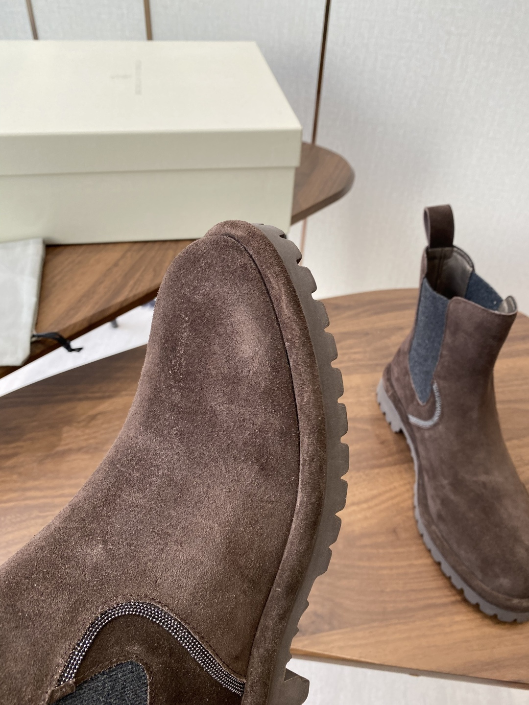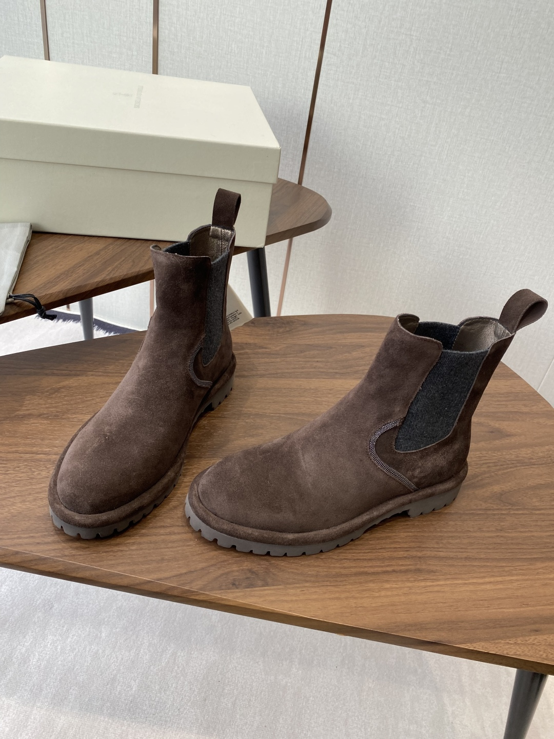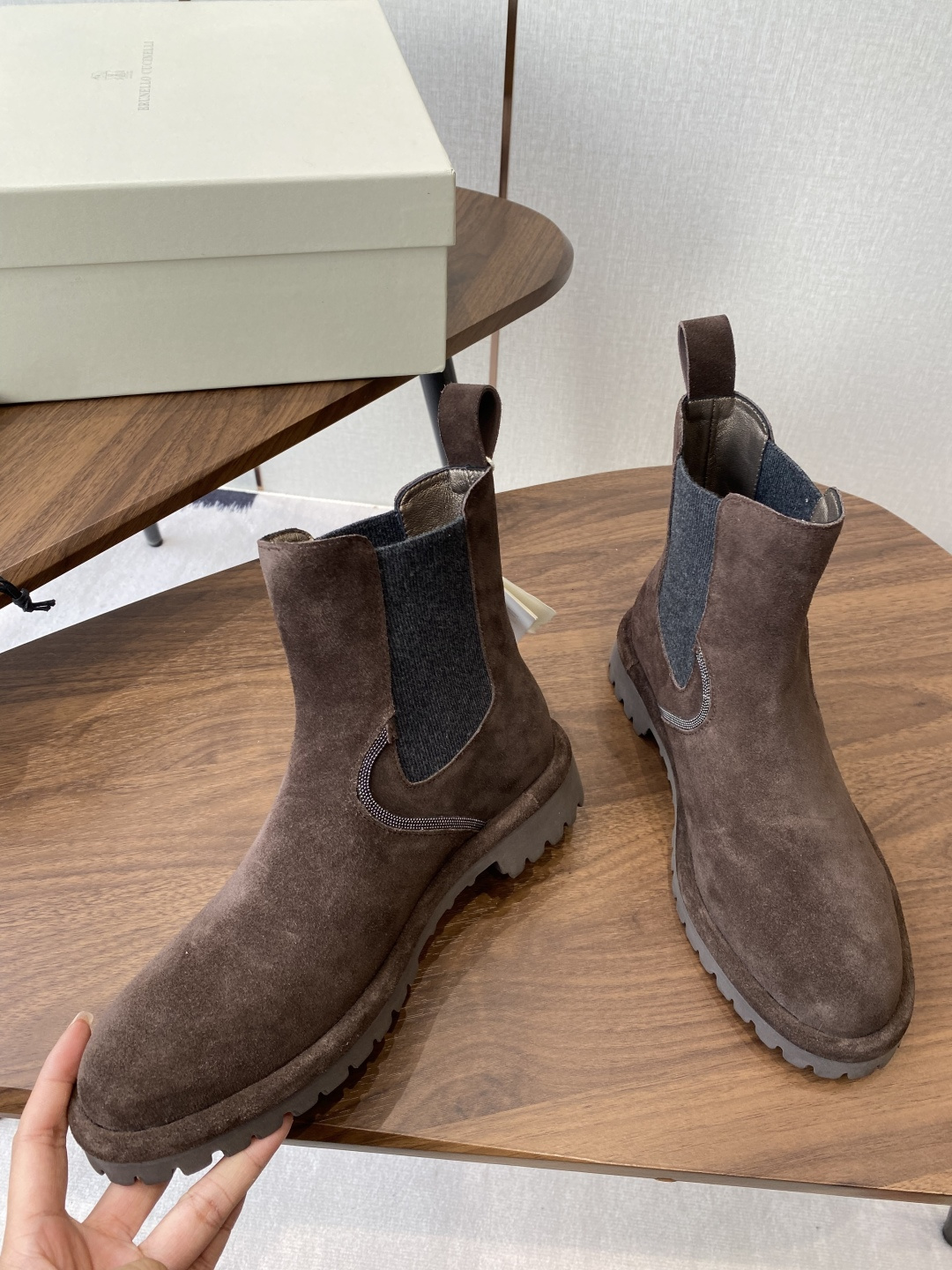 这款鞋子是AAAAA 1:1 质量 (非常棒). 使用了和原版一模一样的材料. 商标部分也保持了和Brunello Cucinelli一样. 图片拍摄是实物鞋子拍摄, 您所收到的实物保证和我们图片一模一样.