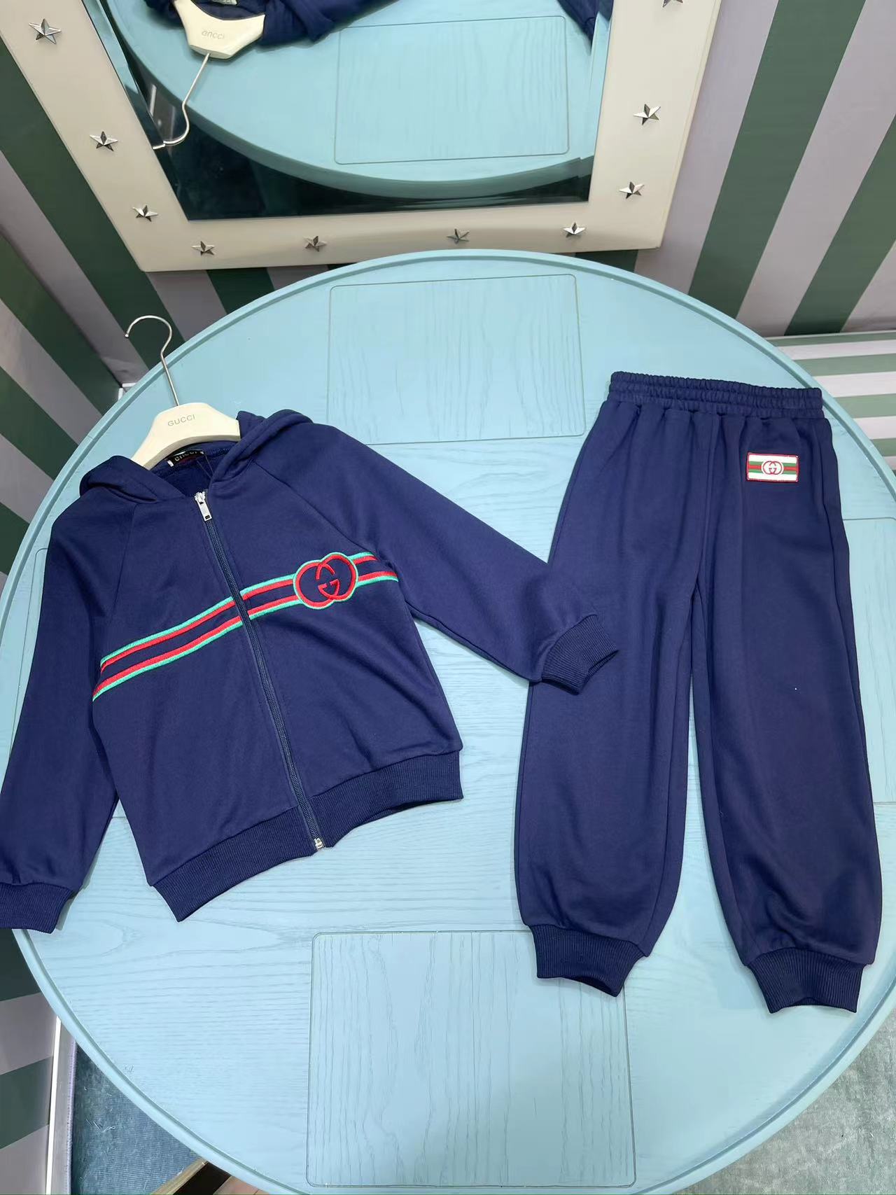 这款children's clothes是AAAAA 1:1 质量 (非常棒). 使用了和原版一模一样的材料. 商标部分也保持了和古奇/Gucci一样. 图片拍摄是实物children's clothes拍摄, 您所收到的实物保证和我们图片一模一样.
