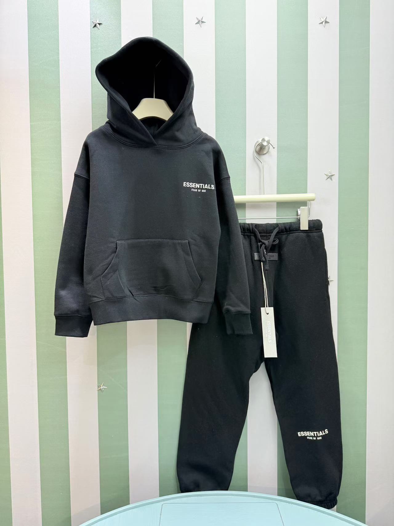 这款children's clothes是AAAAA 1:1 质量 (非常棒). 使用了和原版一模一样的材料. 商标部分也保持了和ESSENTIALS一样. 图片拍摄是实物children's clothes拍摄, 您所收到的实物保证和我们图片一模一样.