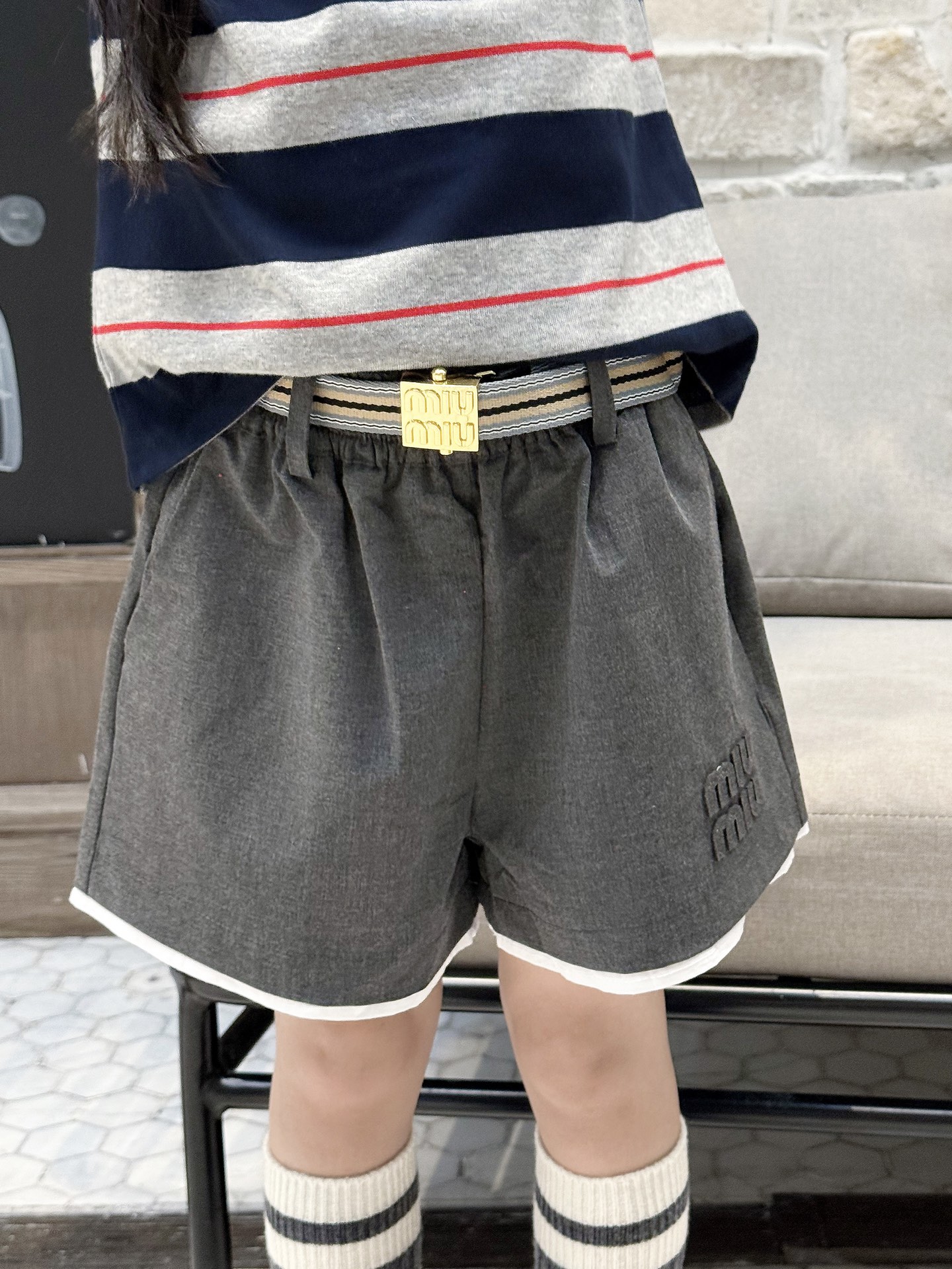 这款children's clothes是AAAAA 1:1 质量 (非常棒). 使用了和原版一模一样的材料. 商标部分也保持了和缪缪/Miu Miu一样. 图片拍摄是实物children's clothes拍摄, 您所收到的实物保证和我们图片一模一样.