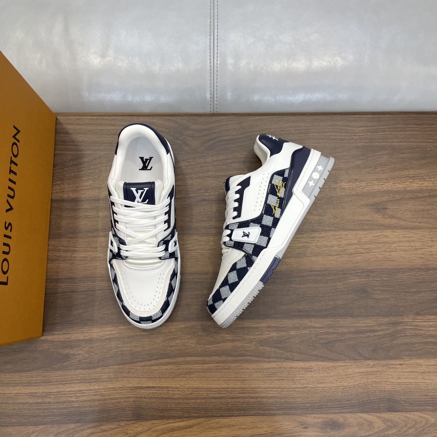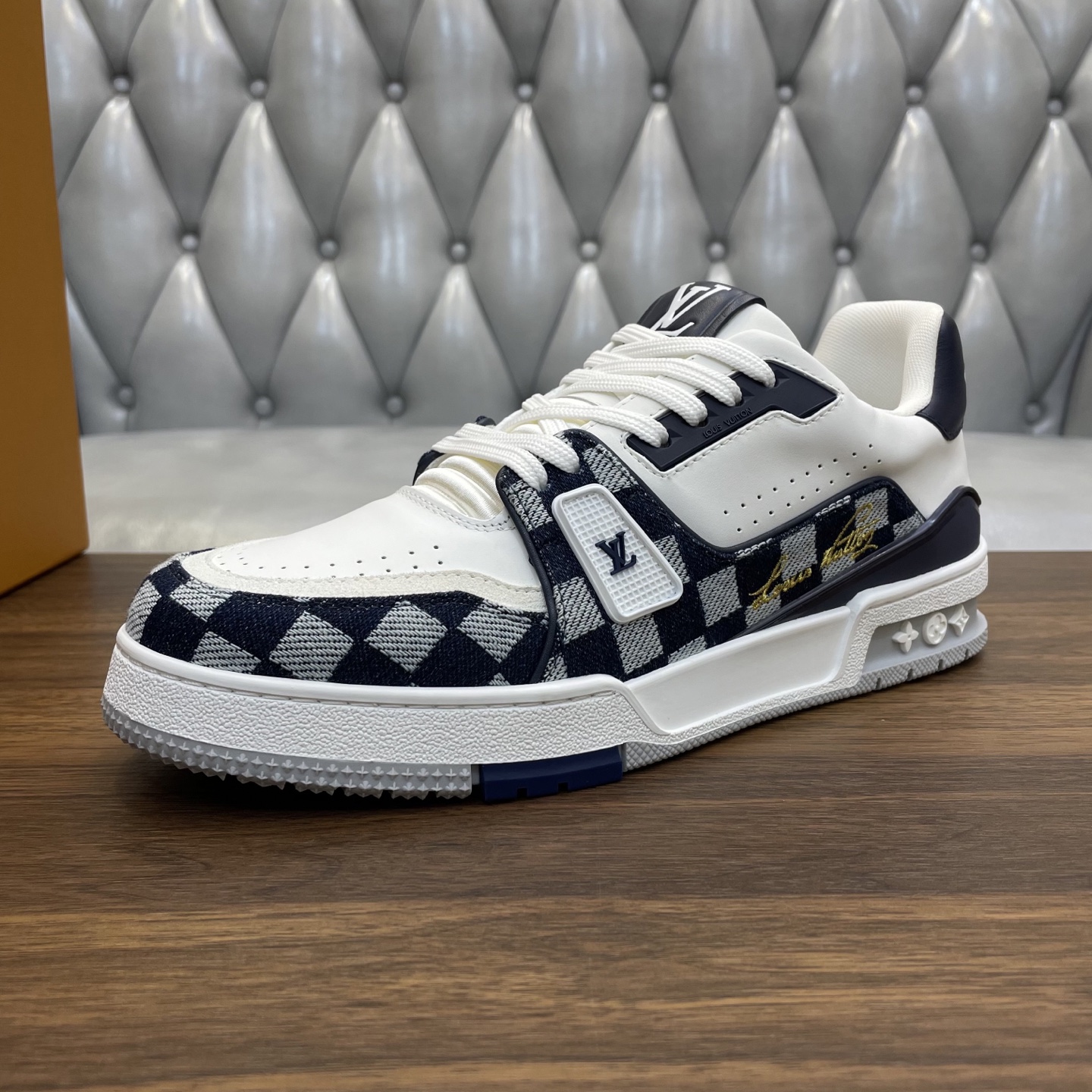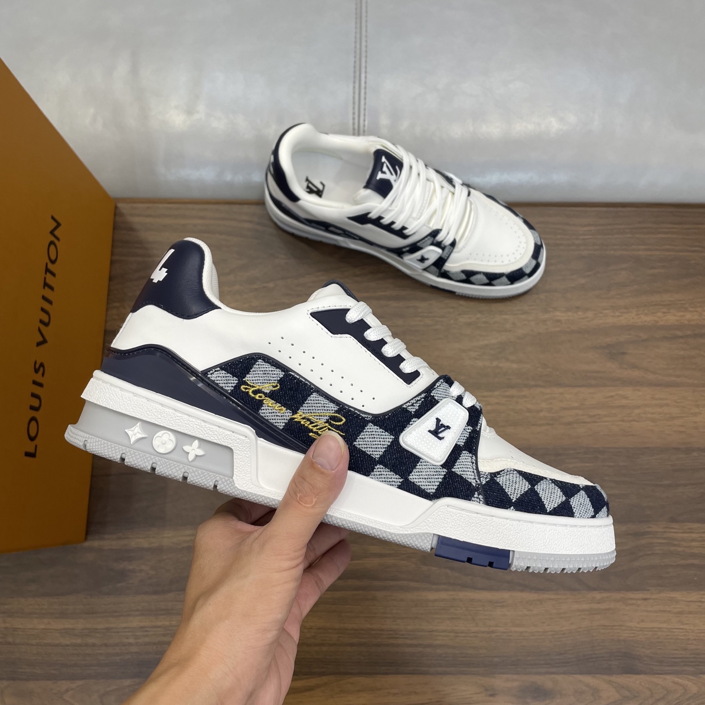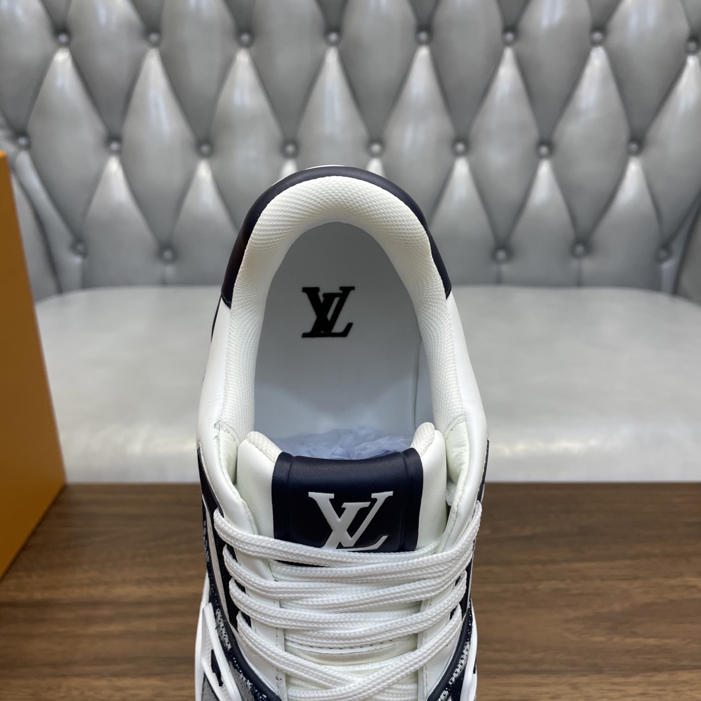 这款鞋子是AAAAA 1:1 质量 (非常棒). 使用了和原版一模一样的材料. 商标部分也保持了和路易威登/Louis Vuitton一样. 图片拍摄是实物鞋子拍摄, 您所收到的实物保证和我们图片一模一样.