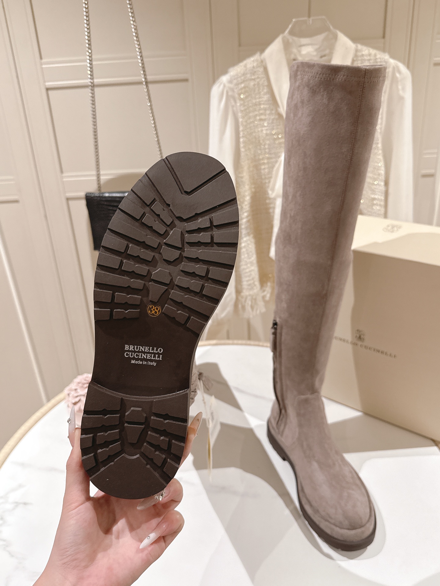 这款鞋子是AAAAA 1:1 质量 (非常棒). 使用了和原版一模一样的材料. 商标部分也保持了和Brunello Cucinelli一样. 图片拍摄是实物鞋子拍摄, 您所收到的实物保证和我们图片一模一样.