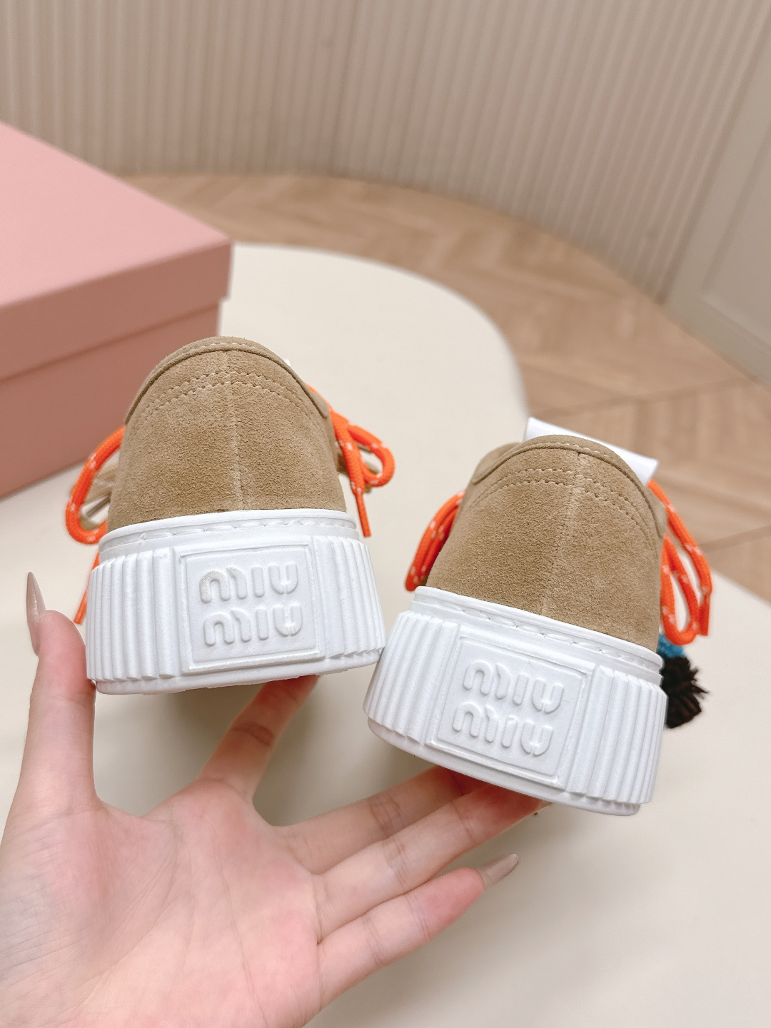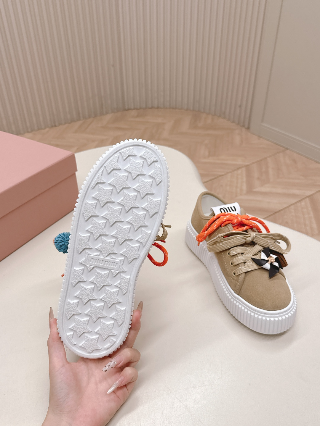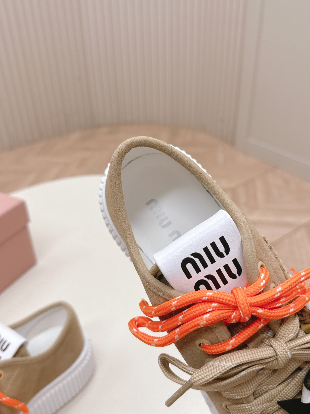 这款鞋子是AAAAA 1:1 质量 (非常棒). 使用了和原版一模一样的材料. 商标部分也保持了和缪缪/Miu Miu一样. 图片拍摄是实物鞋子拍摄, 您所收到的实物保证和我们图片一模一样.