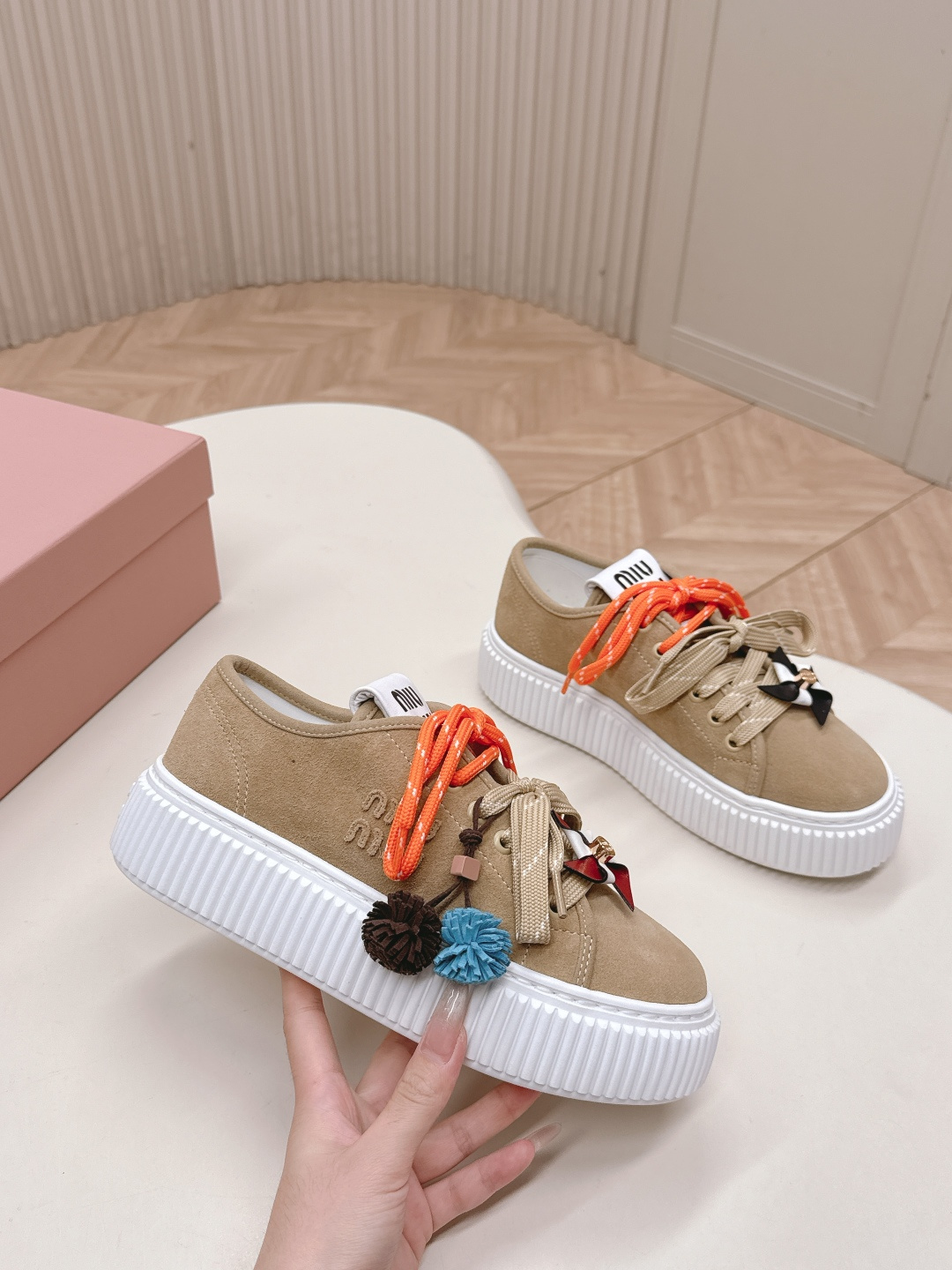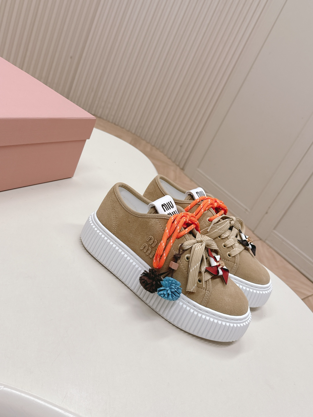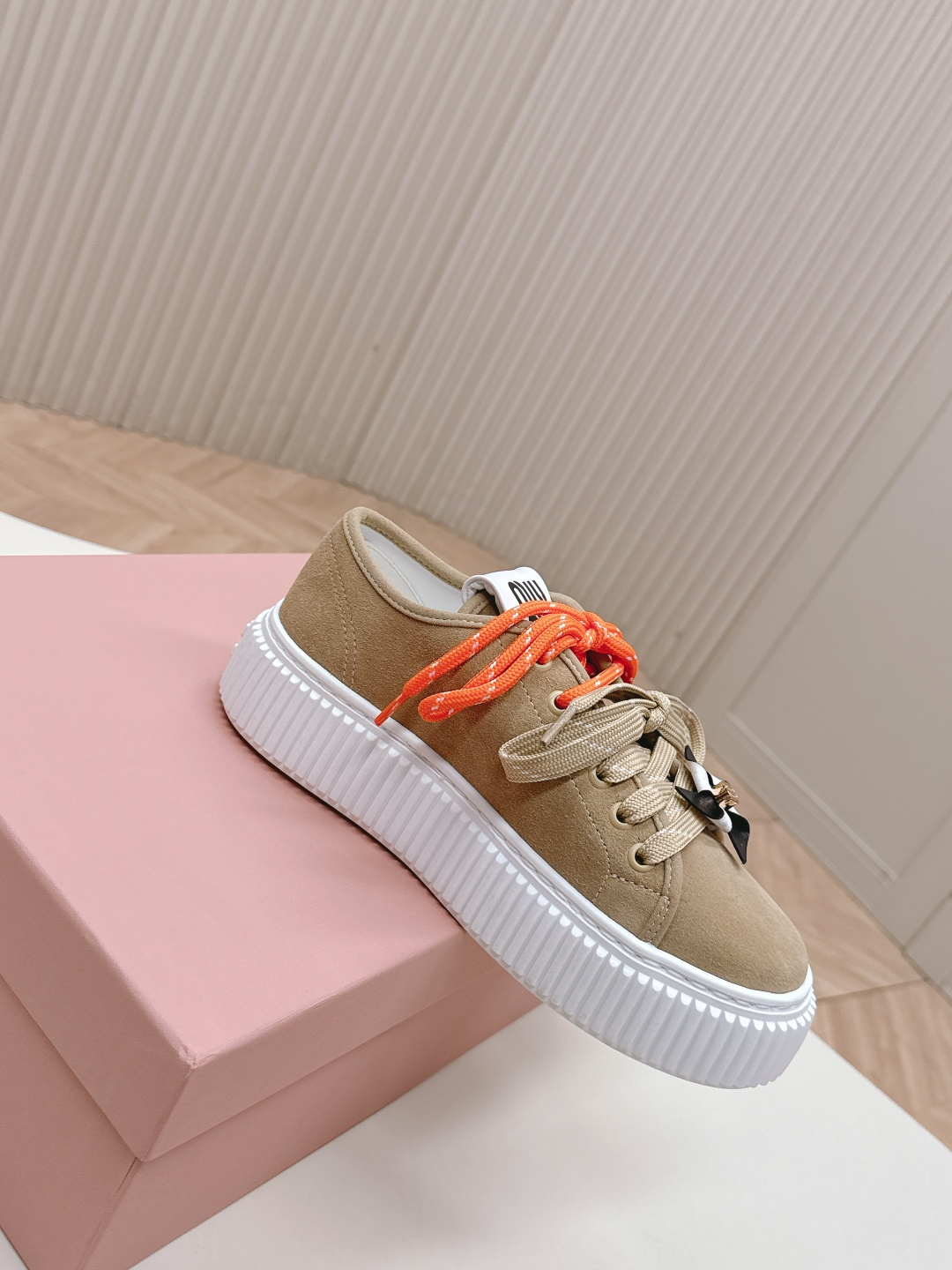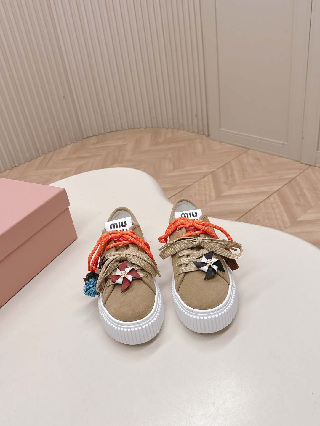 这款鞋子是AAAAA 1:1 质量 (非常棒). 使用了和原版一模一样的材料. 商标部分也保持了和缪缪/Miu Miu一样. 图片拍摄是实物鞋子拍摄, 您所收到的实物保证和我们图片一模一样.