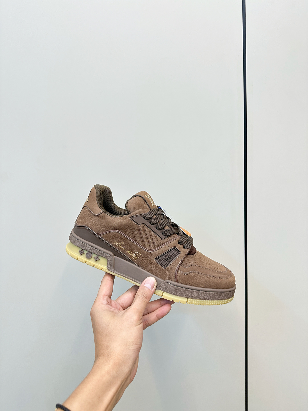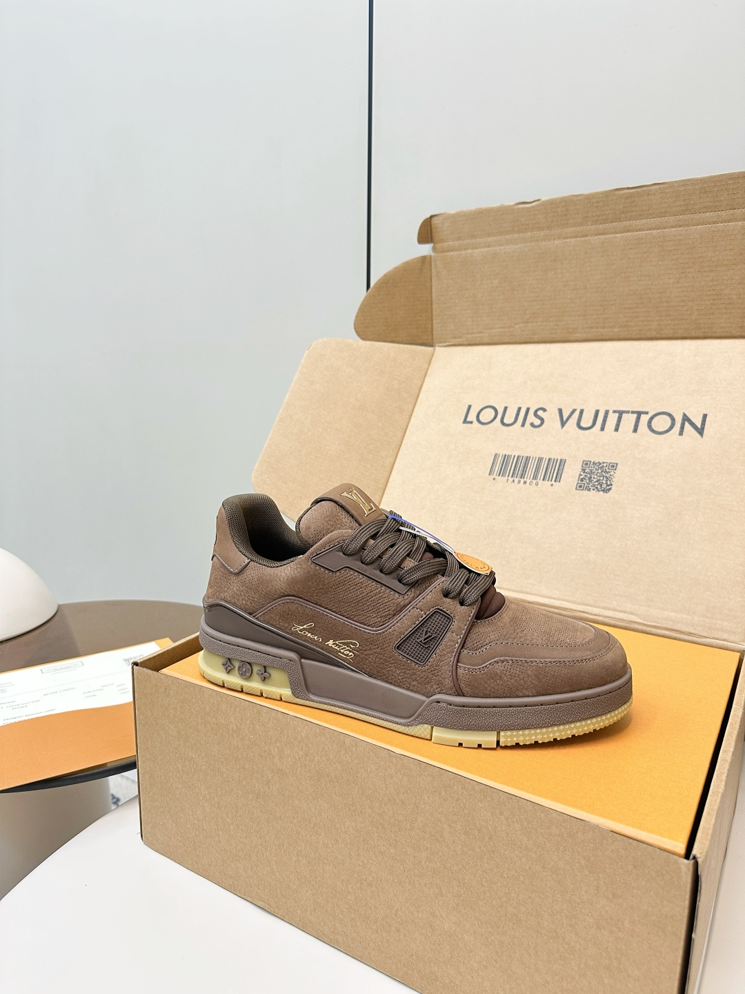 这款鞋子是AAAAA 1:1 质量 (非常棒). 使用了和原版一模一样的材料. 商标部分也保持了和路易威登/Louis Vuitton一样. 图片拍摄是实物鞋子拍摄, 您所收到的实物保证和我们图片一模一样.
