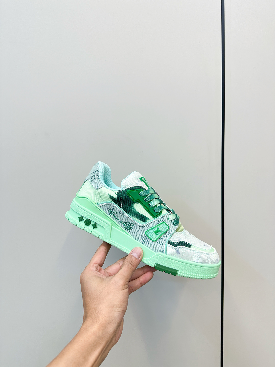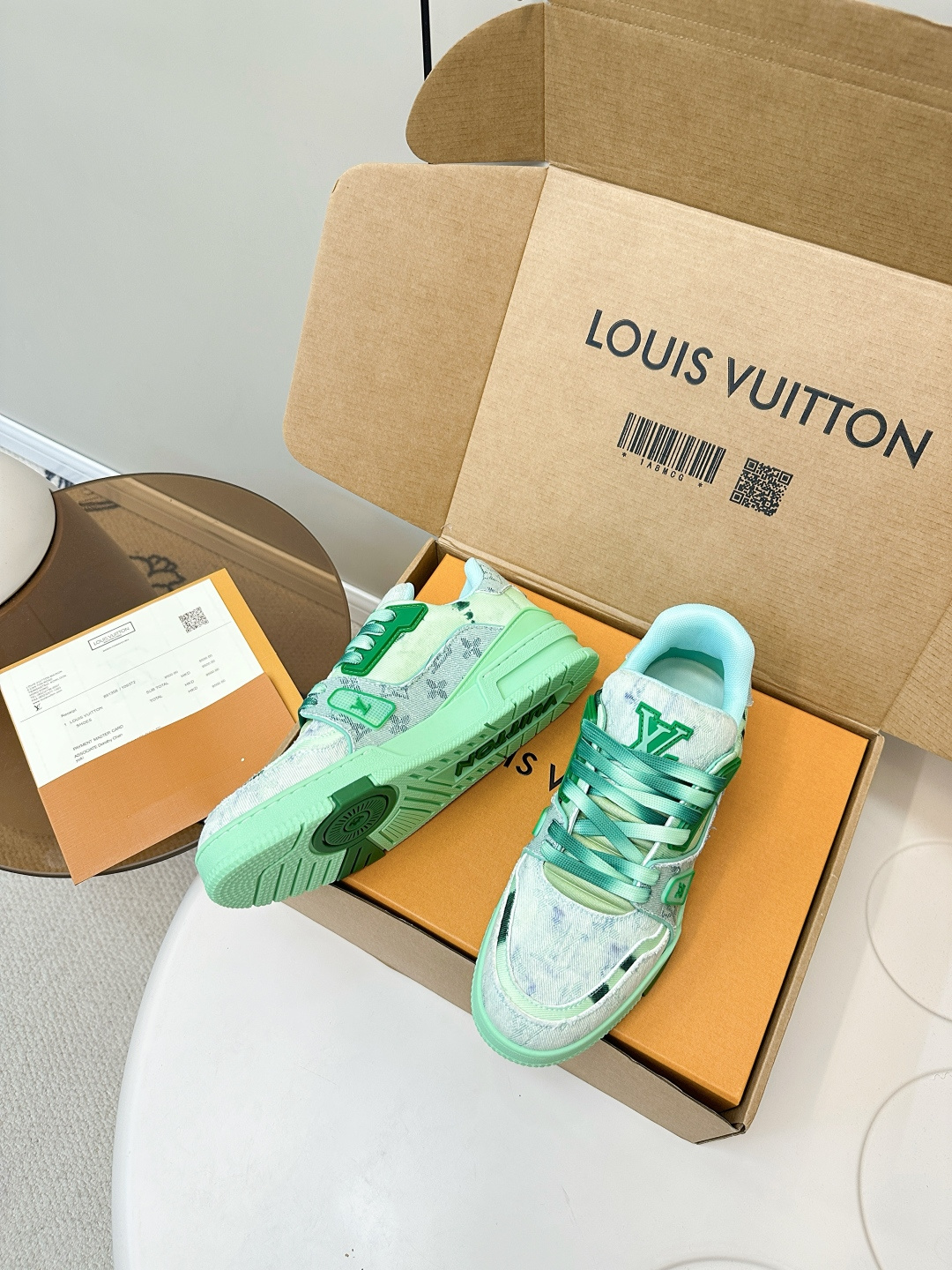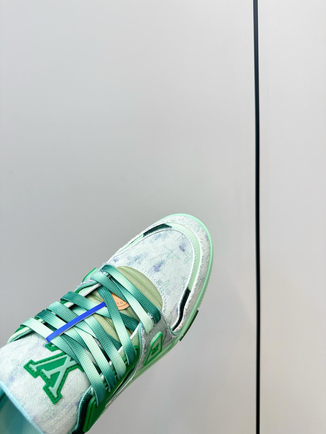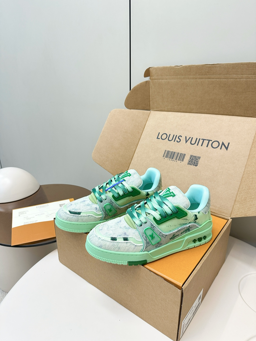 这款鞋子是AAAAA 1:1 质量 (非常棒). 使用了和原版一模一样的材料. 商标部分也保持了和路易威登/Louis Vuitton一样. 图片拍摄是实物鞋子拍摄, 您所收到的实物保证和我们图片一模一样.
