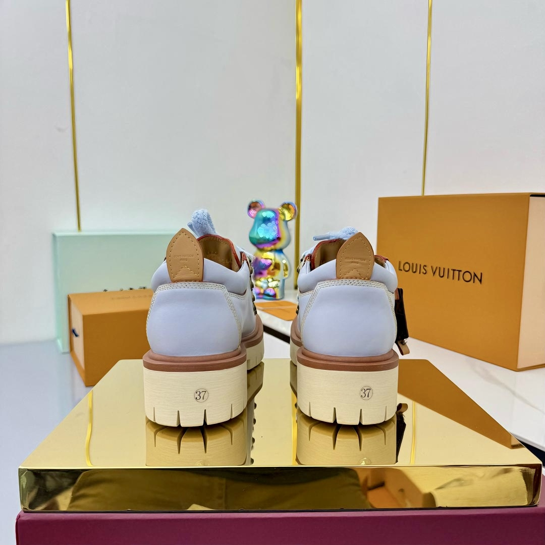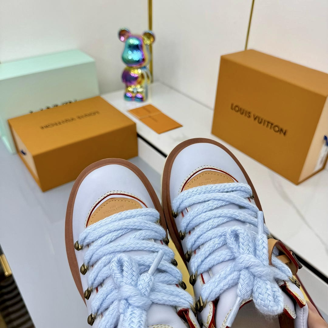 这款鞋子是AAAAA 1:1 质量 (非常棒). 使用了和原版一模一样的材料. 商标部分也保持了和路易威登/Louis Vuitton一样. 图片拍摄是实物鞋子拍摄, 您所收到的实物保证和我们图片一模一样.