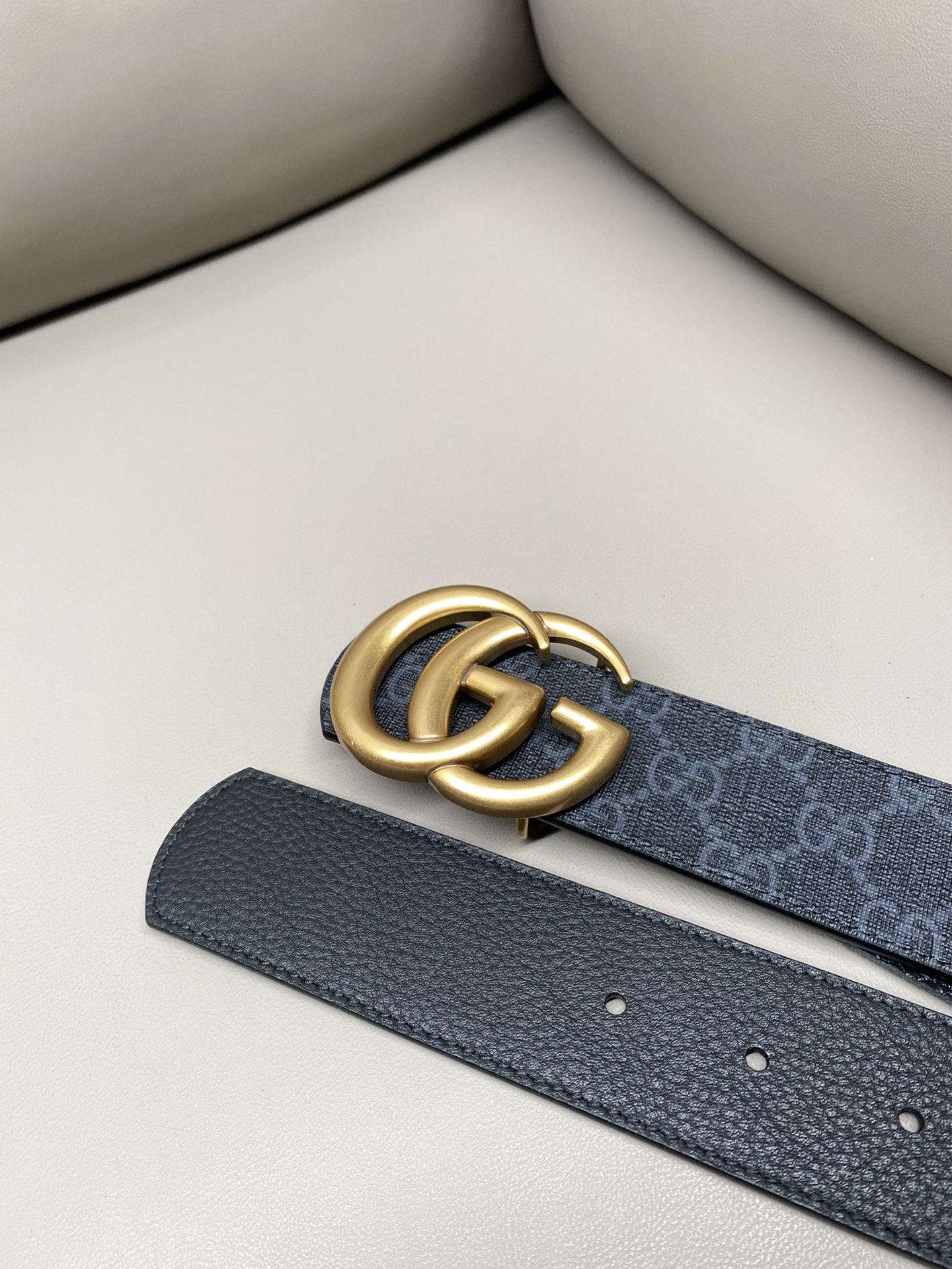 这款皮带是AAAAA 1:1 质量 (非常棒). 使用了和原版一模一样的材料. 商标部分也保持了和古奇/Gucci一样. 图片拍摄是实物皮带拍摄, 您所收到的实物保证和我们图片一模一样.