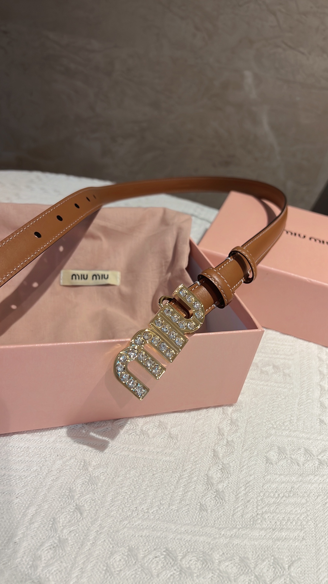 这款皮带是AAAAA 1:1 质量 (非常棒). 使用了和原版一模一样的材料. 商标部分也保持了和缪缪/Miu Miu一样. 图片拍摄是实物皮带拍摄, 您所收到的实物保证和我们图片一模一样.