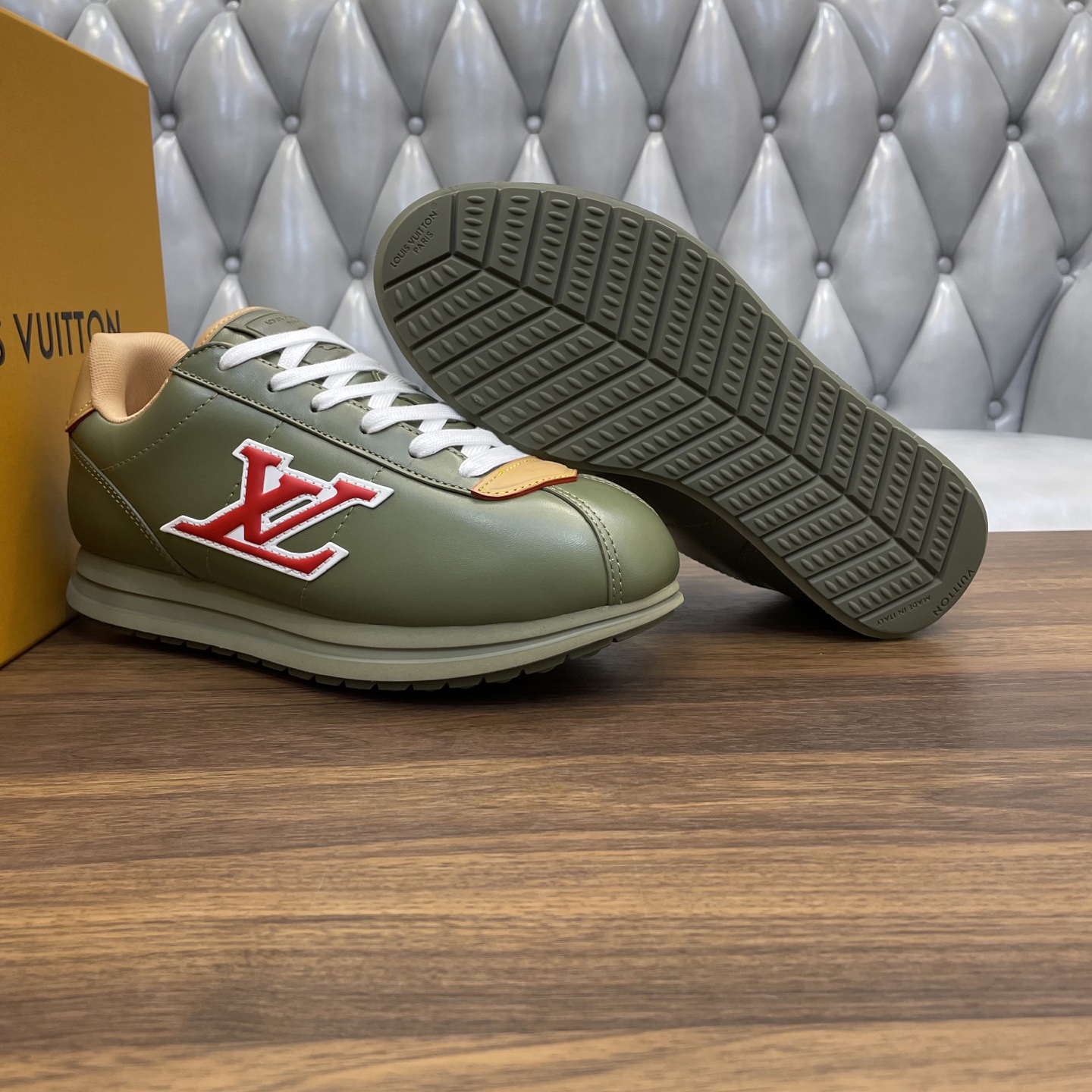 这款鞋子是AAAAA 1:1 质量 (非常棒). 使用了和原版一模一样的材料. 商标部分也保持了和路易威登/Louis Vuitton一样. 图片拍摄是实物鞋子拍摄, 您所收到的实物保证和我们图片一模一样.