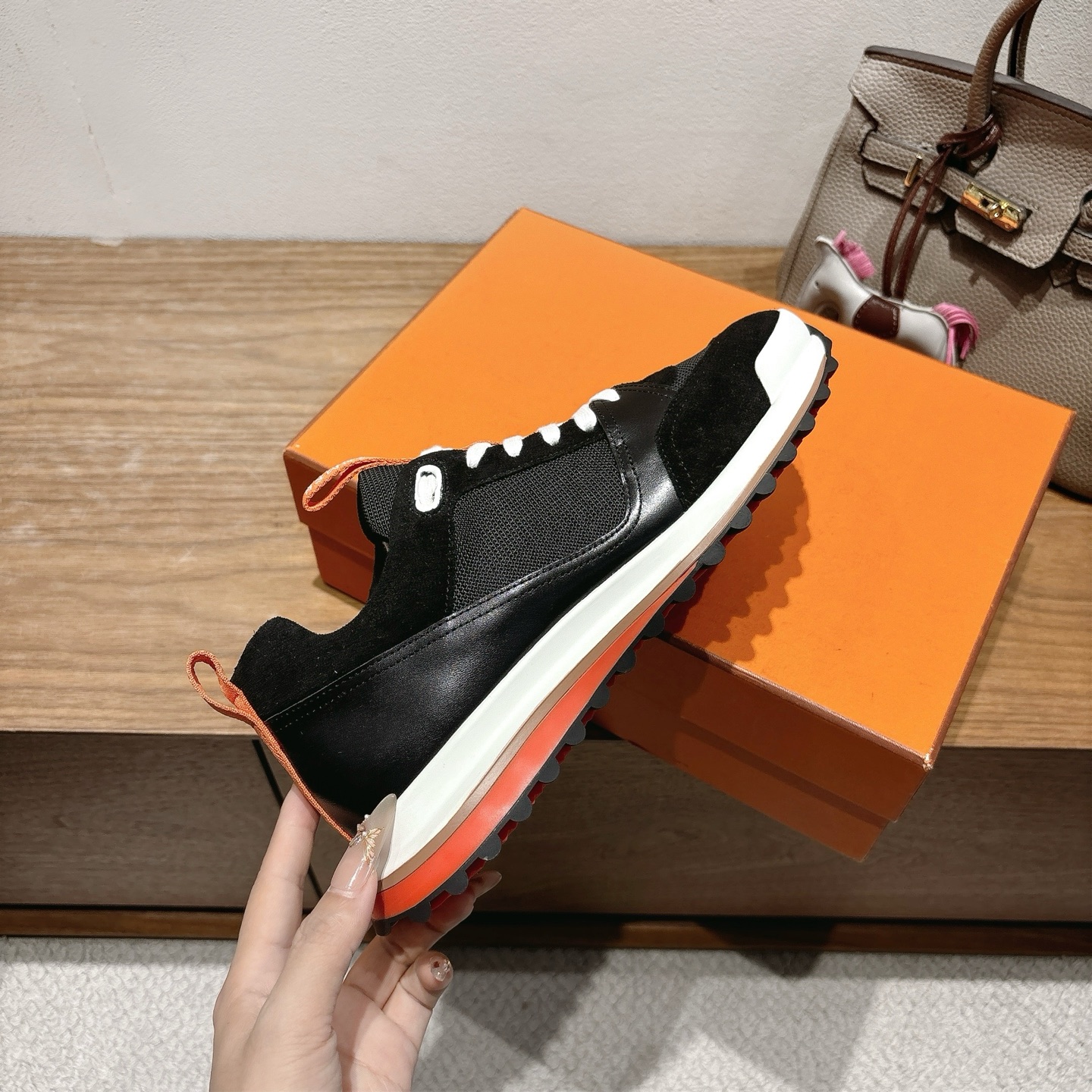 这款鞋子是AAAAA 1:1 质量 (非常棒). 使用了和原版一模一样的材料. 商标部分也保持了和爱马仕/Hermes一样. 图片拍摄是实物鞋子拍摄, 您所收到的实物保证和我们图片一模一样.