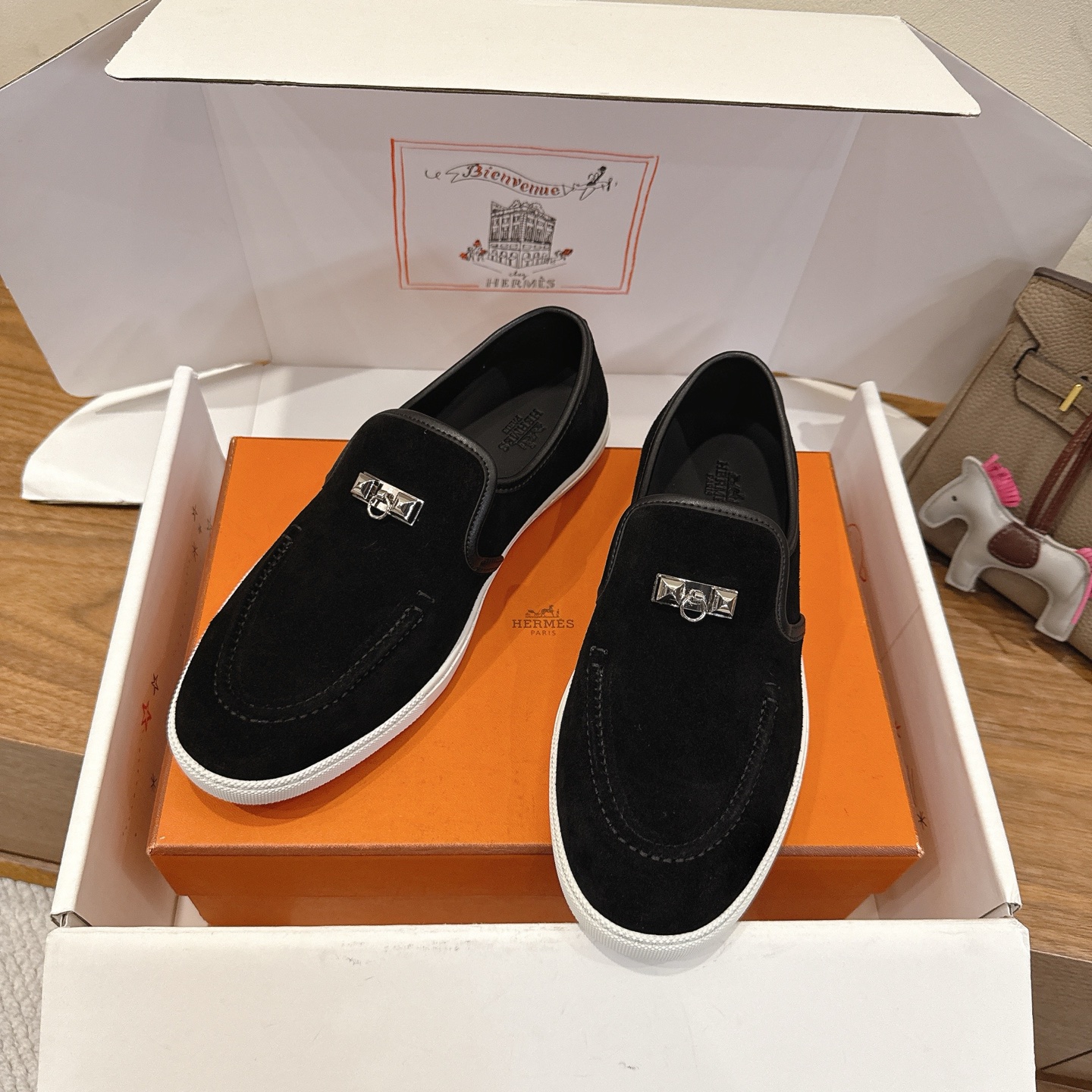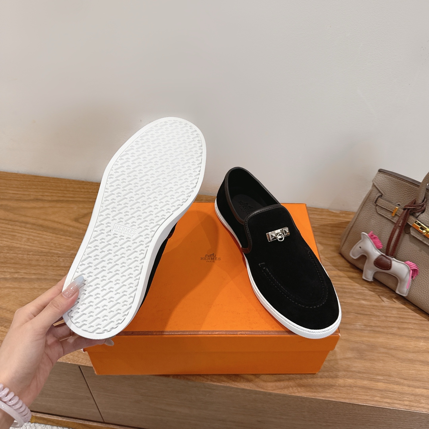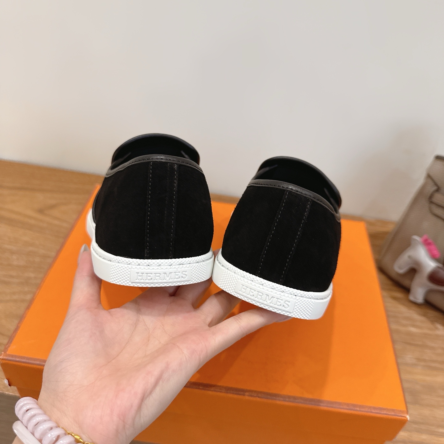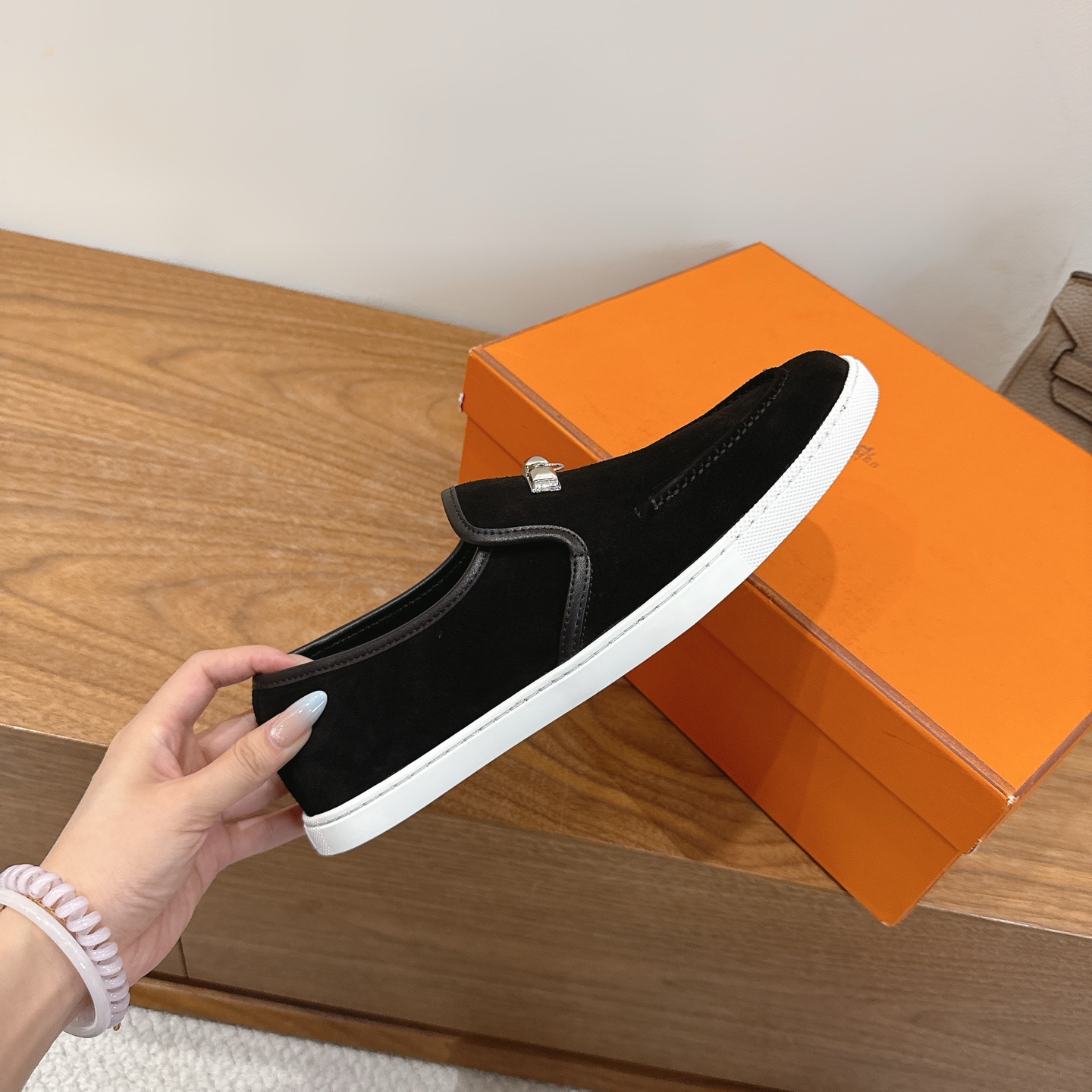 这款鞋子是AAAAA 1:1 质量 (非常棒). 使用了和原版一模一样的材料. 商标部分也保持了和爱马仕/Hermes一样. 图片拍摄是实物鞋子拍摄, 您所收到的实物保证和我们图片一模一样.