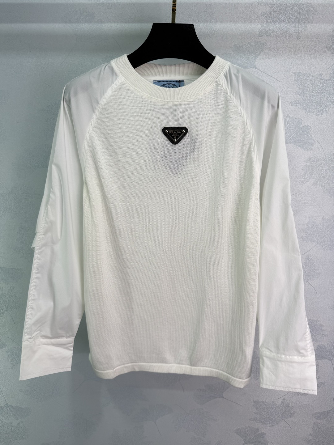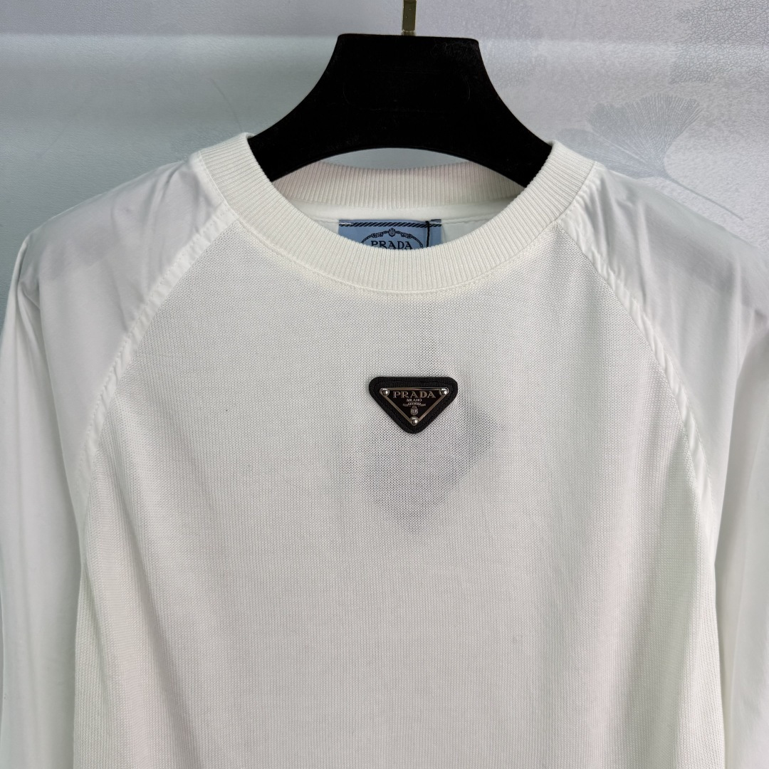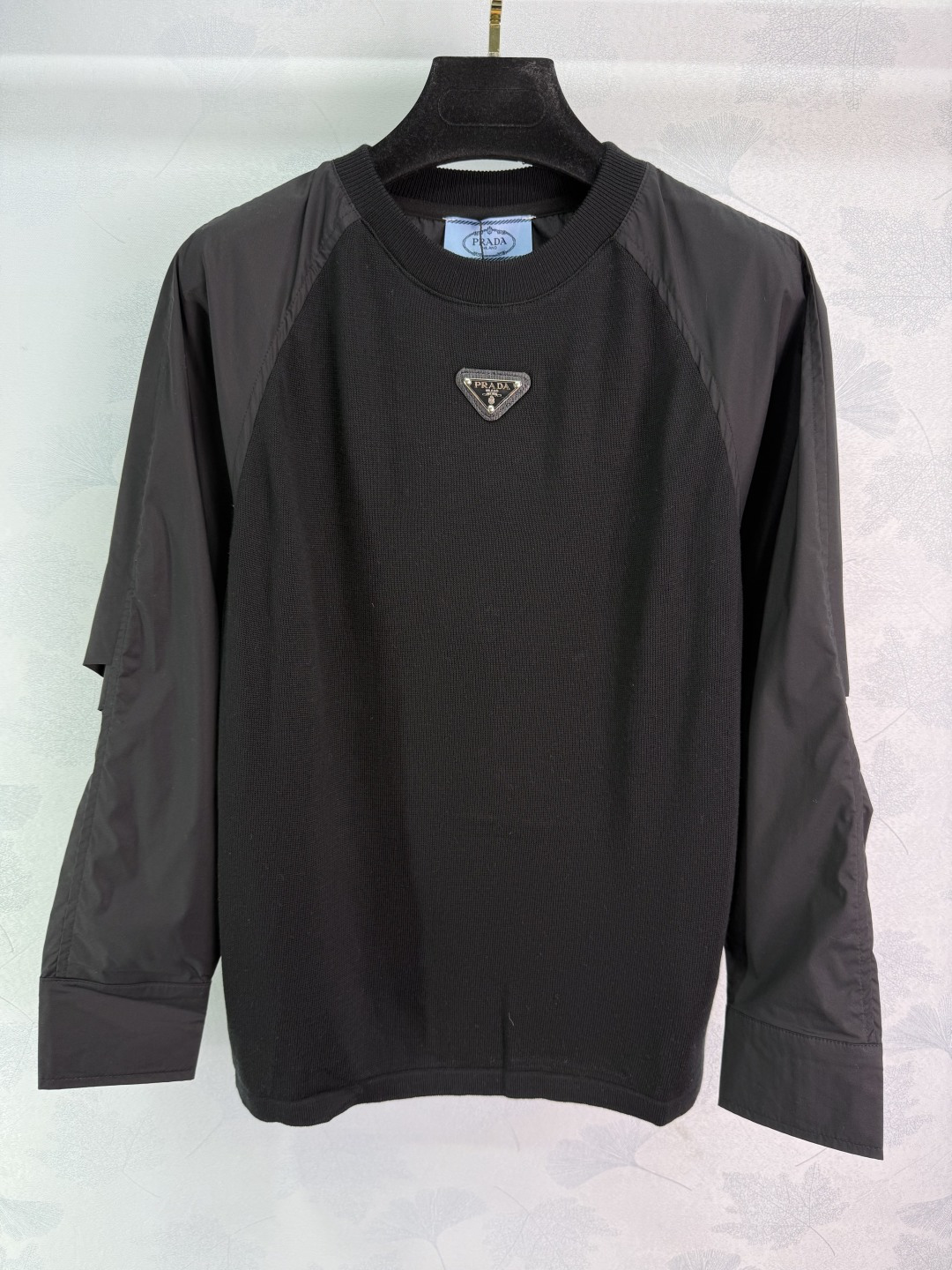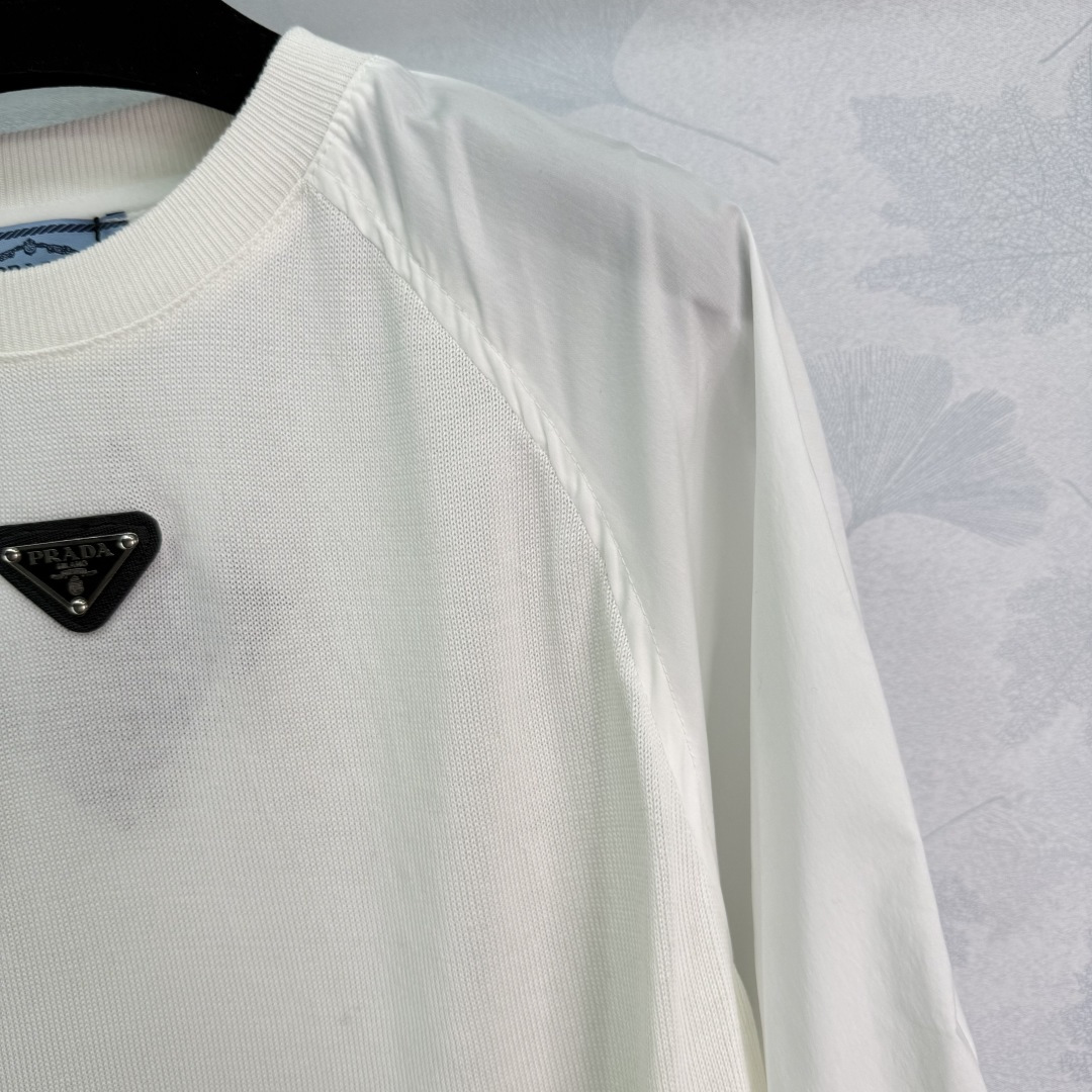 这款衣服是AAAAA 1:1 质量 (非常棒). 使用了和原版一模一样的材料. 商标部分也保持了和普拉达/Prada一样. 图片拍摄是实物衣服拍摄, 您所收到的实物保证和我们图片一模一样.