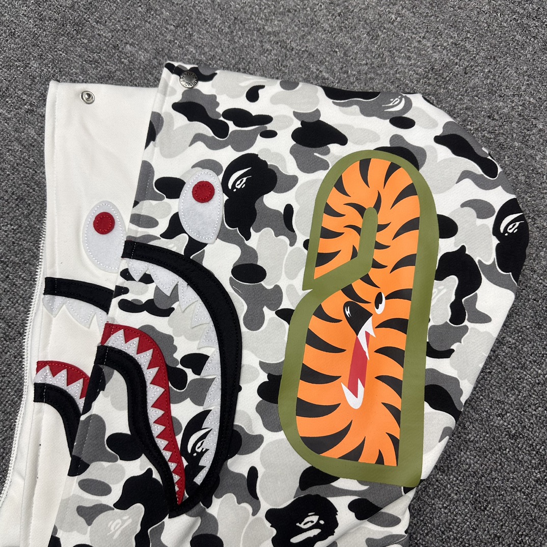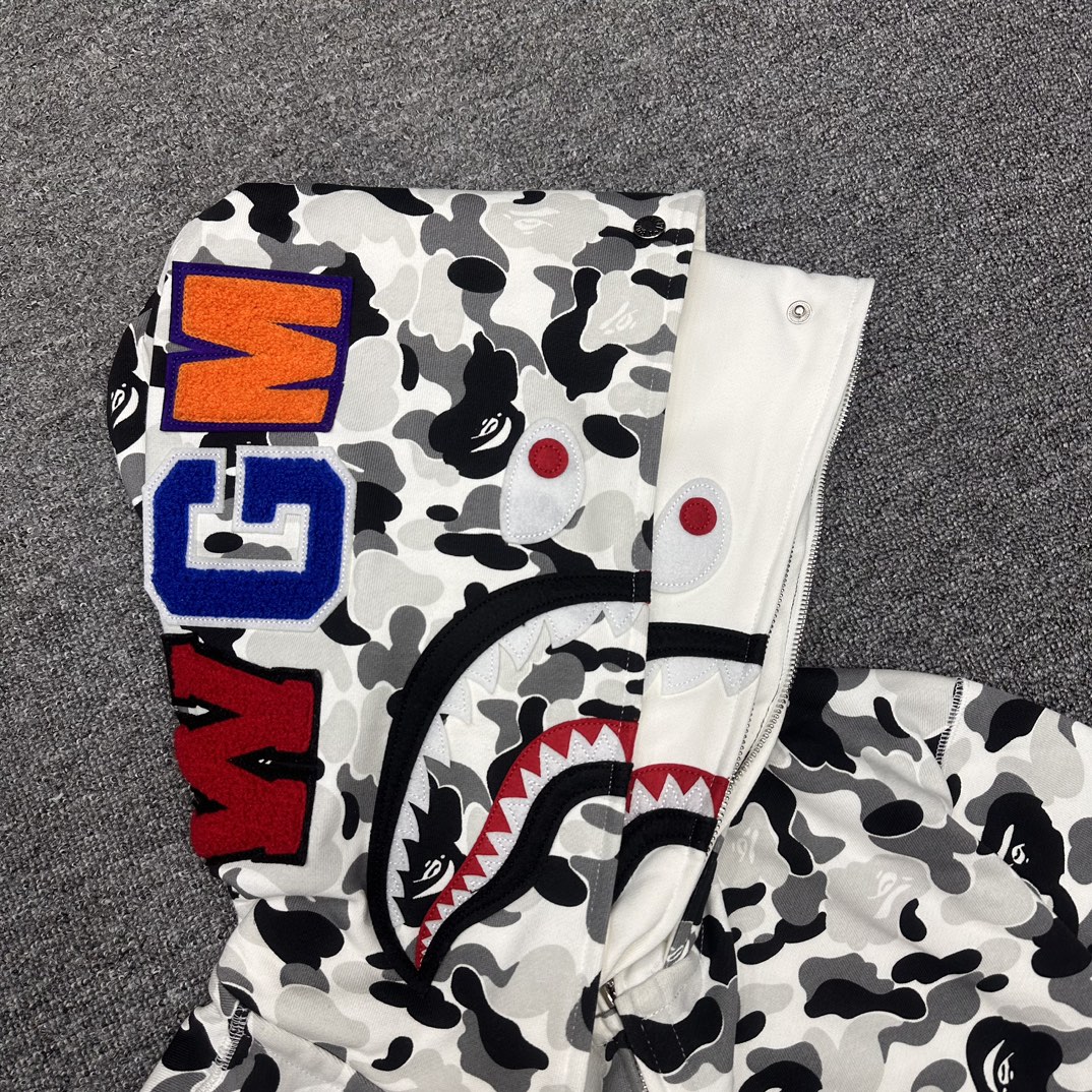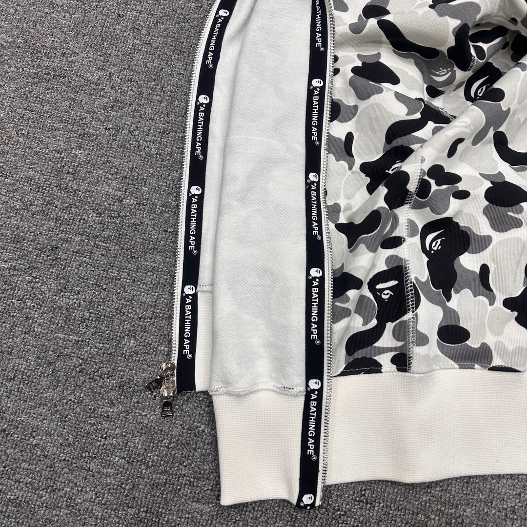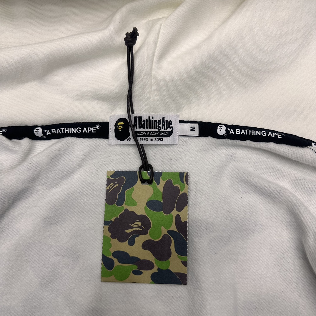 这款衣服是AAAAA 1:1 质量 (非常棒). 使用了和原版一模一样的材料. 商标部分也保持了和Bape一样. 图片拍摄是实物衣服拍摄, 您所收到的实物保证和我们图片一模一样.