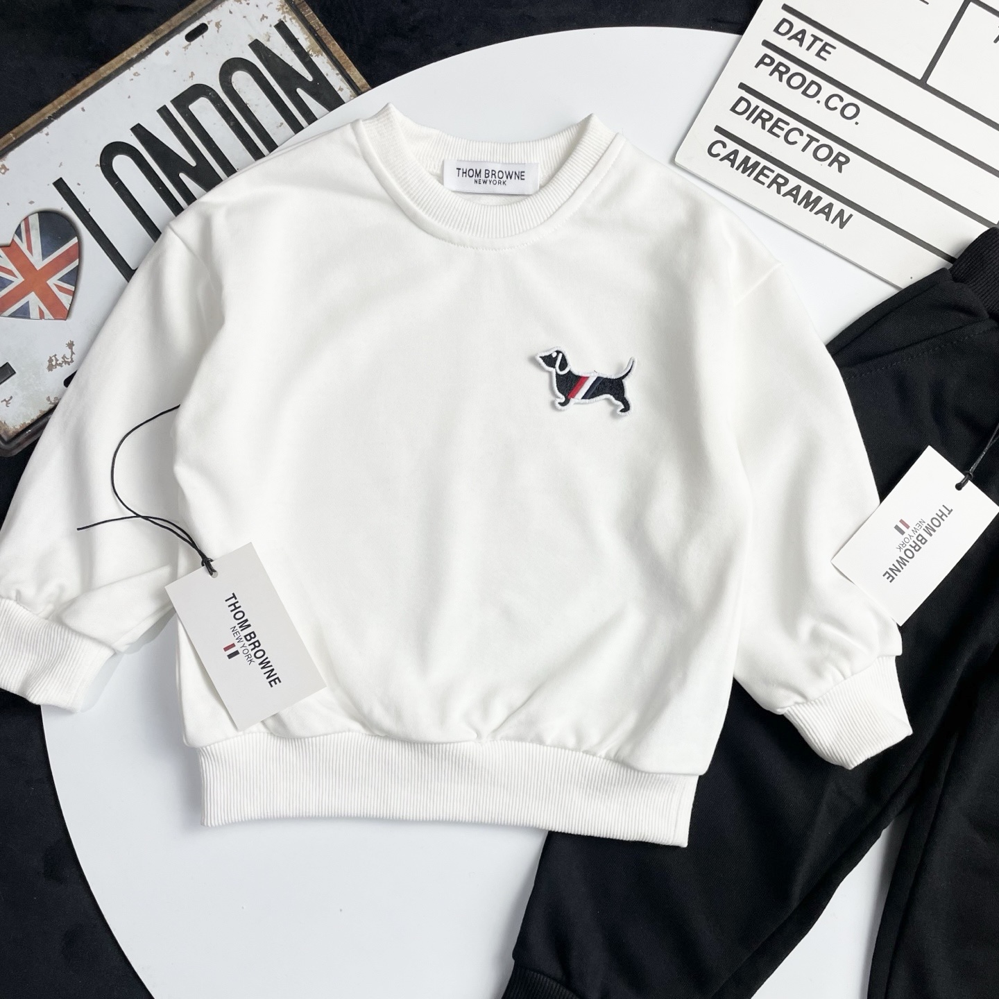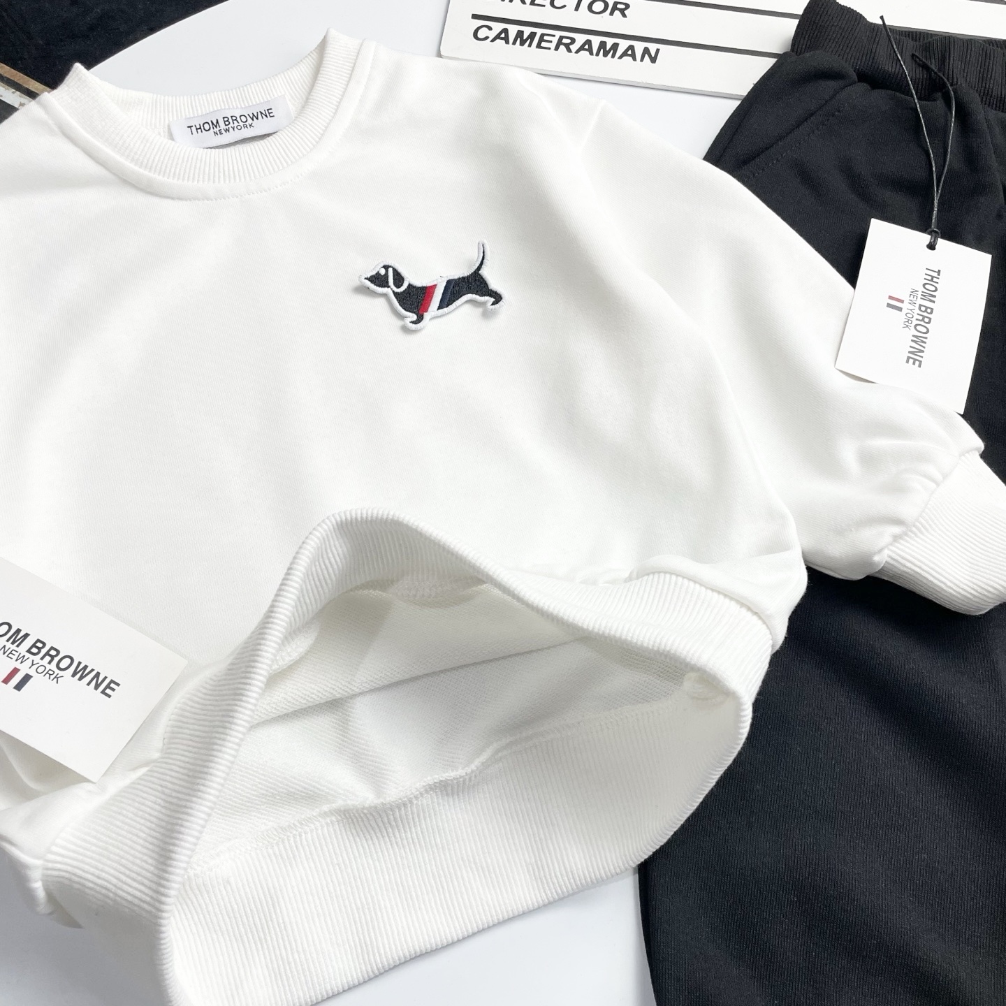 这款children's clothes是AAAAA 1:1 质量 (非常棒). 使用了和原版一模一样的材料. 商标部分也保持了和汤姆布朗/Thom Browne一样. 图片拍摄是实物children's clothes拍摄, 您所收到的实物保证和我们图片一模一样.