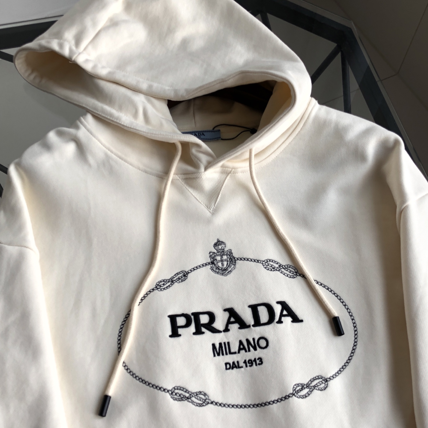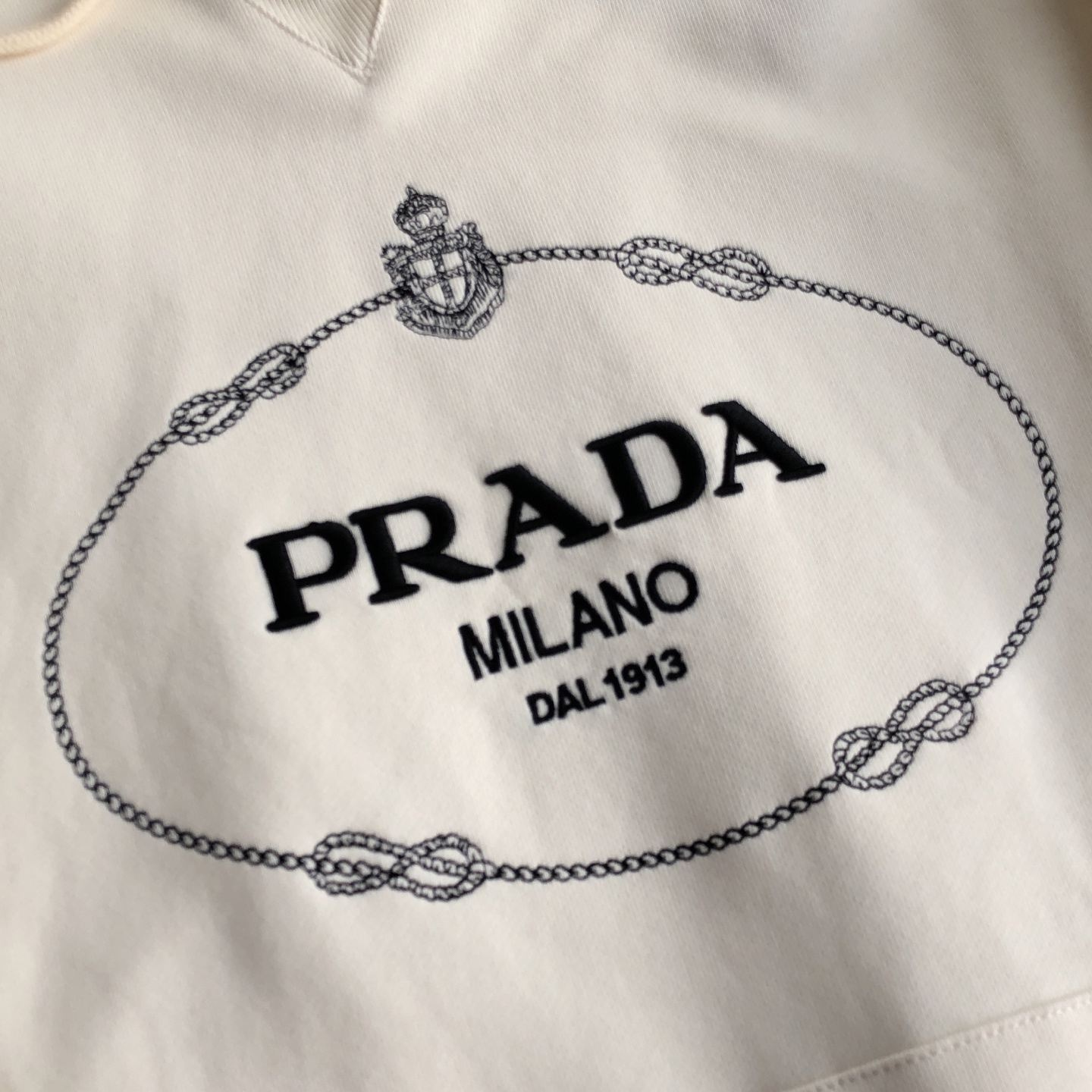 这款衣服是AAAAA 1:1 质量 (非常棒). 使用了和原版一模一样的材料. 商标部分也保持了和普拉达/Prada一样. 图片拍摄是实物衣服拍摄, 您所收到的实物保证和我们图片一模一样.