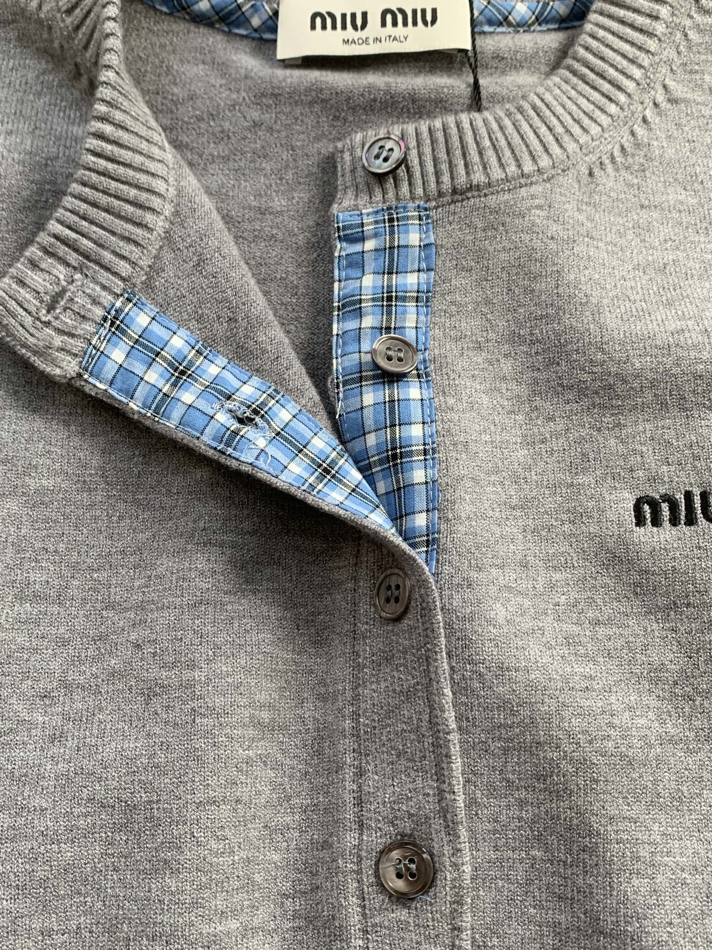 这款衣服是AAAAA 1:1 质量 (非常棒). 使用了和原版一模一样的材料. 商标部分也保持了和缪缪/Miu Miu一样. 图片拍摄是实物衣服拍摄, 您所收到的实物保证和我们图片一模一样.