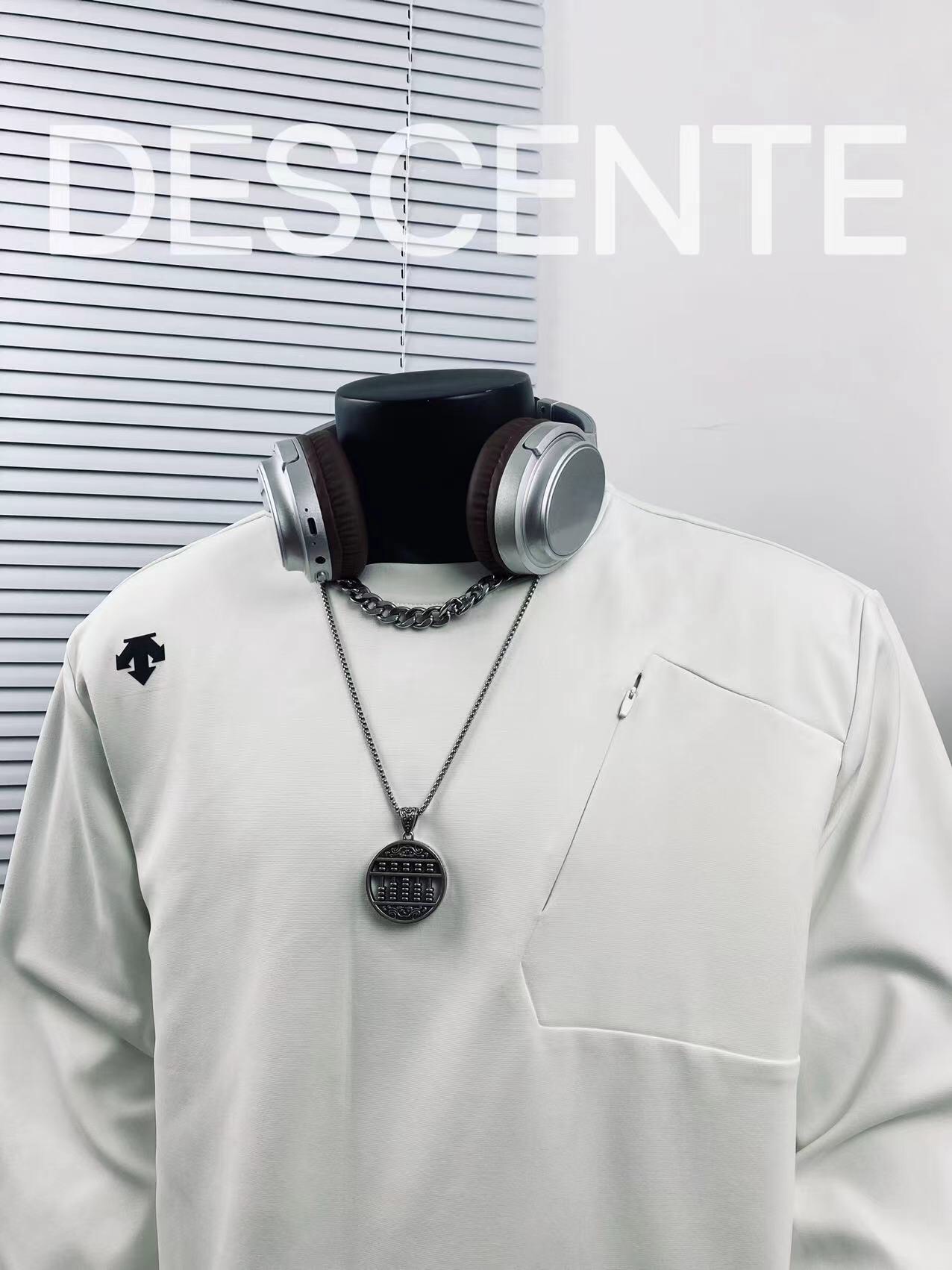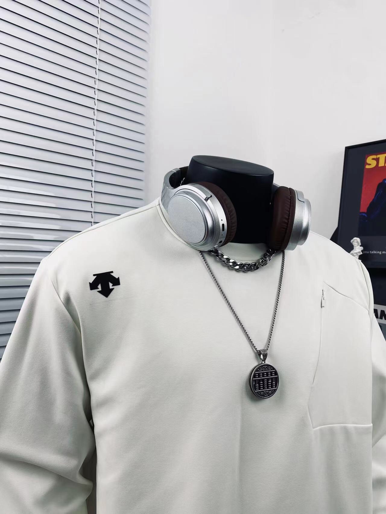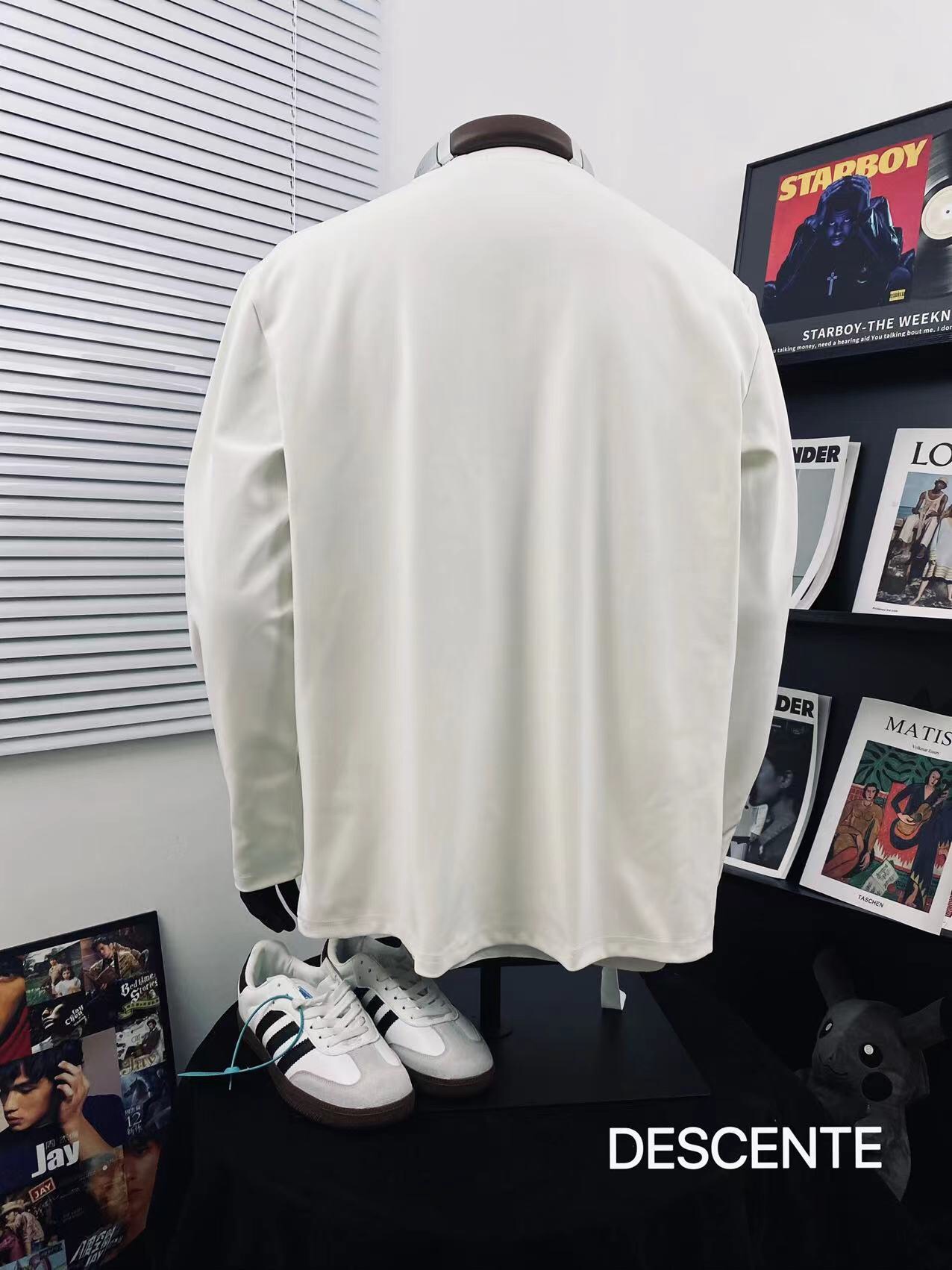 这款衣服是AAAAA 1:1 质量 (非常棒). 使用了和原版一模一样的材料. 商标部分也保持了和Descente一样. 图片拍摄是实物衣服拍摄, 您所收到的实物保证和我们图片一模一样.