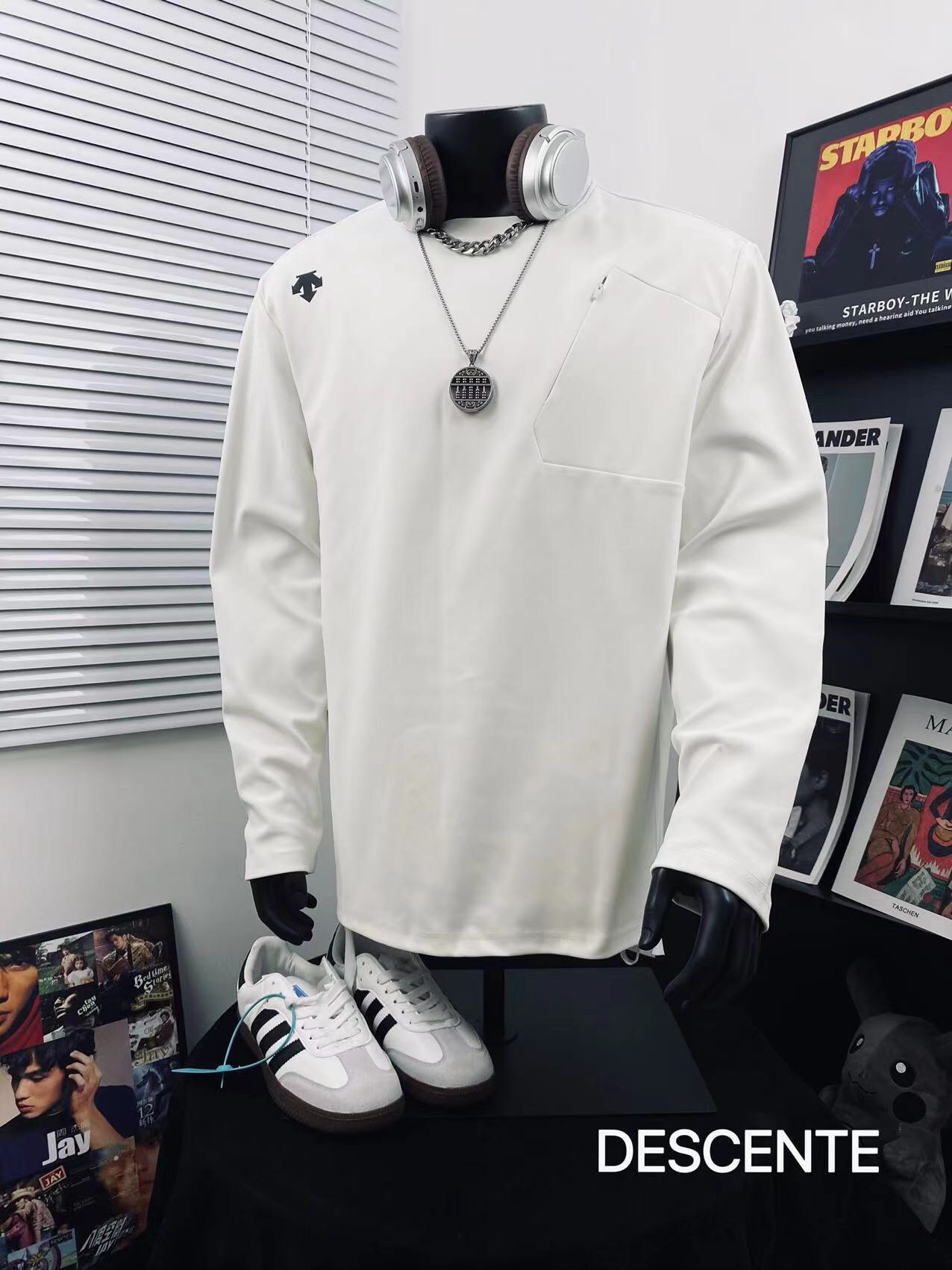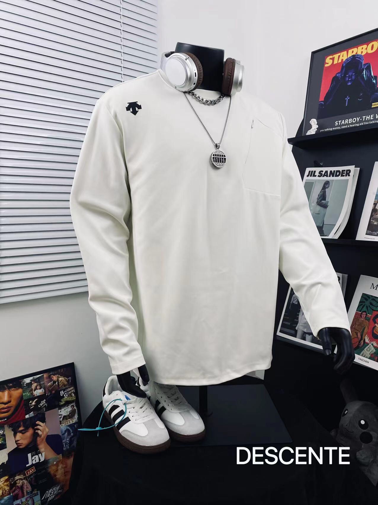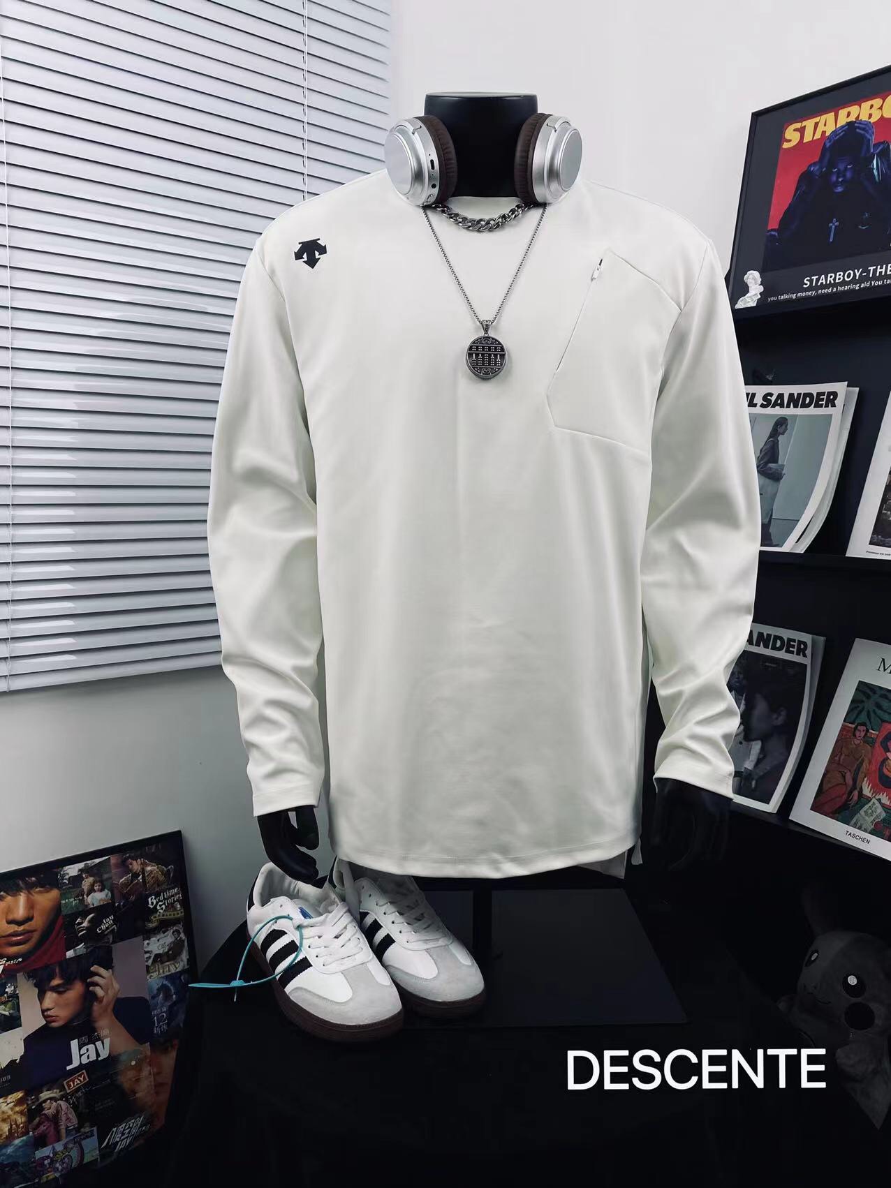 这款衣服是AAAAA 1:1 质量 (非常棒). 使用了和原版一模一样的材料. 商标部分也保持了和Descente一样. 图片拍摄是实物衣服拍摄, 您所收到的实物保证和我们图片一模一样.
