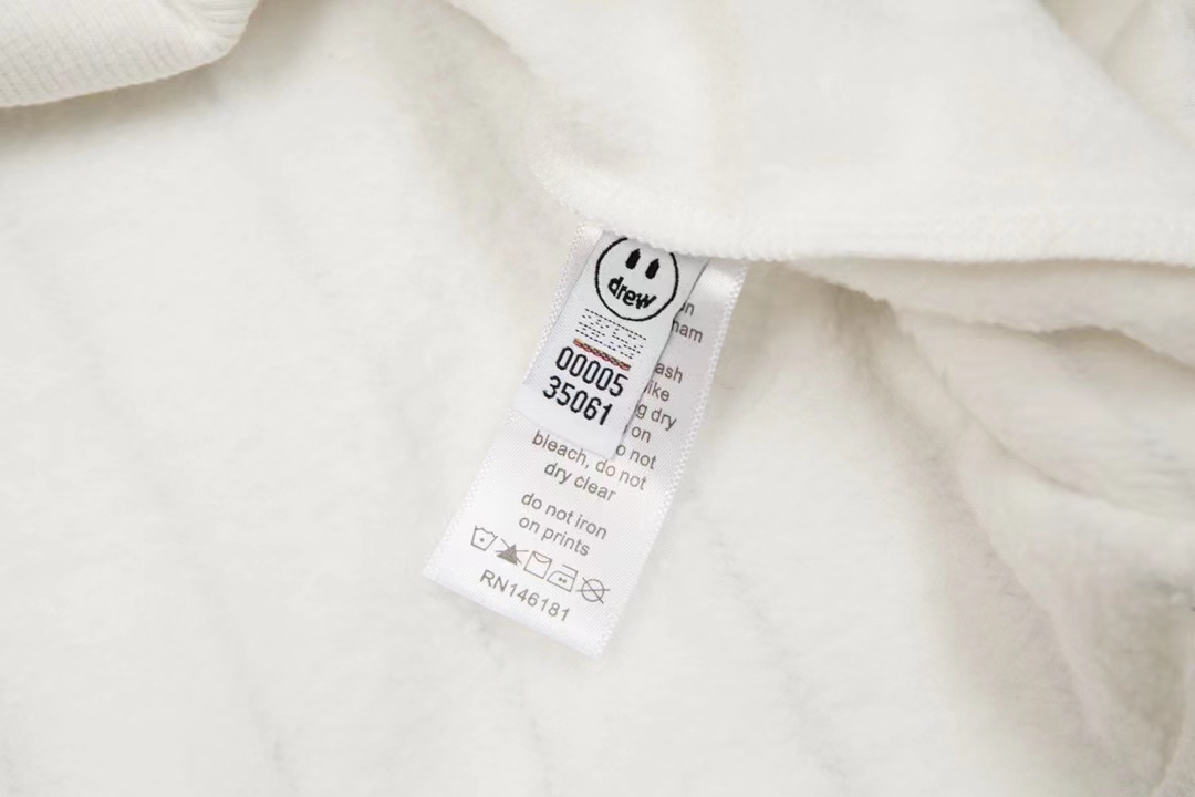 这款衣服是AAAAA 1:1 质量 (非常棒). 使用了和原版一模一样的材料. 商标部分也保持了和Drew House一样. 图片拍摄是实物衣服拍摄, 您所收到的实物保证和我们图片一模一样.