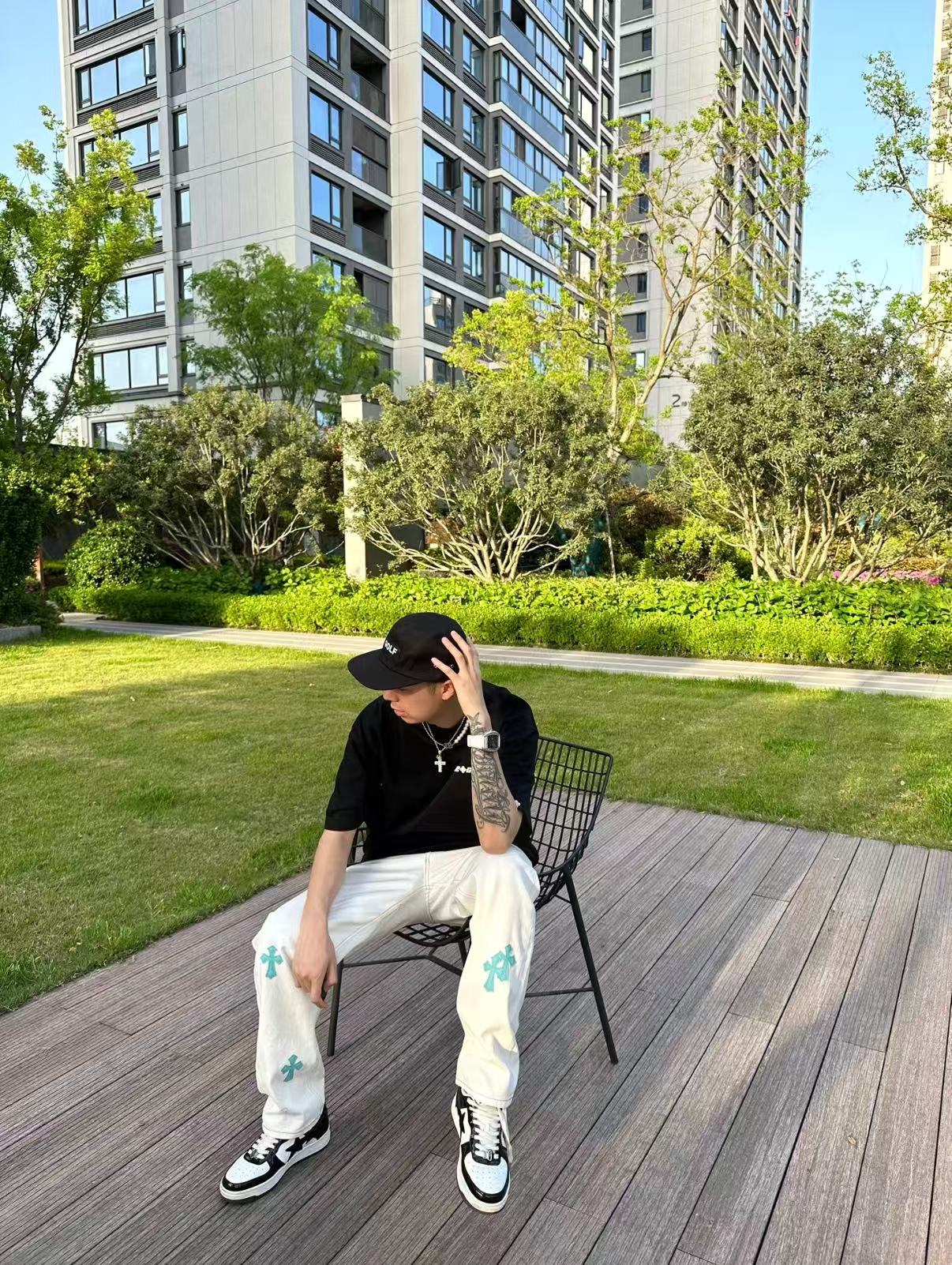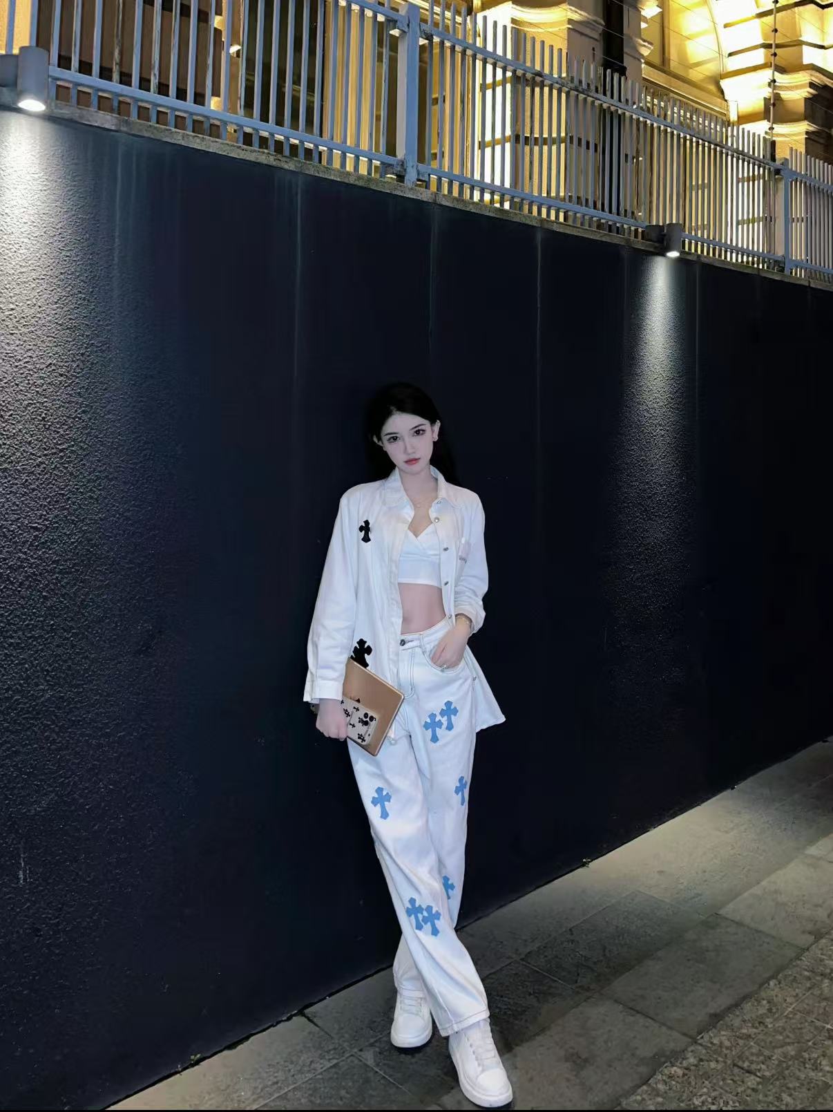 这款衣服是AAAAA 1:1 质量 (非常棒). 使用了和原版一模一样的材料. 商标部分也保持了和克罗心/Chrome Hearts一样. 图片拍摄是实物衣服拍摄, 您所收到的实物保证和我们图片一模一样.