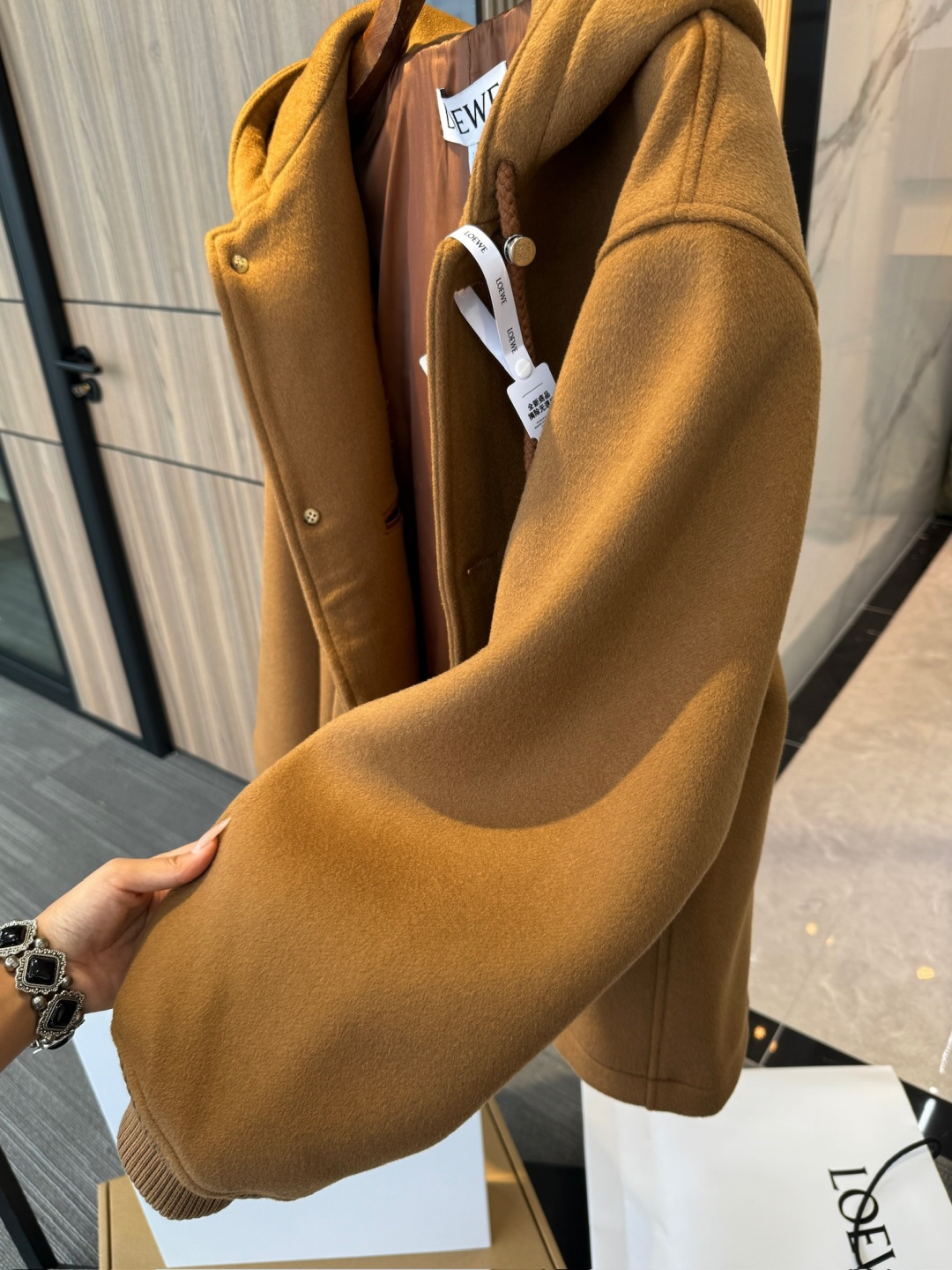 这款衣服是AAAAA 1:1 质量 (非常棒). 使用了和原版一模一样的材料. 商标部分也保持了和罗意威/Loewe一样. 图片拍摄是实物衣服拍摄, 您所收到的实物保证和我们图片一模一样.