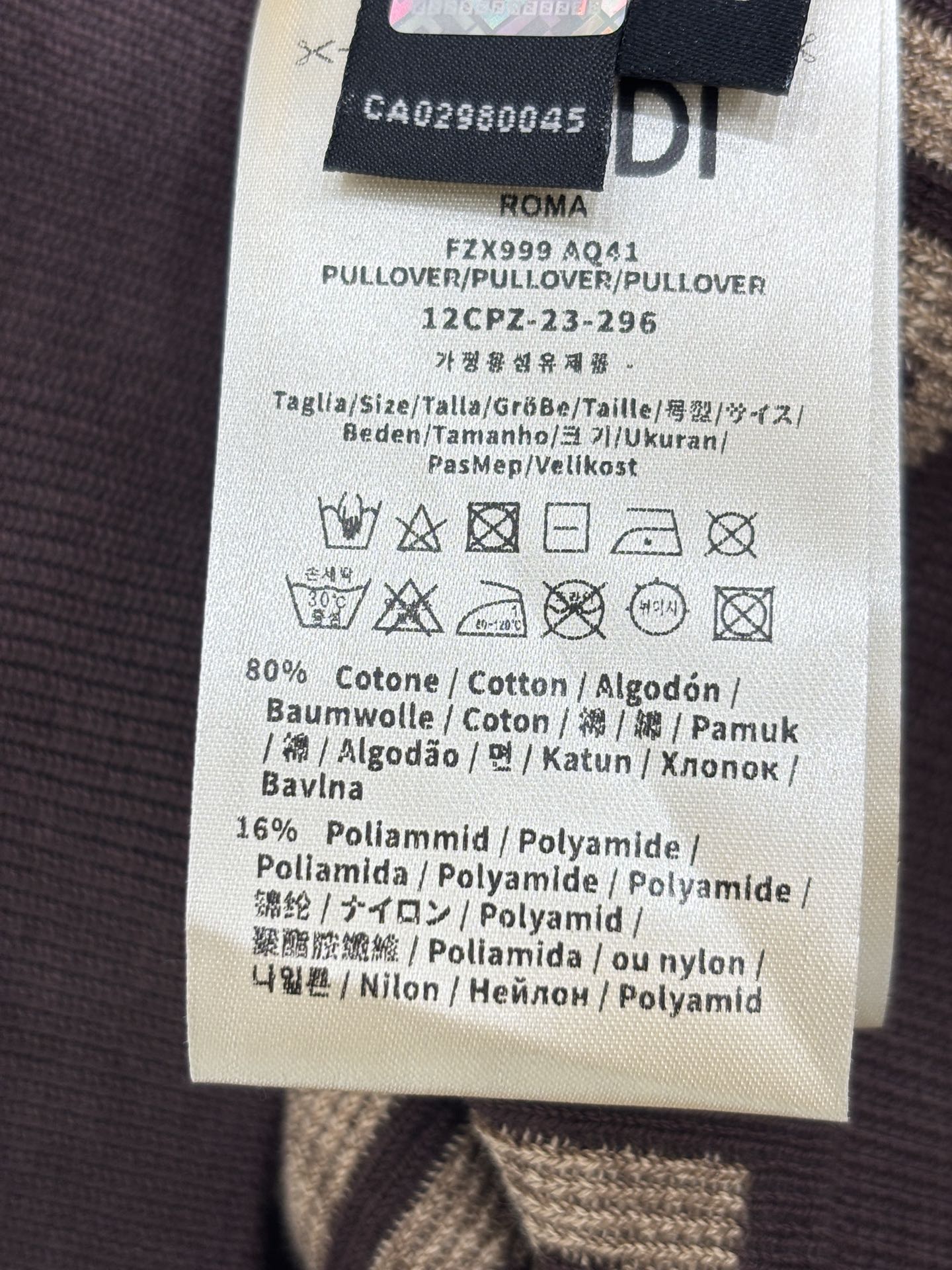 这款衣服是AAAAA 1:1 质量 (非常棒). 使用了和原版一模一样的材料. 商标部分也保持了和芬迪/Fendi一样. 图片拍摄是实物衣服拍摄, 您所收到的实物保证和我们图片一模一样.