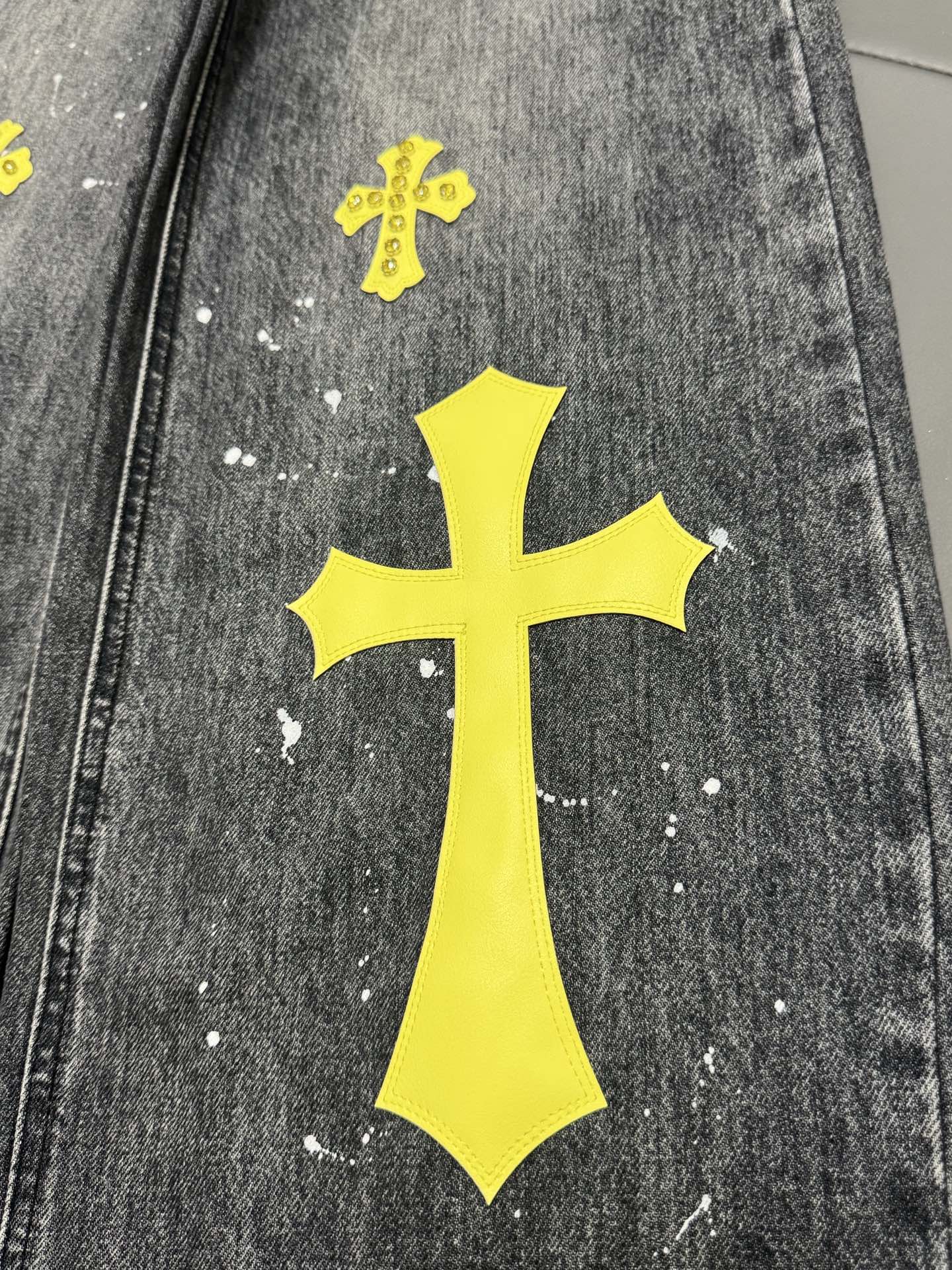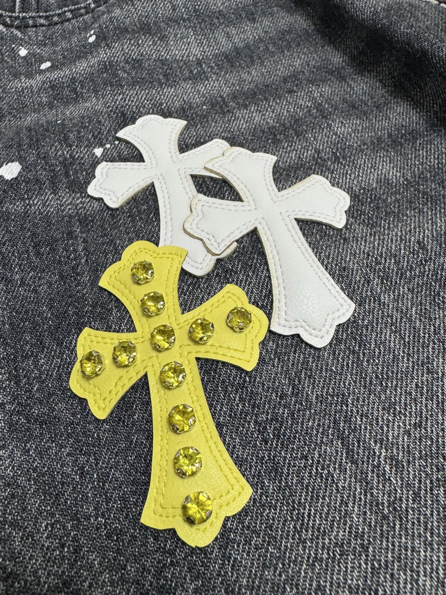 这款衣服是AAAAA 1:1 质量 (非常棒). 使用了和原版一模一样的材料. 商标部分也保持了和克罗心/Chrome Hearts一样. 图片拍摄是实物衣服拍摄, 您所收到的实物保证和我们图片一模一样.