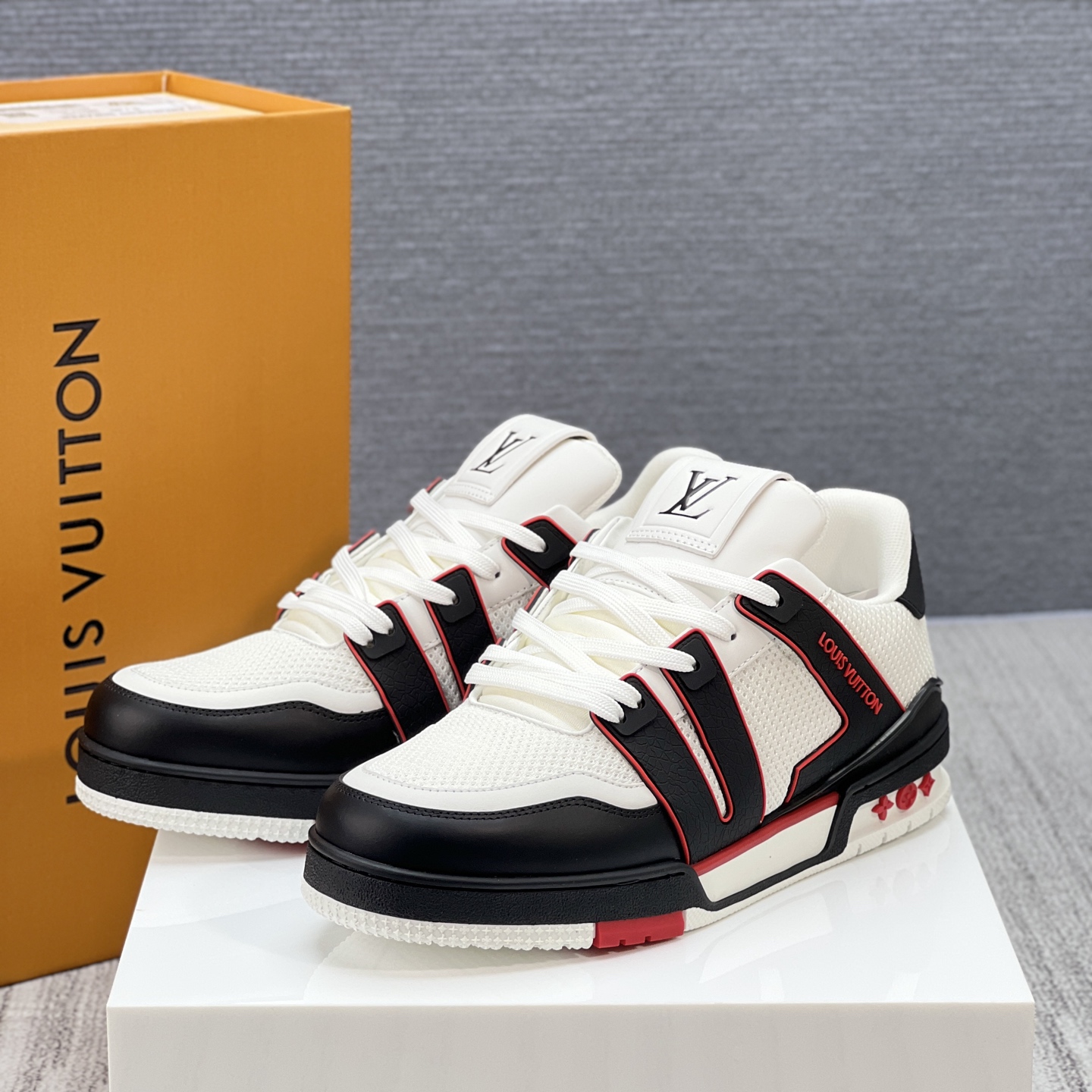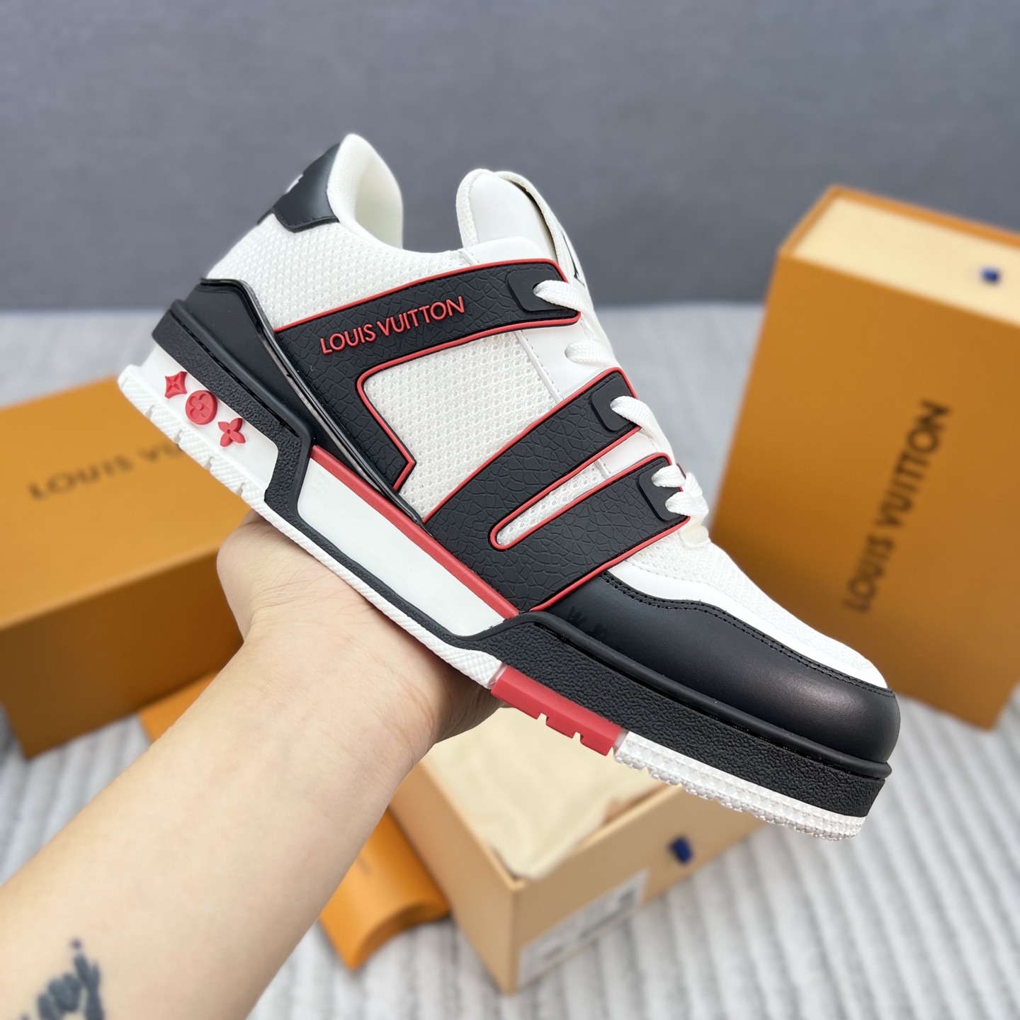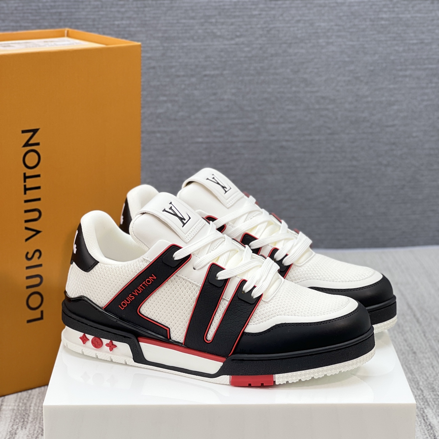 这款鞋子是AAAAA 1:1 质量 (非常棒). 使用了和原版一模一样的材料. 商标部分也保持了和路易威登/Louis Vuitton一样. 图片拍摄是实物鞋子拍摄, 您所收到的实物保证和我们图片一模一样.