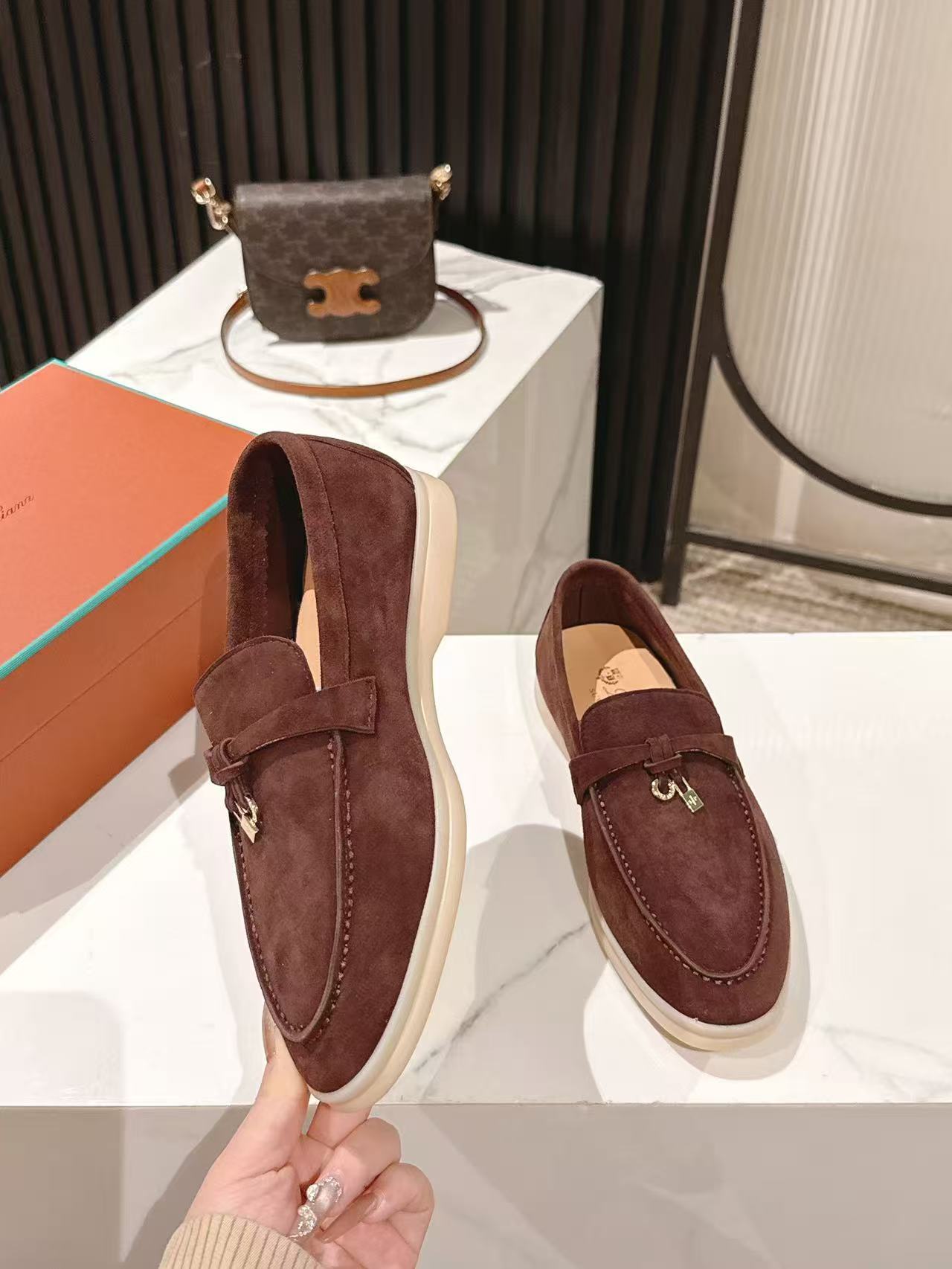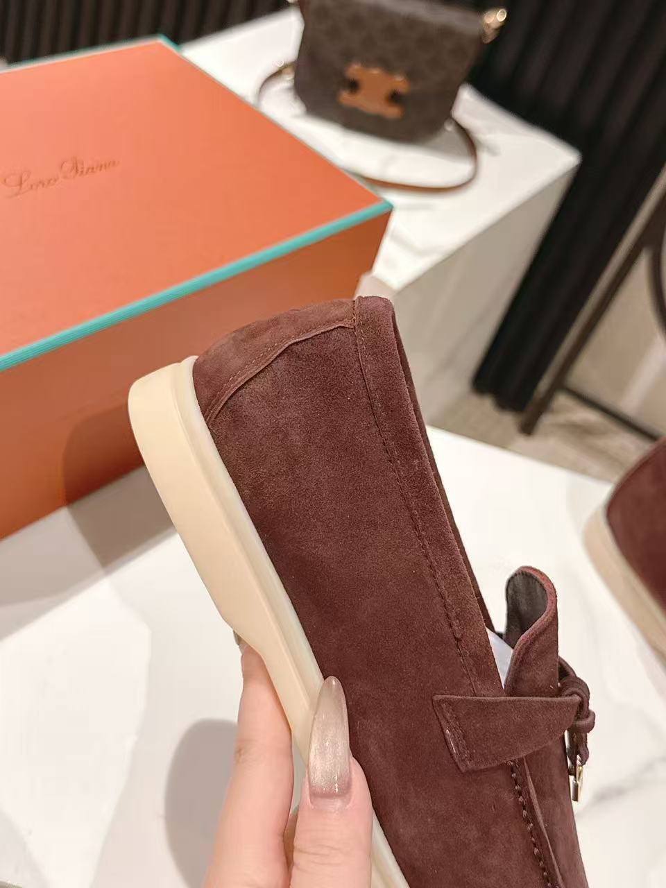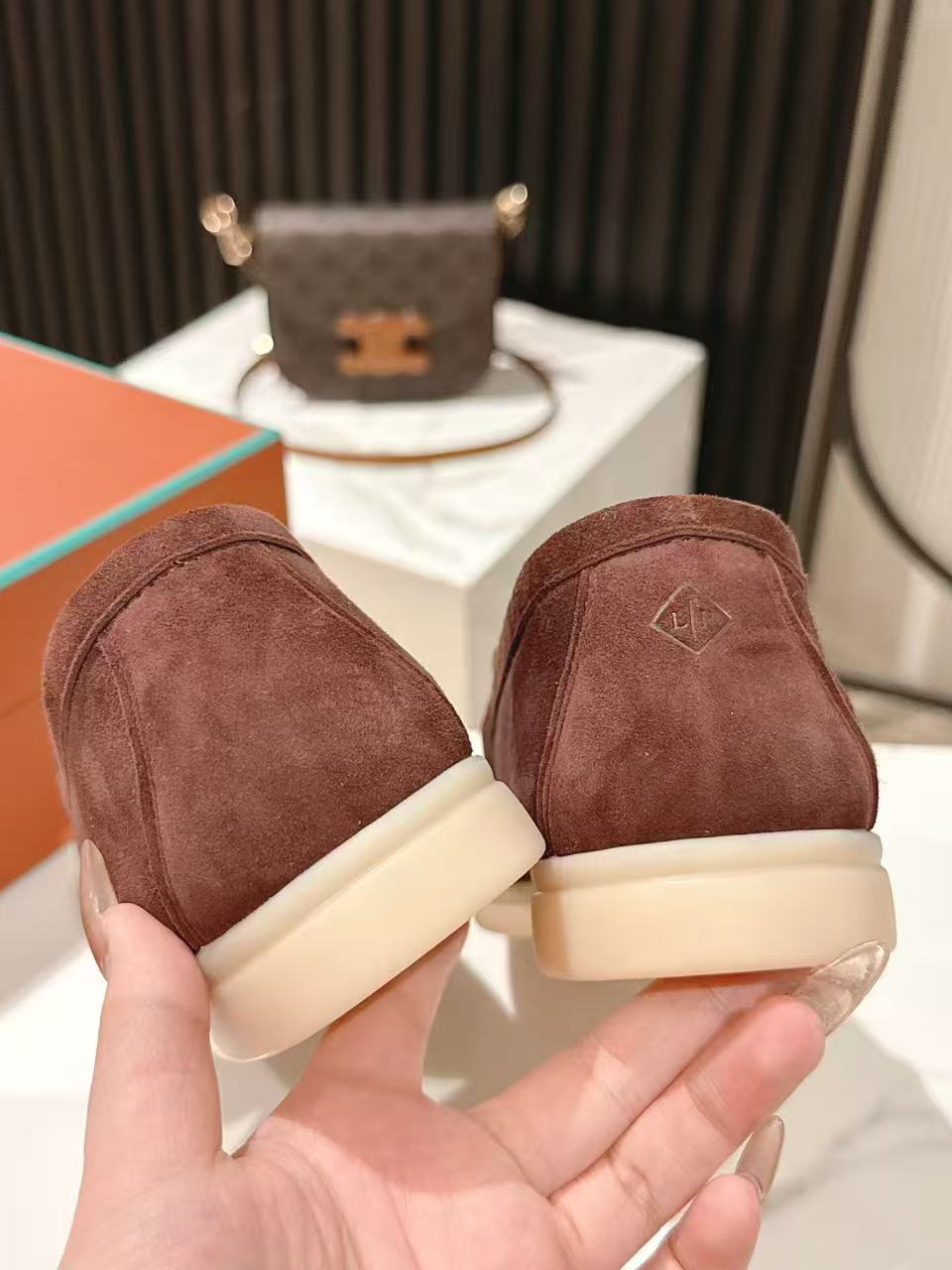 这款鞋子是AAAAA 1:1 质量 (非常棒). 使用了和原版一模一样的材料. 商标部分也保持了和洛罗皮亚纳/Loro Piana一样. 图片拍摄是实物鞋子拍摄, 您所收到的实物保证和我们图片一模一样.