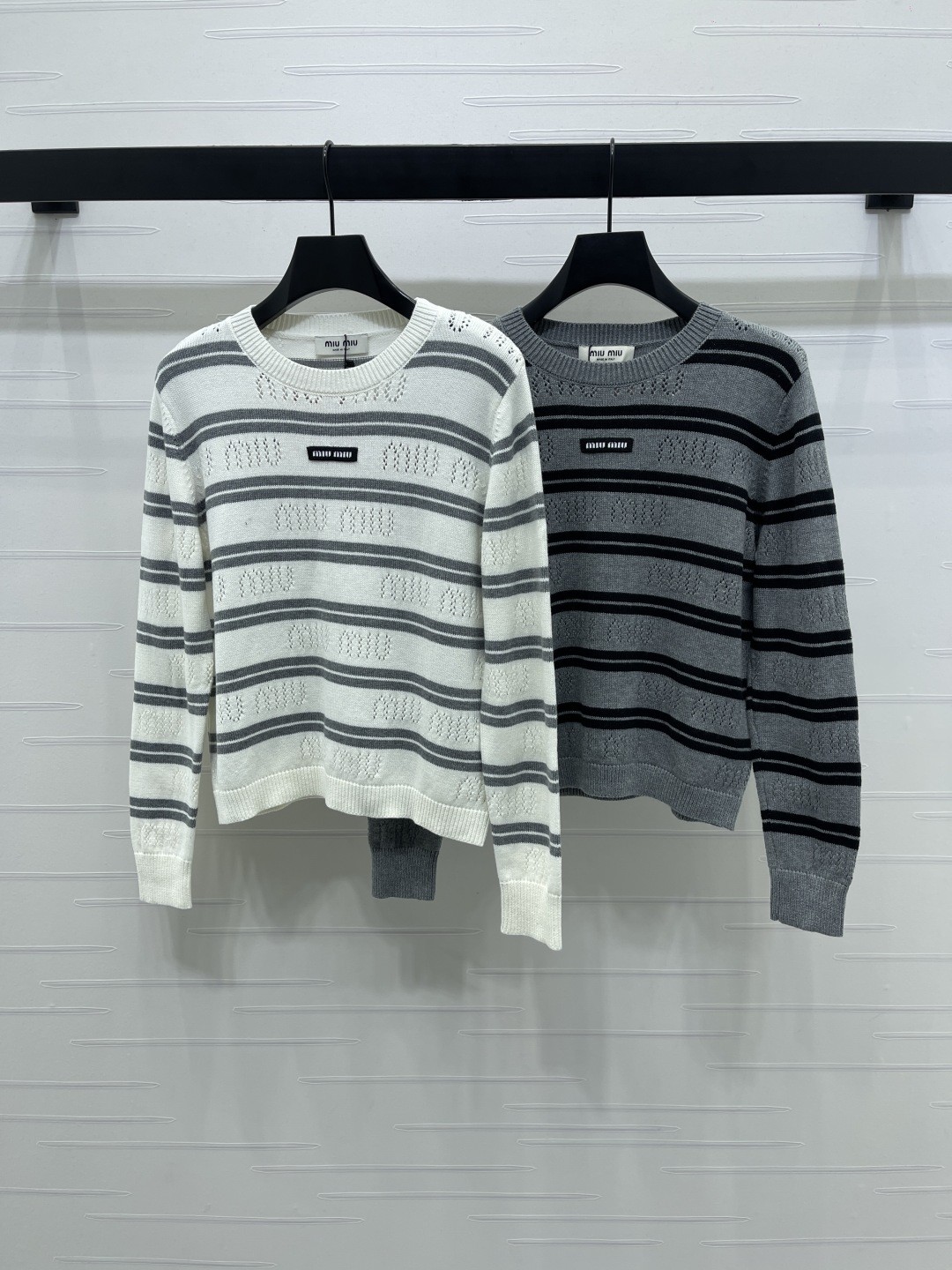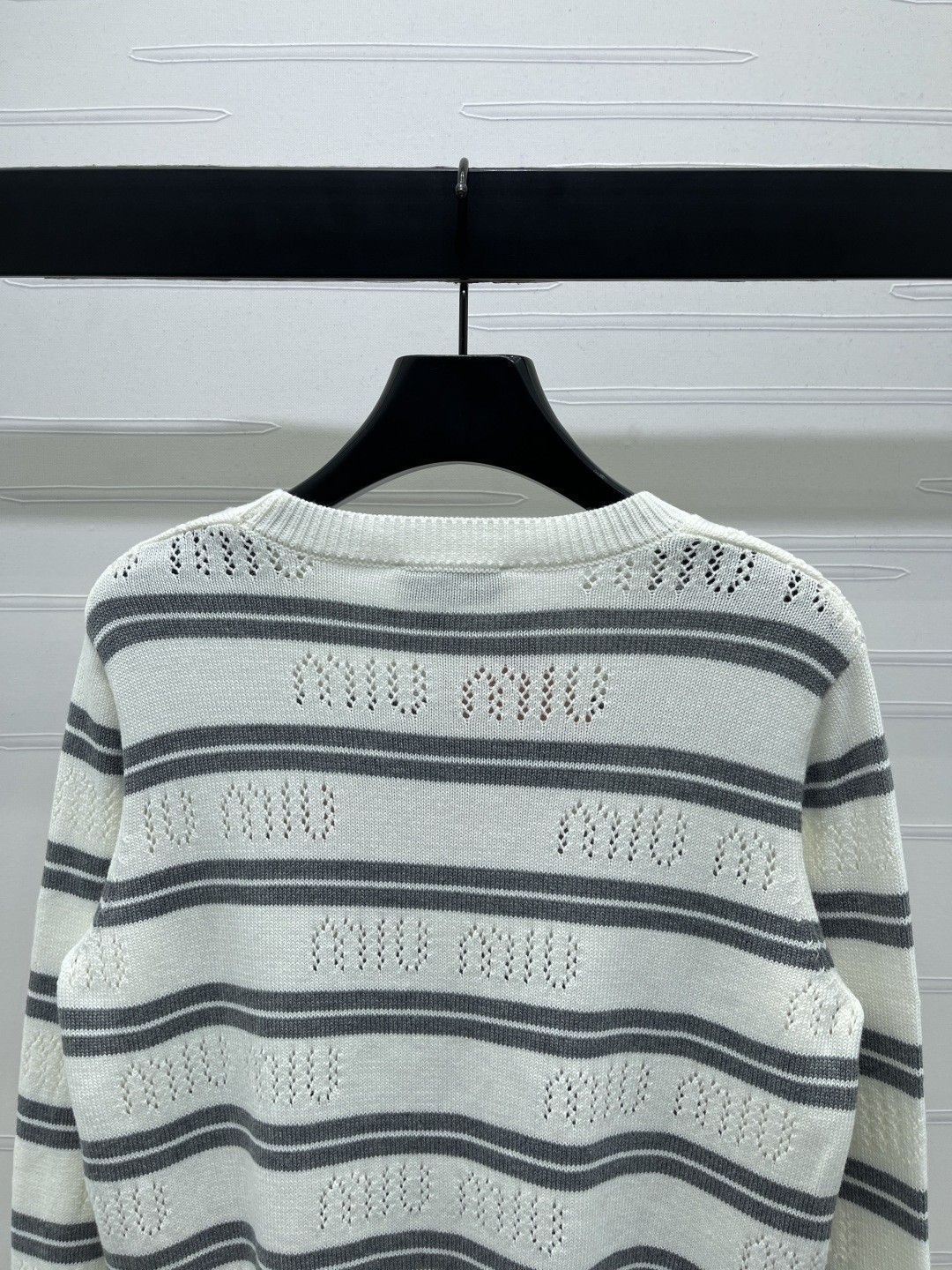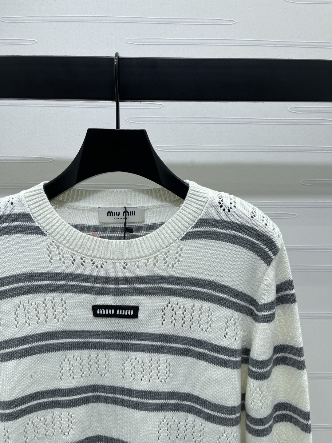 这款衣服是AAAAA 1:1 质量 (非常棒). 使用了和原版一模一样的材料. 商标部分也保持了和缪缪/Miu Miu一样. 图片拍摄是实物衣服拍摄, 您所收到的实物保证和我们图片一模一样.