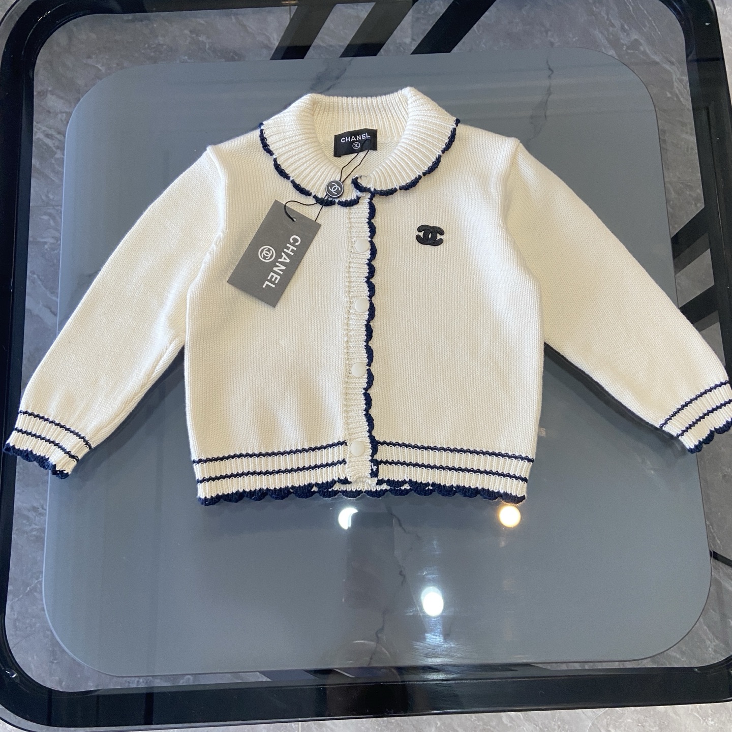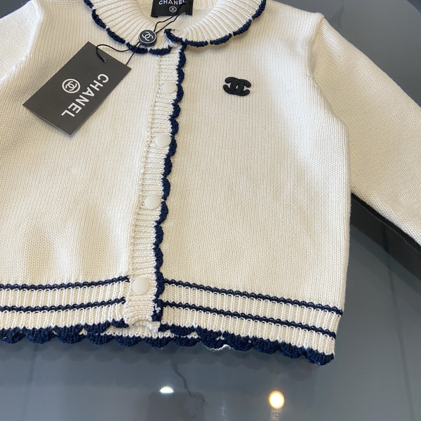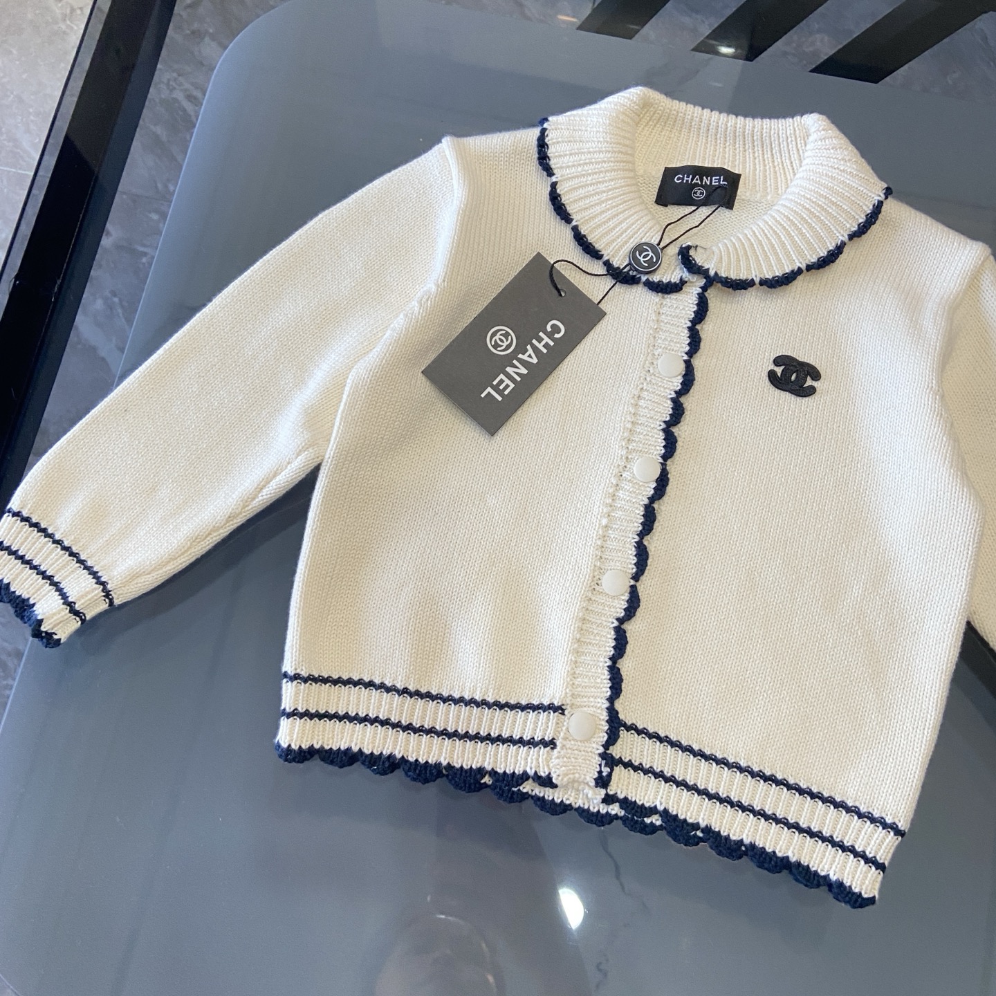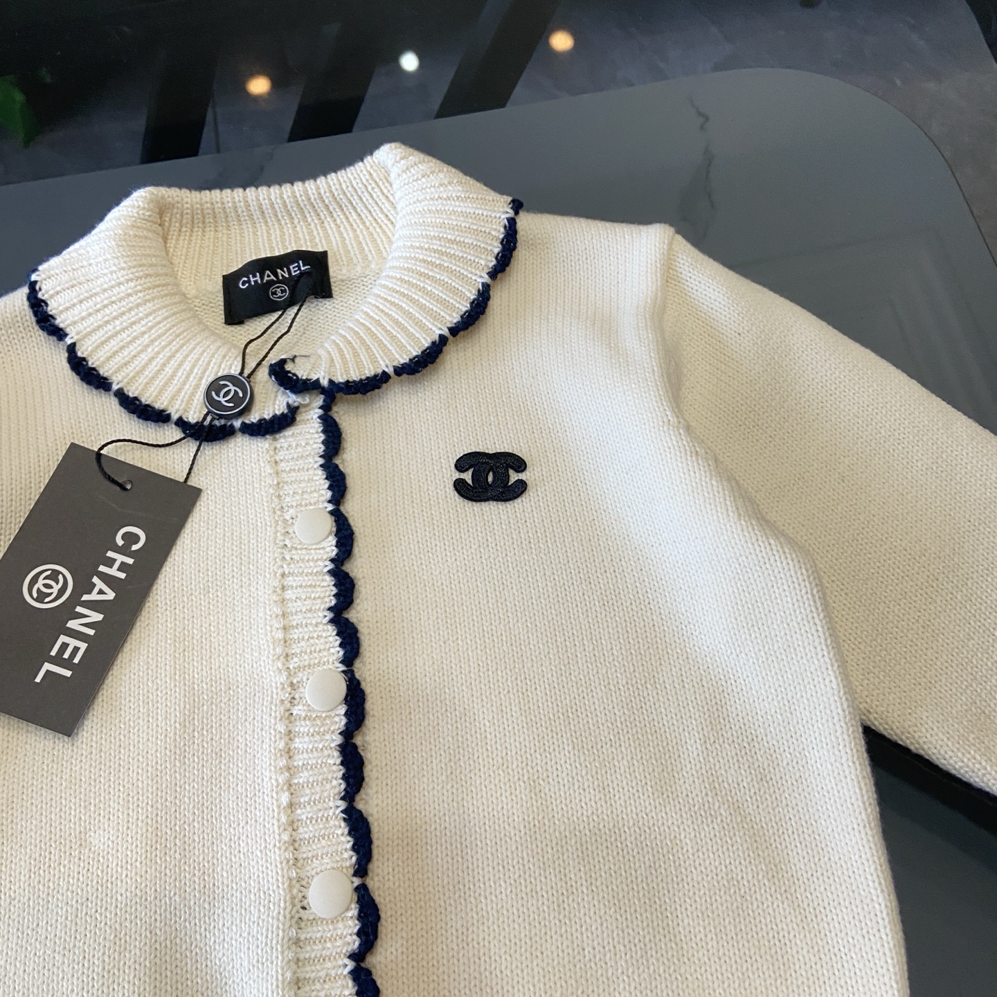 这款children's clothes是AAAAA 1:1 质量 (非常棒). 使用了和原版一模一样的材料. 商标部分也保持了和香奈儿/Chanel一样. 图片拍摄是实物children's clothes拍摄, 您所收到的实物保证和我们图片一模一样.