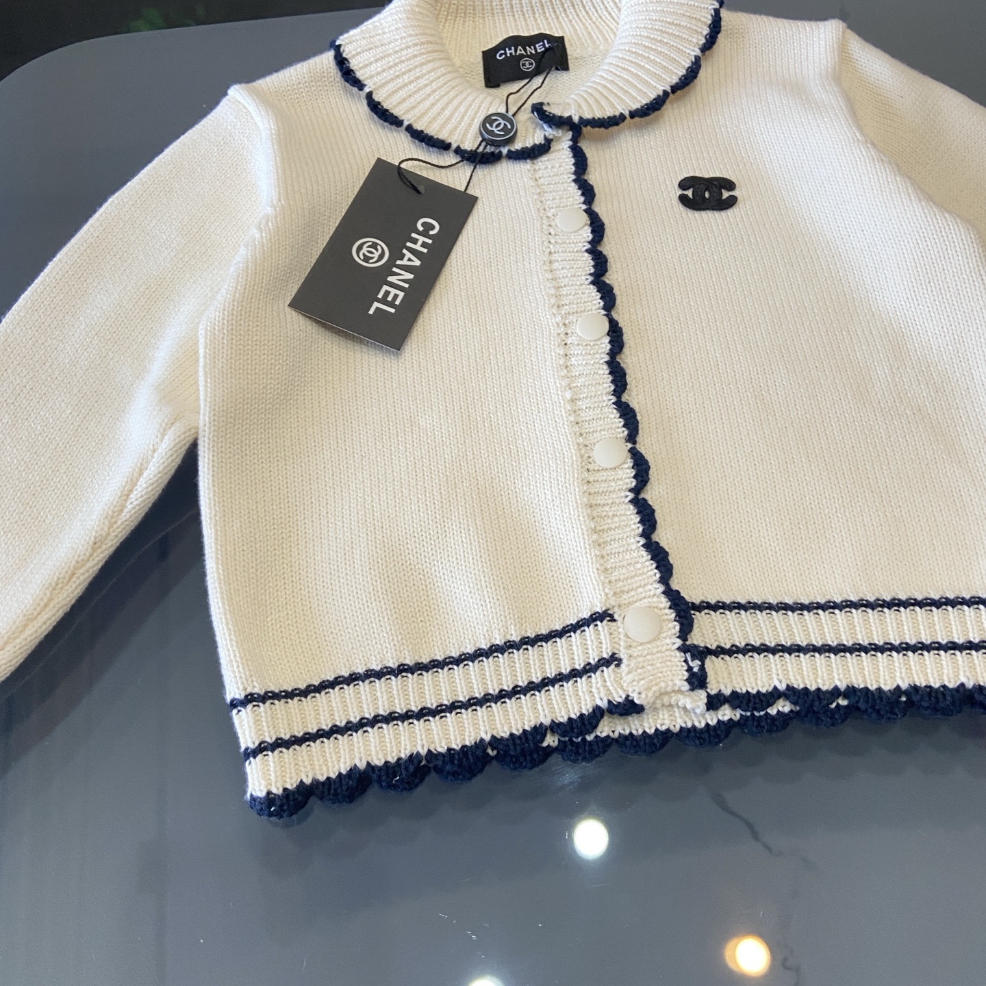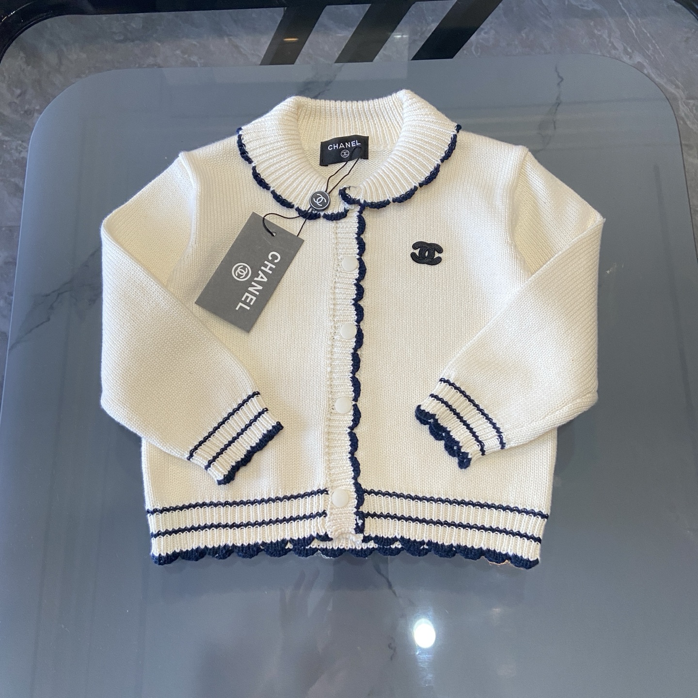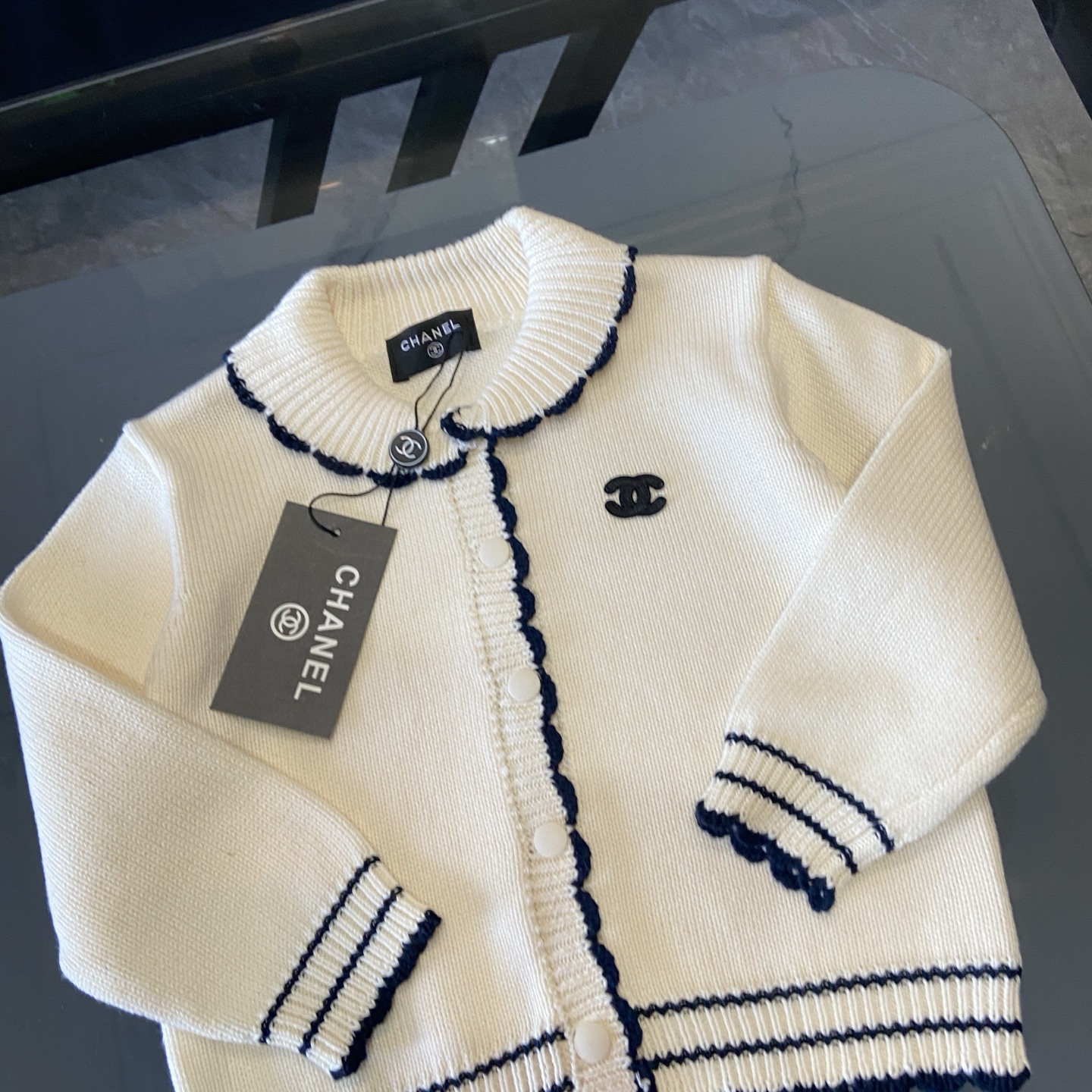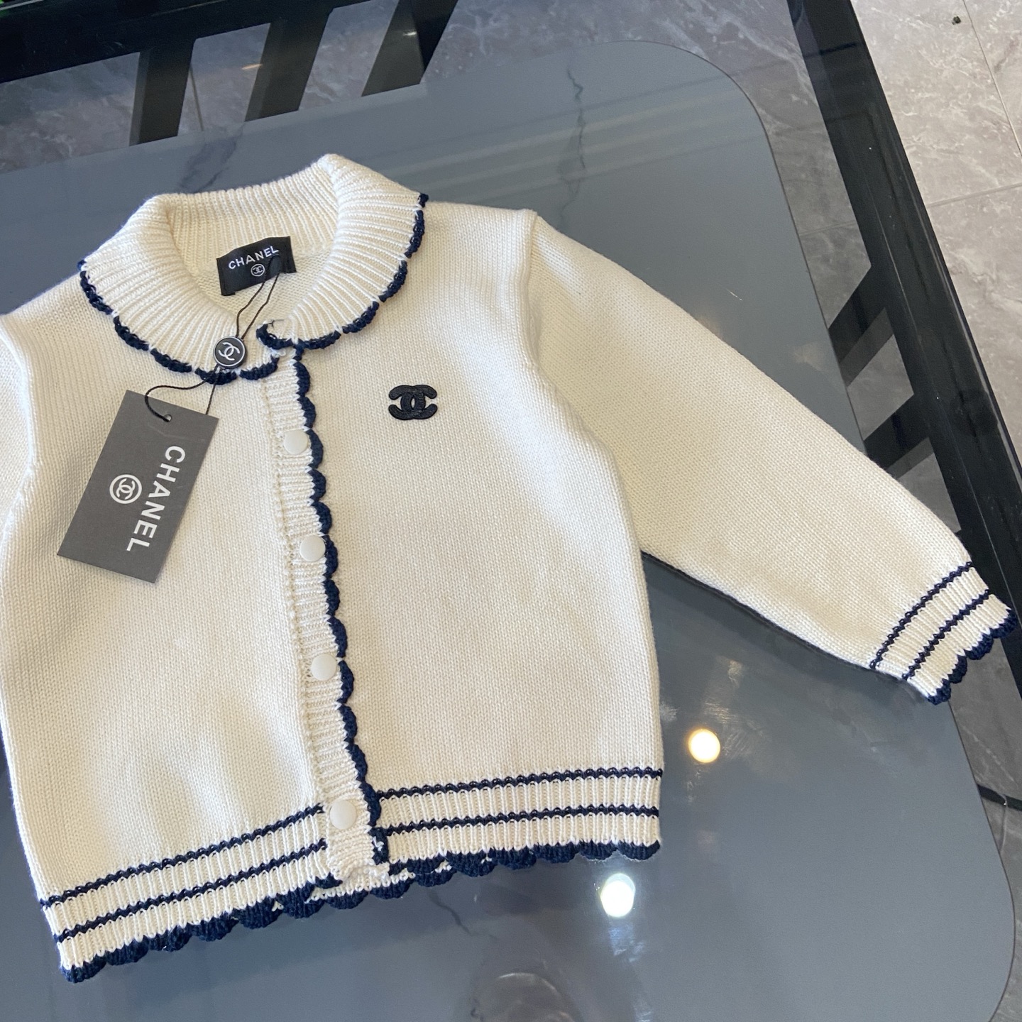 这款children's clothes是AAAAA 1:1 质量 (非常棒). 使用了和原版一模一样的材料. 商标部分也保持了和香奈儿/Chanel一样. 图片拍摄是实物children's clothes拍摄, 您所收到的实物保证和我们图片一模一样.