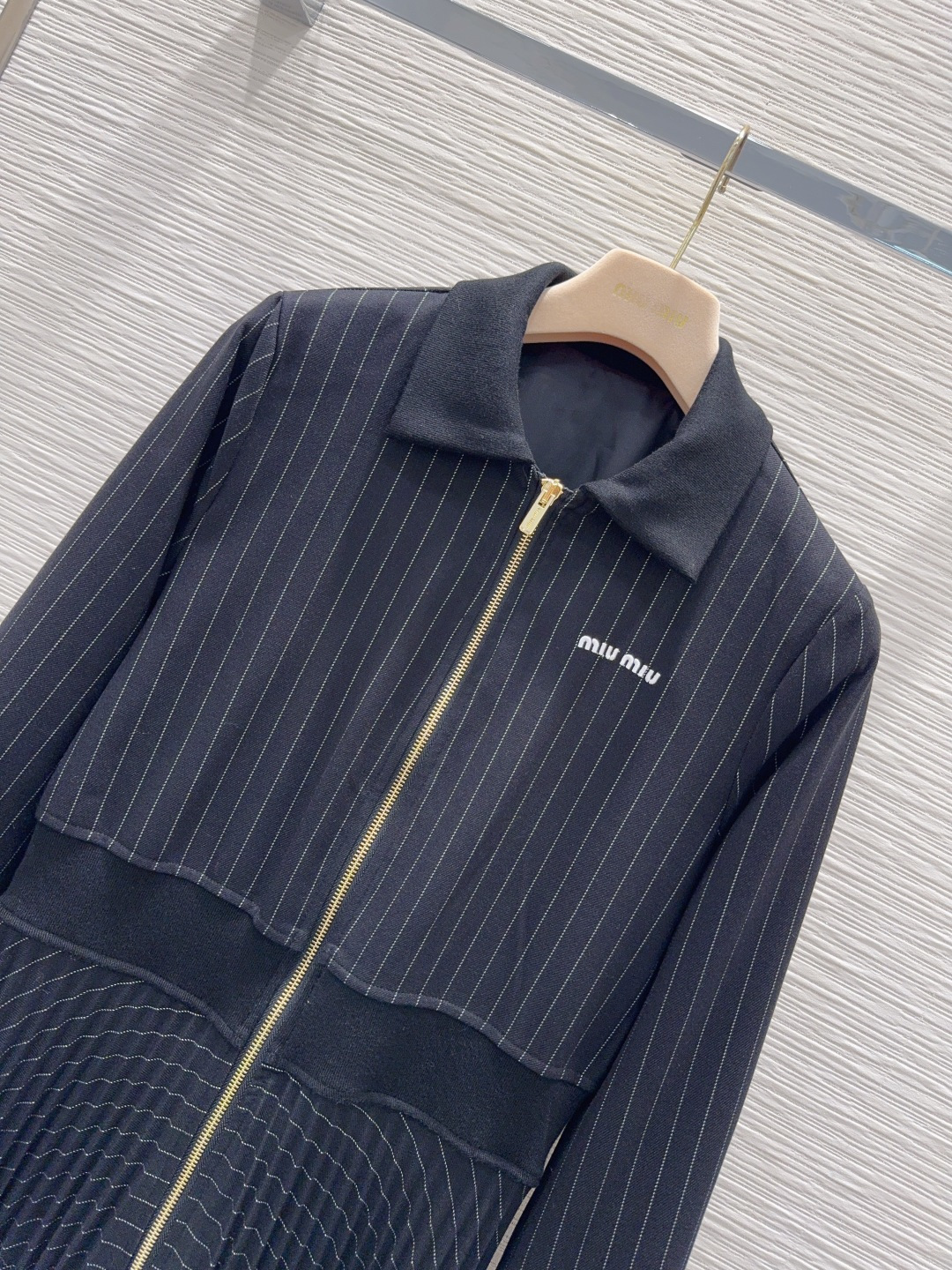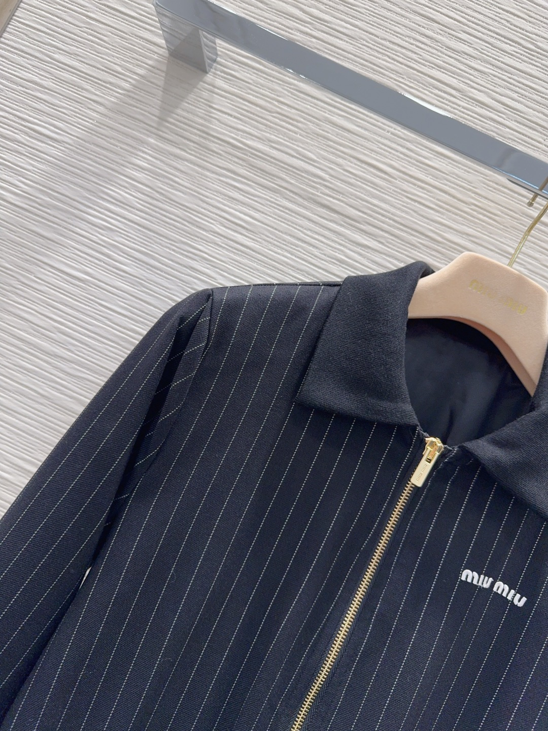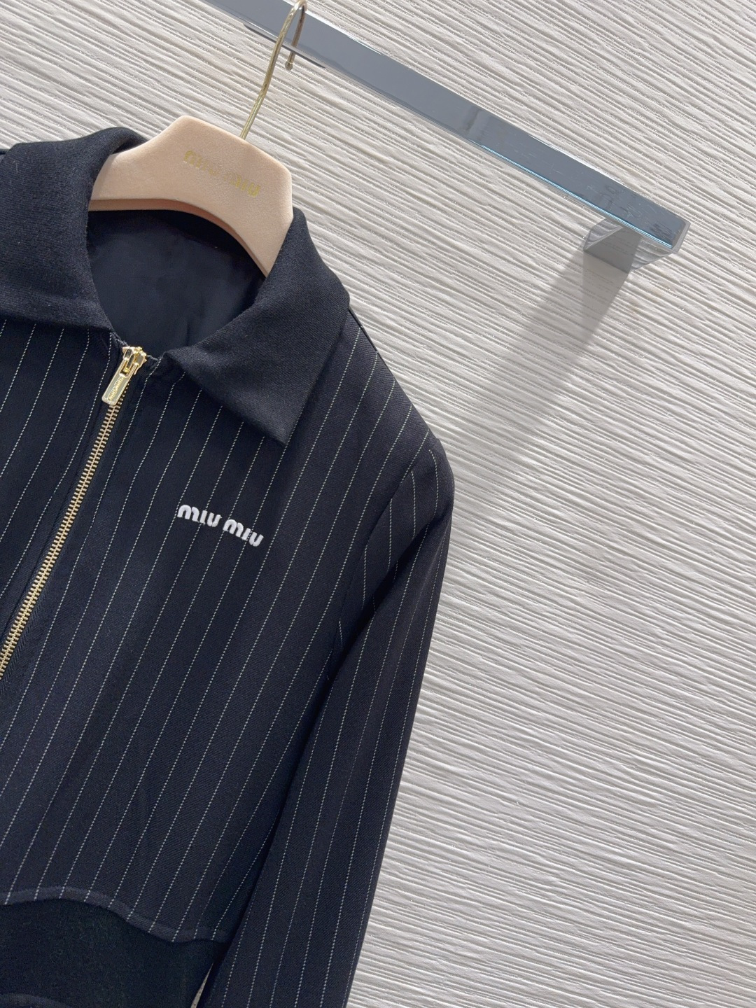 这款衣服是AAAAA 1:1 质量 (非常棒). 使用了和原版一模一样的材料. 商标部分也保持了和缪缪/Miu Miu一样. 图片拍摄是实物衣服拍摄, 您所收到的实物保证和我们图片一模一样.