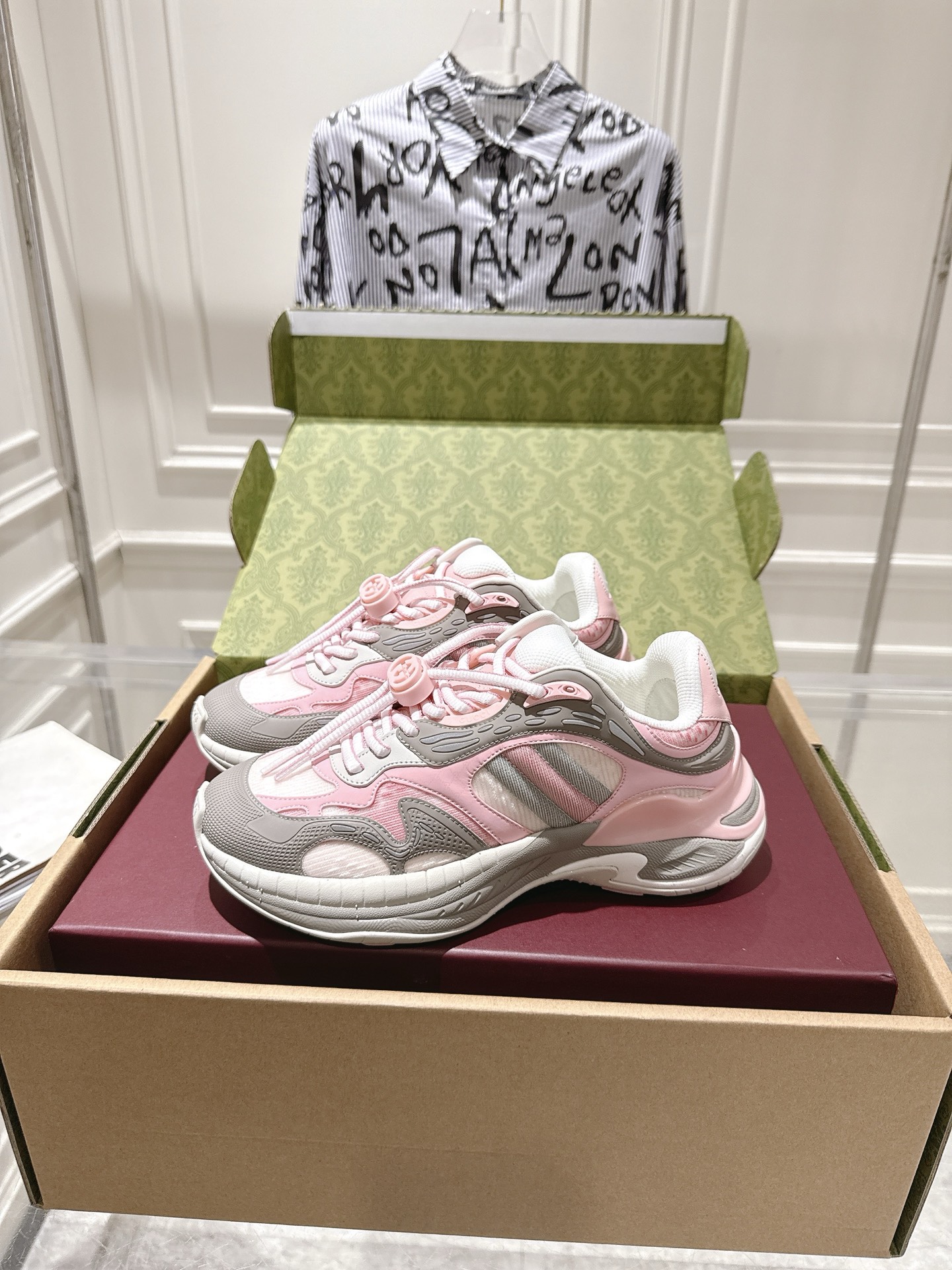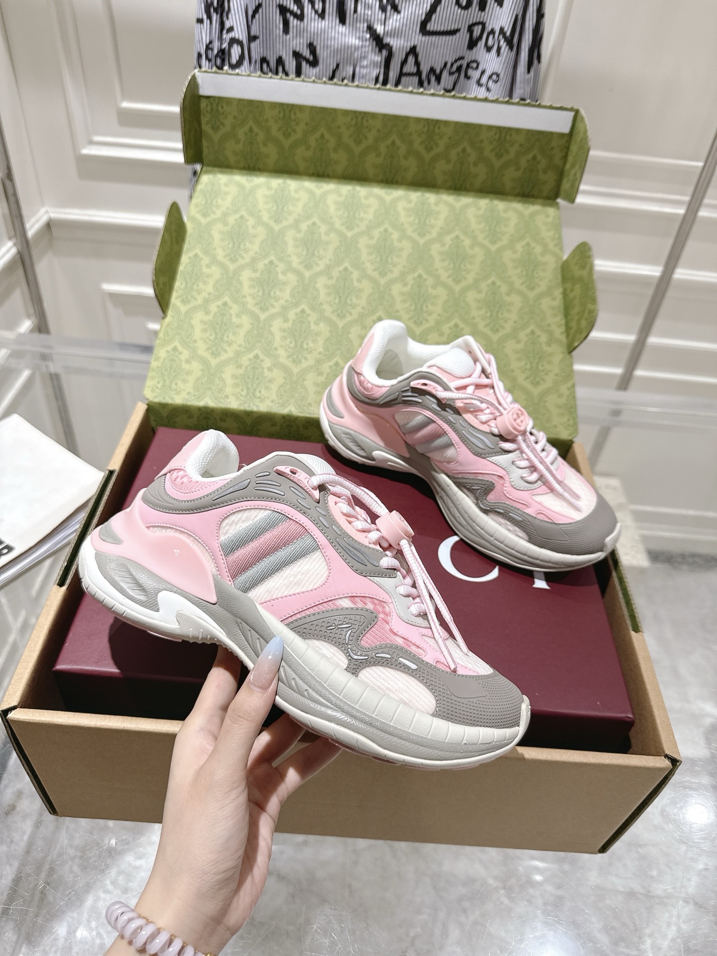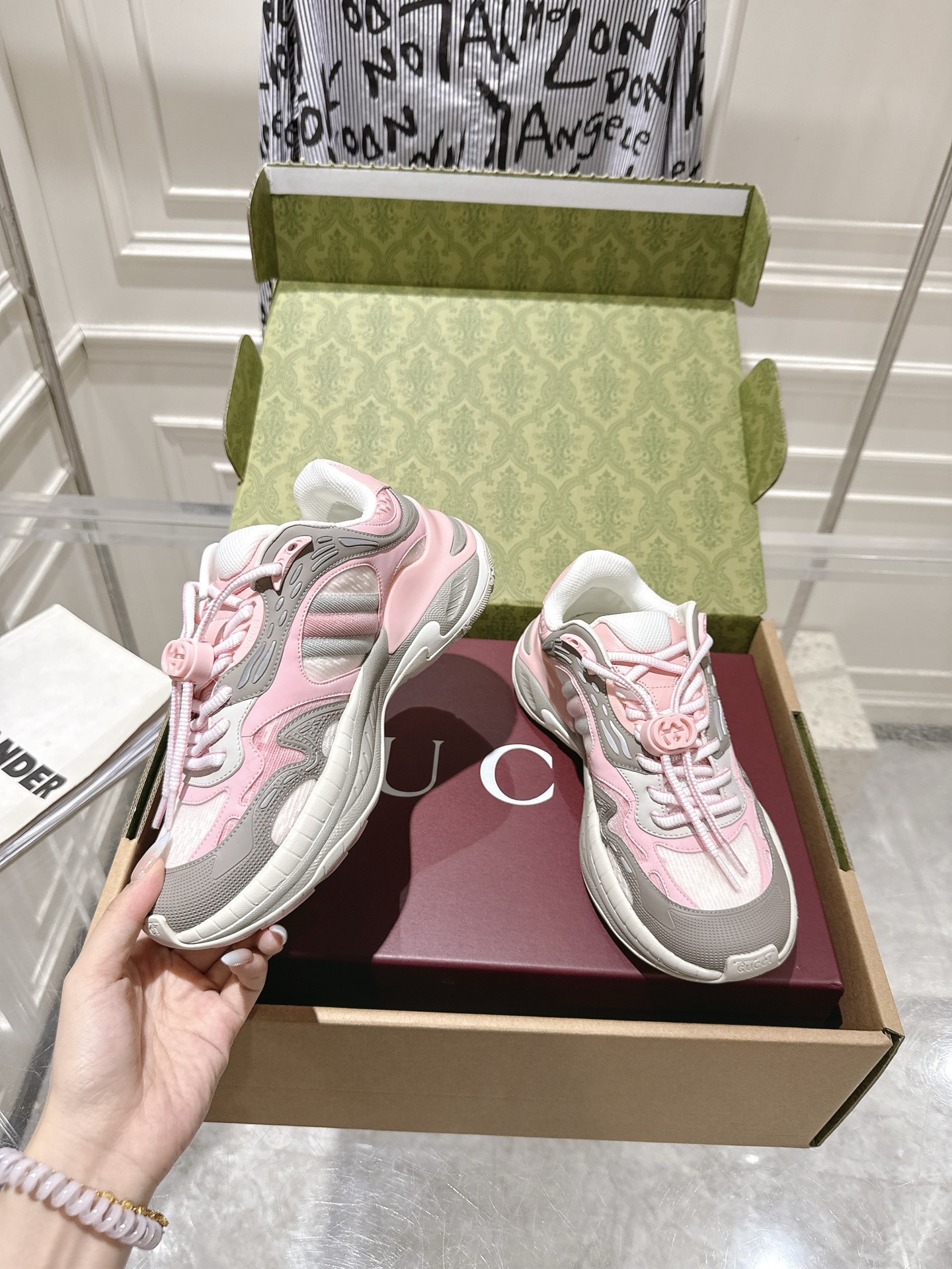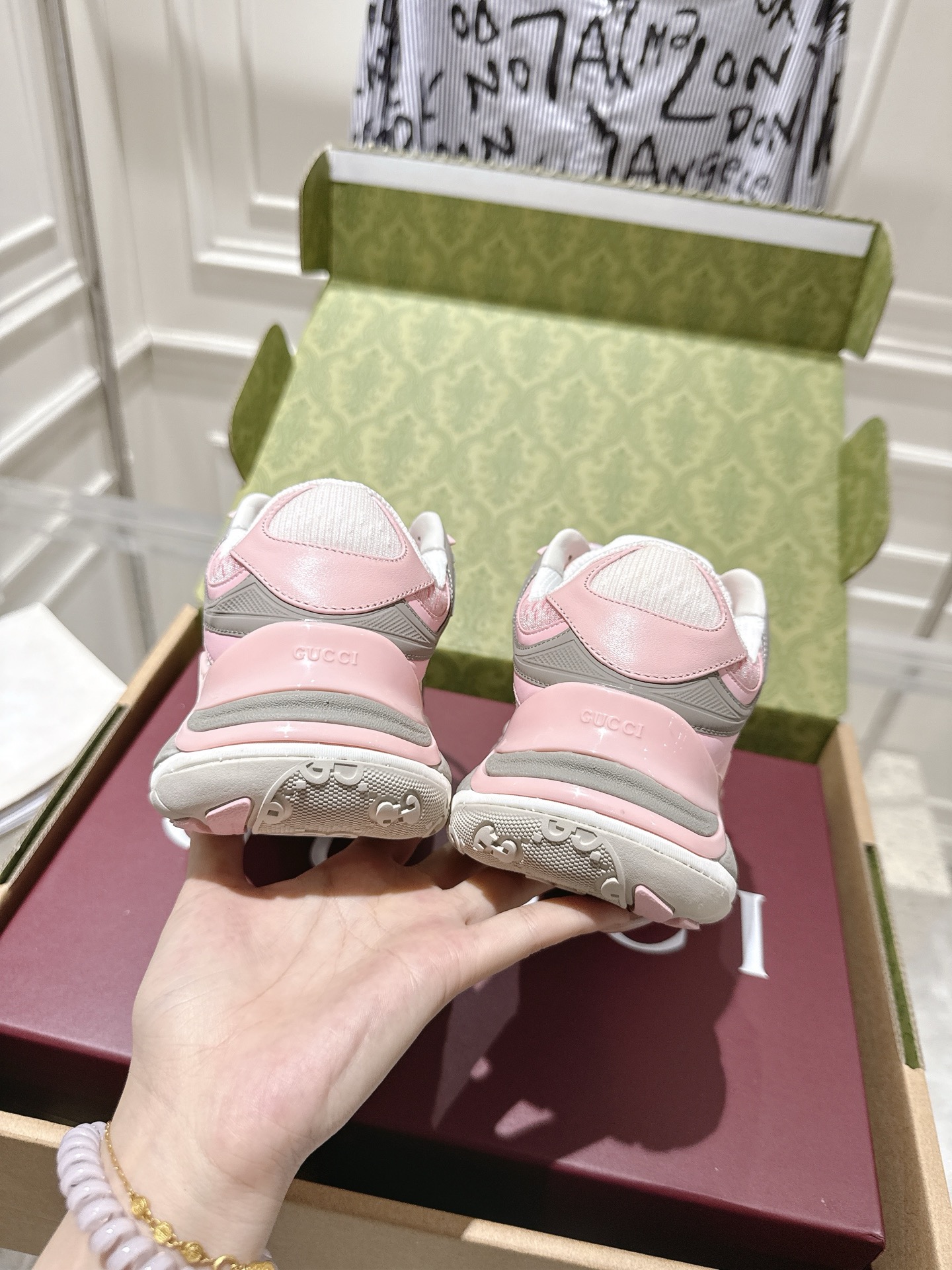 这款鞋子是AAAAA 1:1 质量 (非常棒). 使用了和原版一模一样的材料. 商标部分也保持了和古奇/Gucci一样. 图片拍摄是实物鞋子拍摄, 您所收到的实物保证和我们图片一模一样.