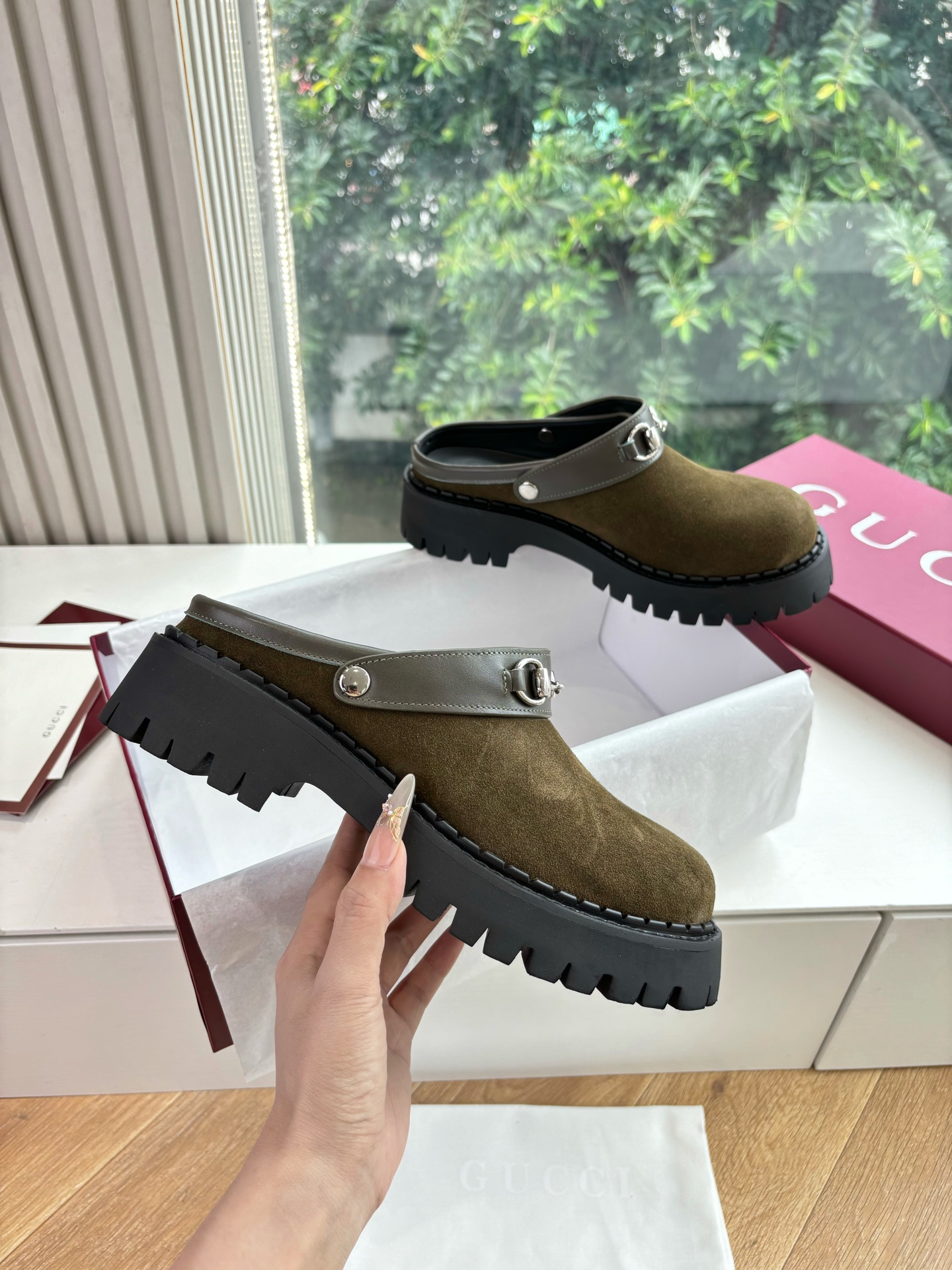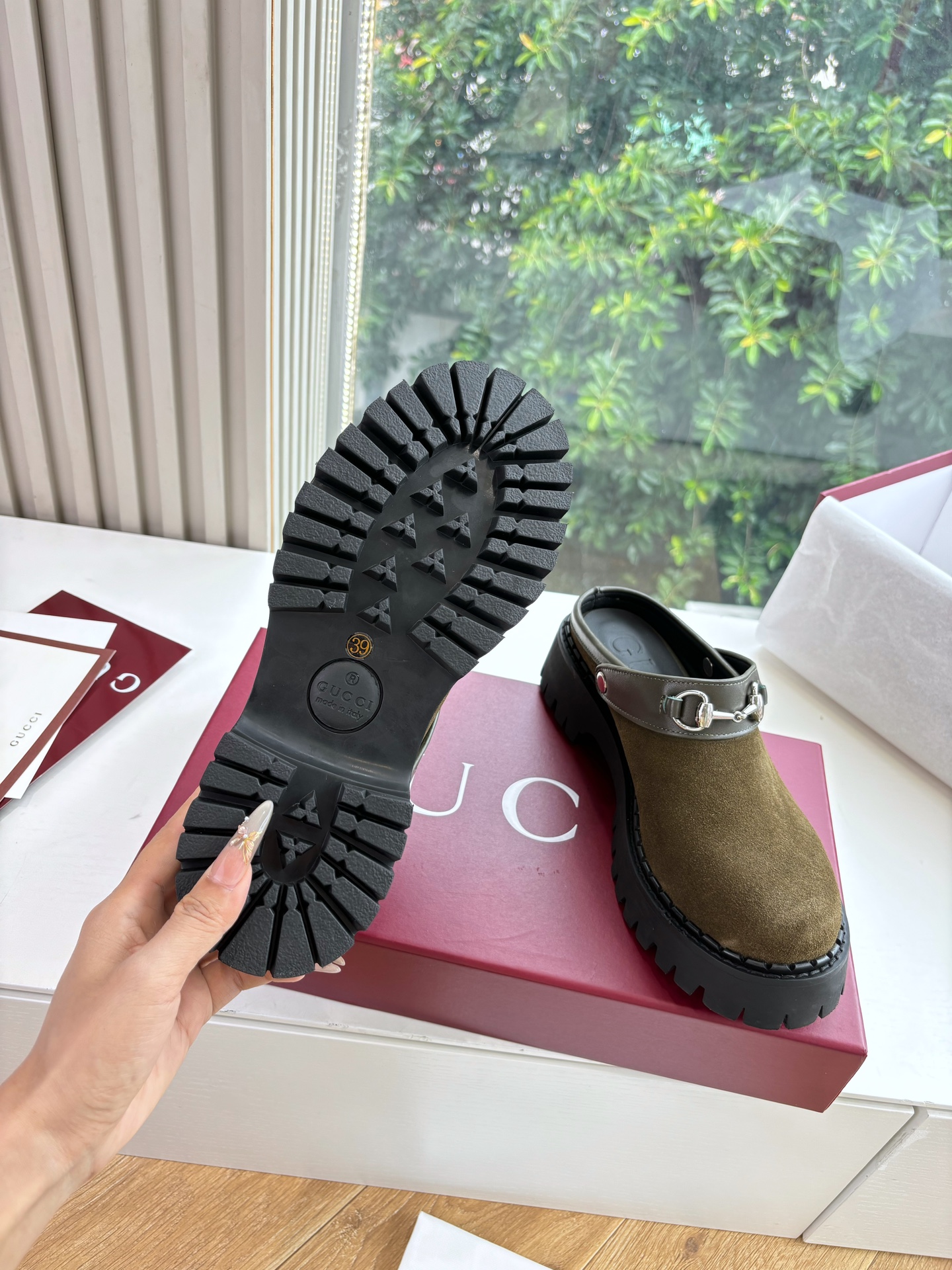 这款鞋子是AAAAA 1:1 质量 (非常棒). 使用了和原版一模一样的材料. 商标部分也保持了和古奇/Gucci一样. 图片拍摄是实物鞋子拍摄, 您所收到的实物保证和我们图片一模一样.