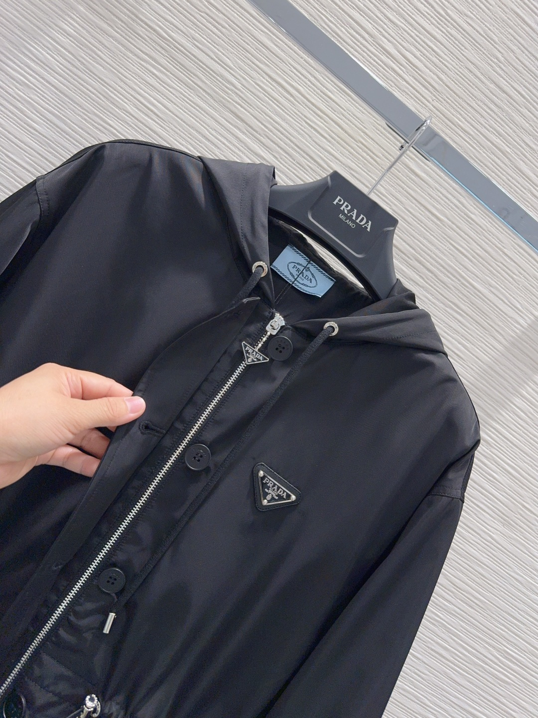 这款衣服是AAAAA 1:1 质量 (非常棒). 使用了和原版一模一样的材料. 商标部分也保持了和普拉达/Prada一样. 图片拍摄是实物衣服拍摄, 您所收到的实物保证和我们图片一模一样.