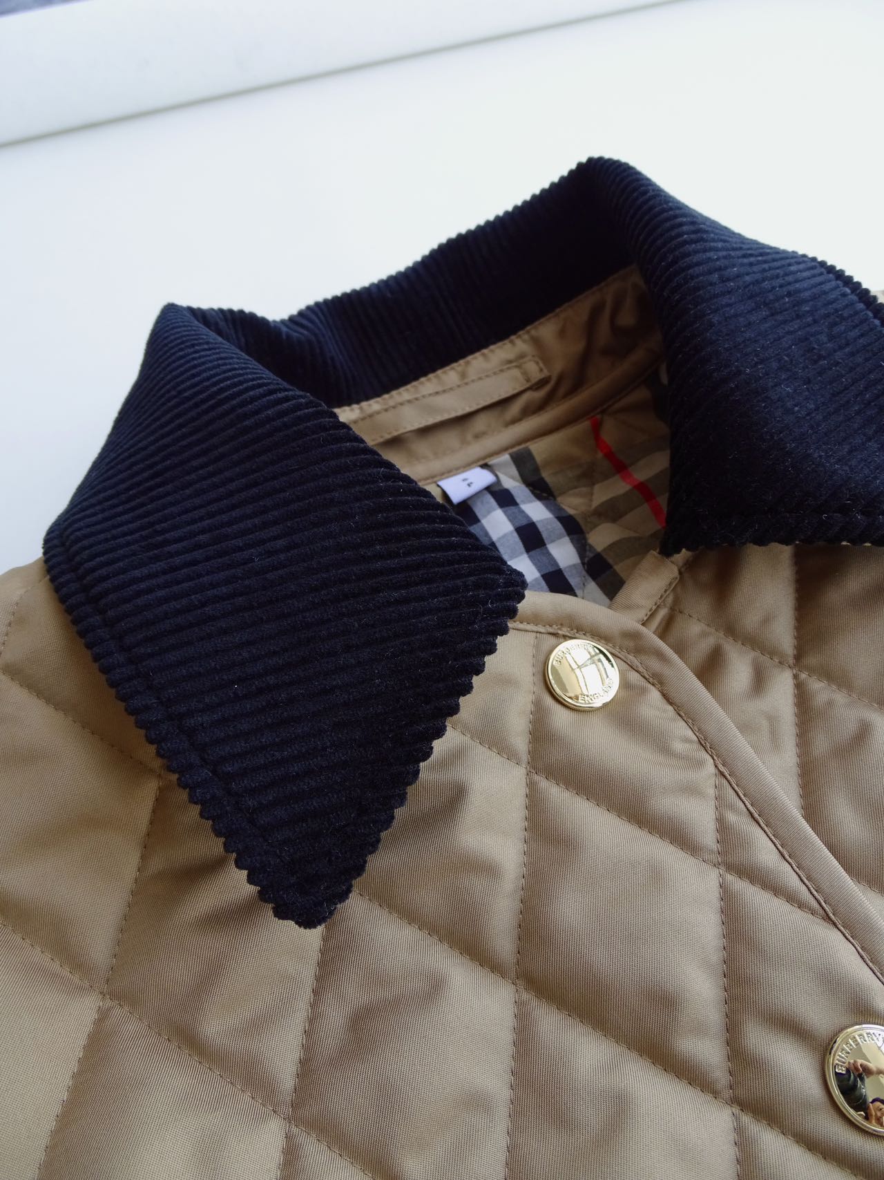 这款衣服是AAAAA 1:1 质量 (非常棒). 使用了和原版一模一样的材料. 商标部分也保持了和巴宝莉/Burberry一样. 图片拍摄是实物衣服拍摄, 您所收到的实物保证和我们图片一模一样.