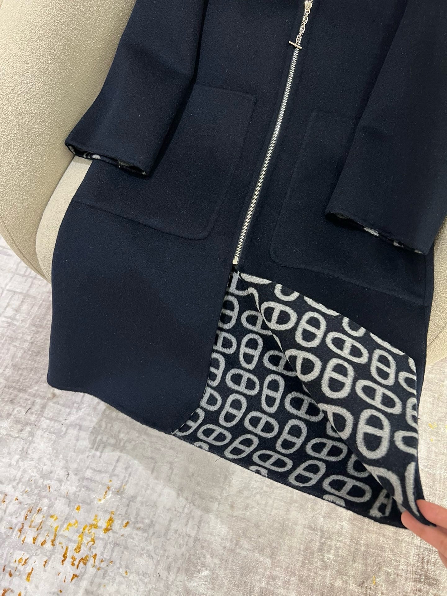 这款衣服是AAAAA 1:1 质量 (非常棒). 使用了和原版一模一样的材料. 商标部分也保持了和爱马仕/Hermes一样. 图片拍摄是实物衣服拍摄, 您所收到的实物保证和我们图片一模一样.