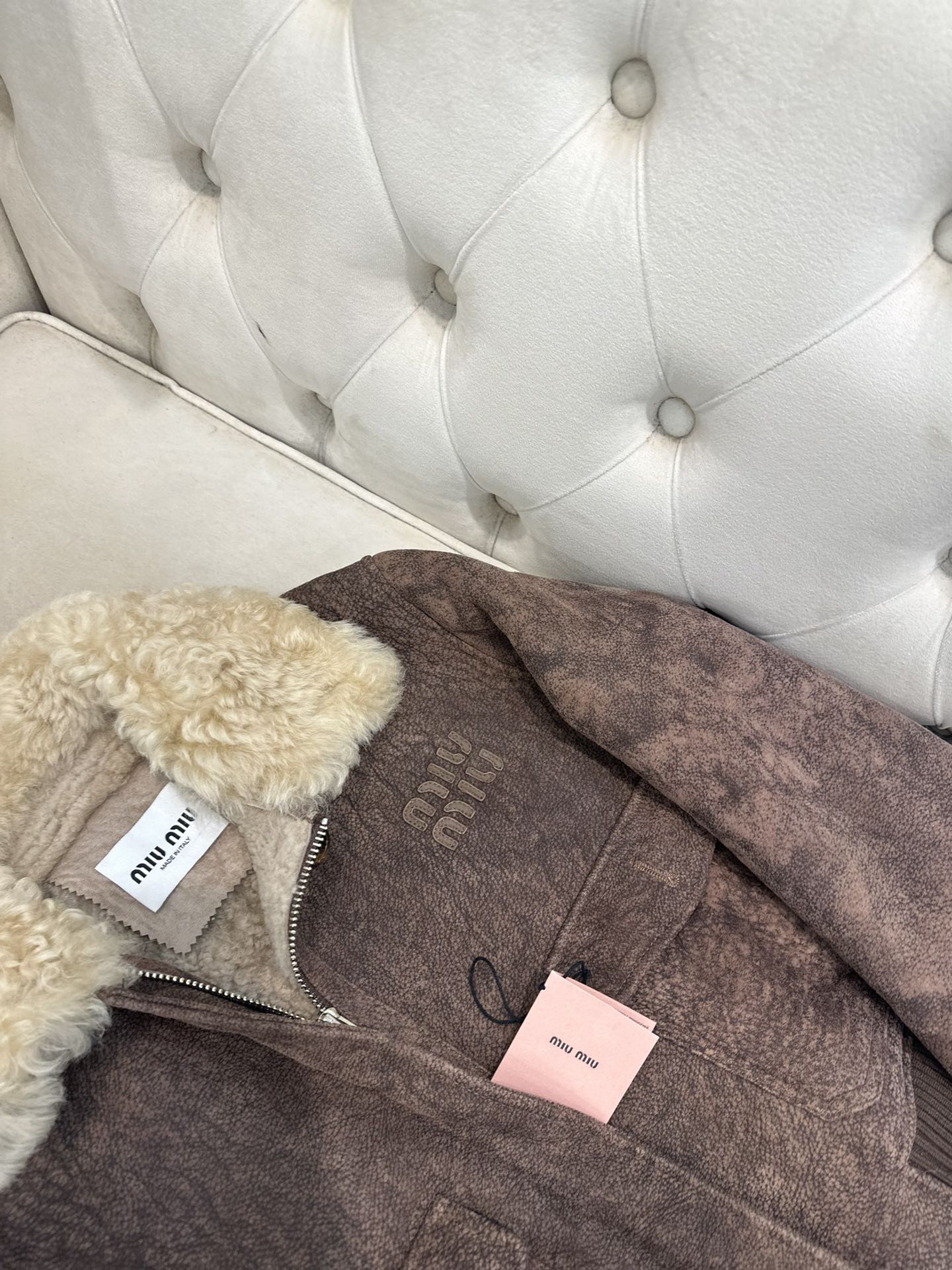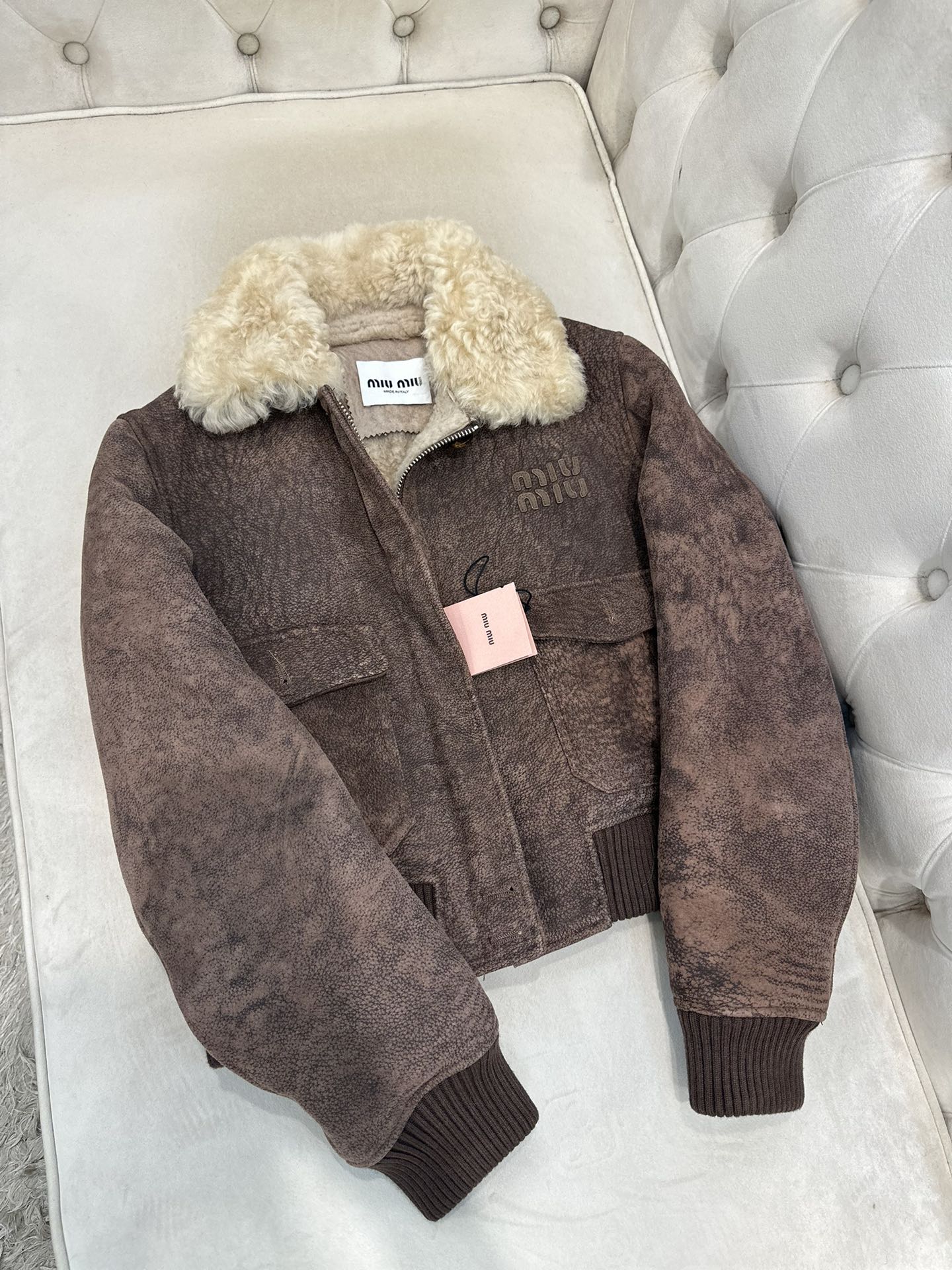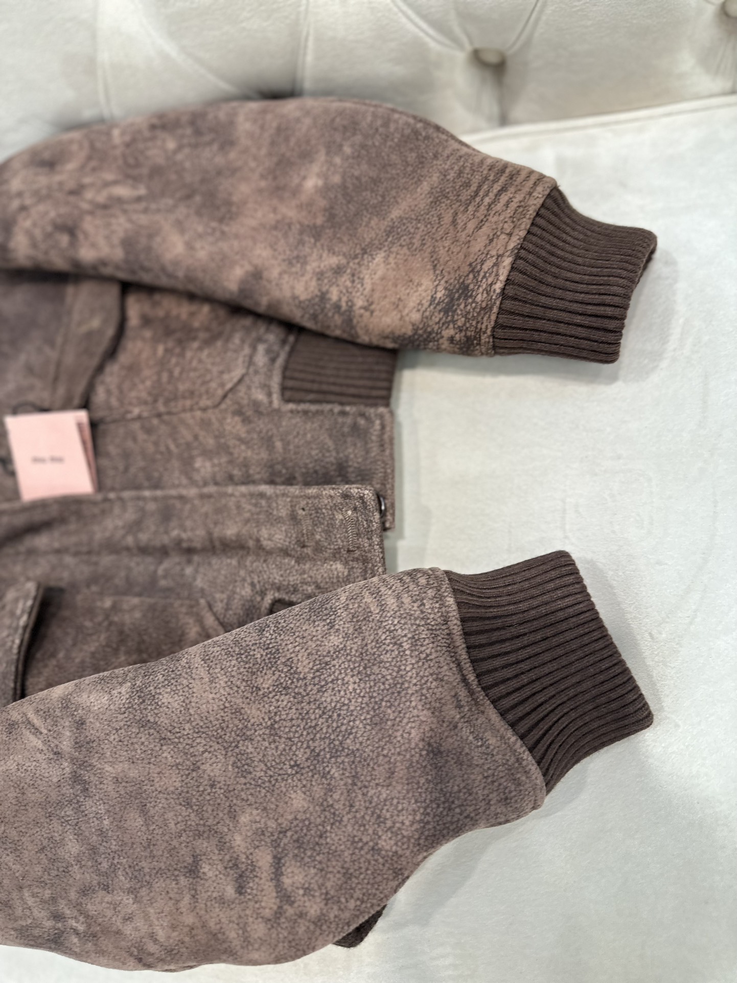 这款衣服是AAAAA 1:1 质量 (非常棒). 使用了和原版一模一样的材料. 商标部分也保持了和缪缪/Miu Miu一样. 图片拍摄是实物衣服拍摄, 您所收到的实物保证和我们图片一模一样.