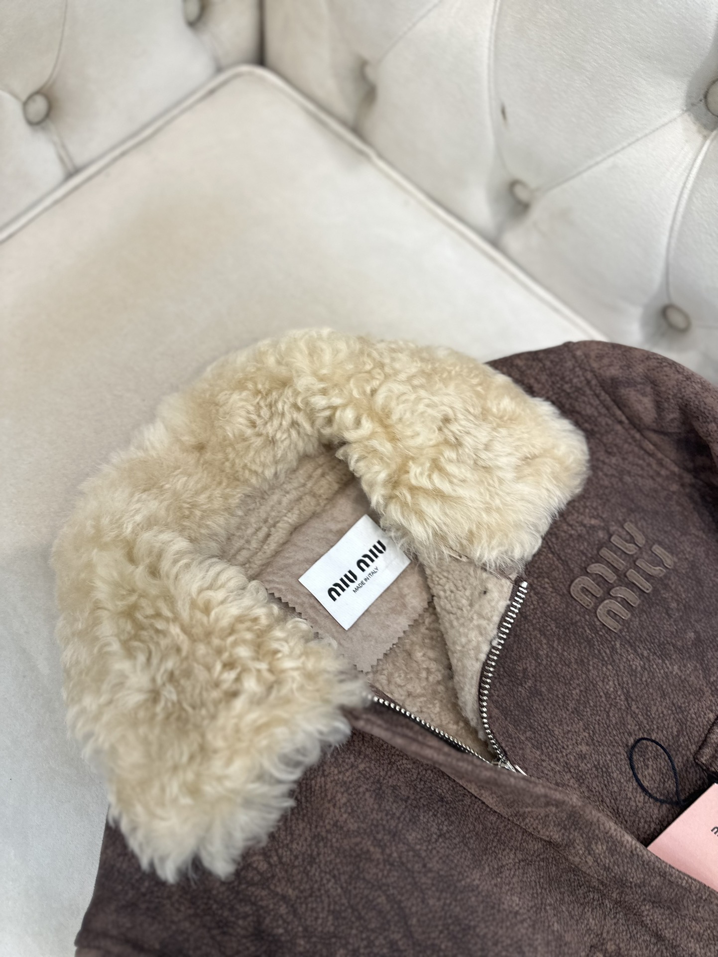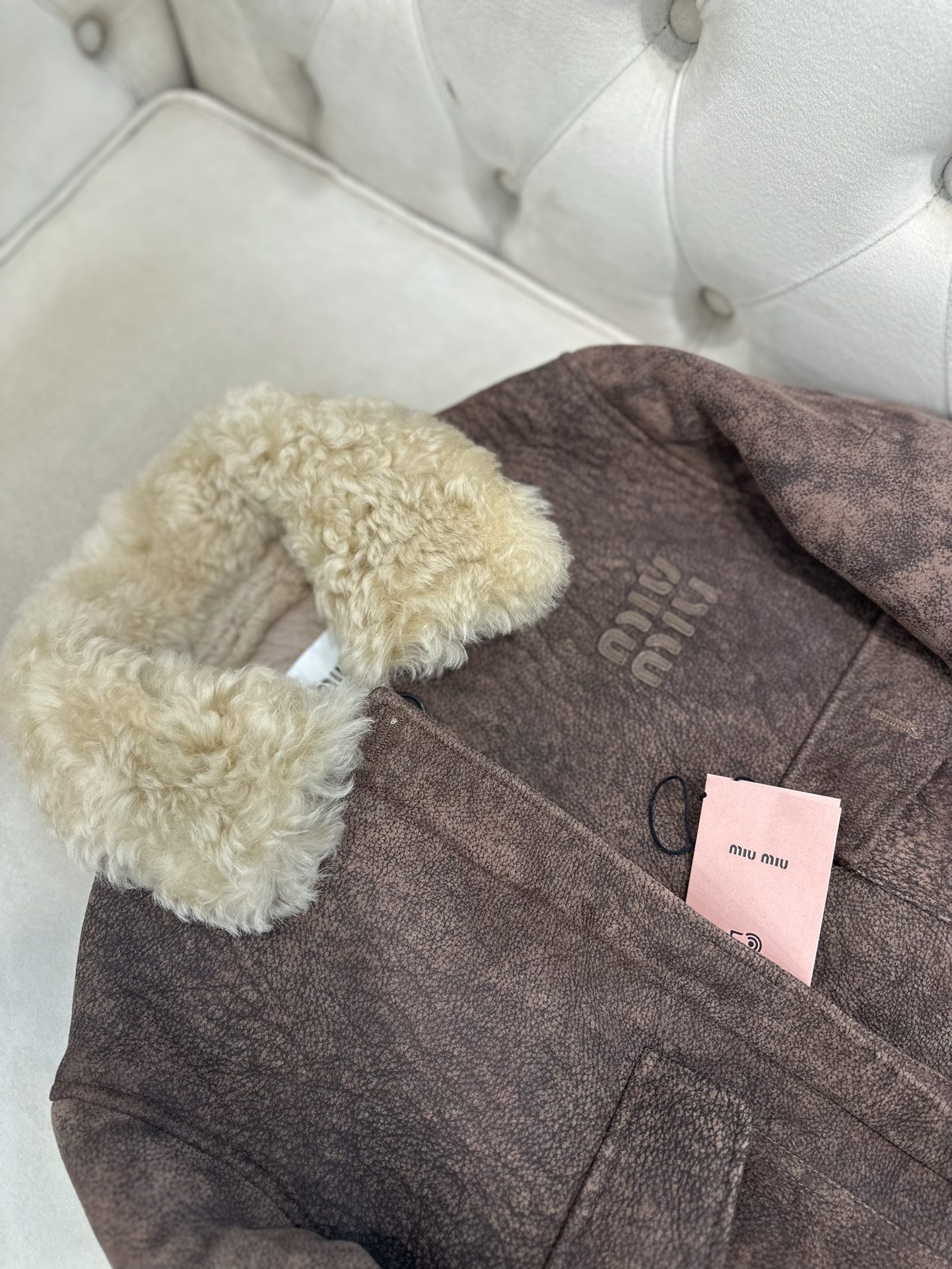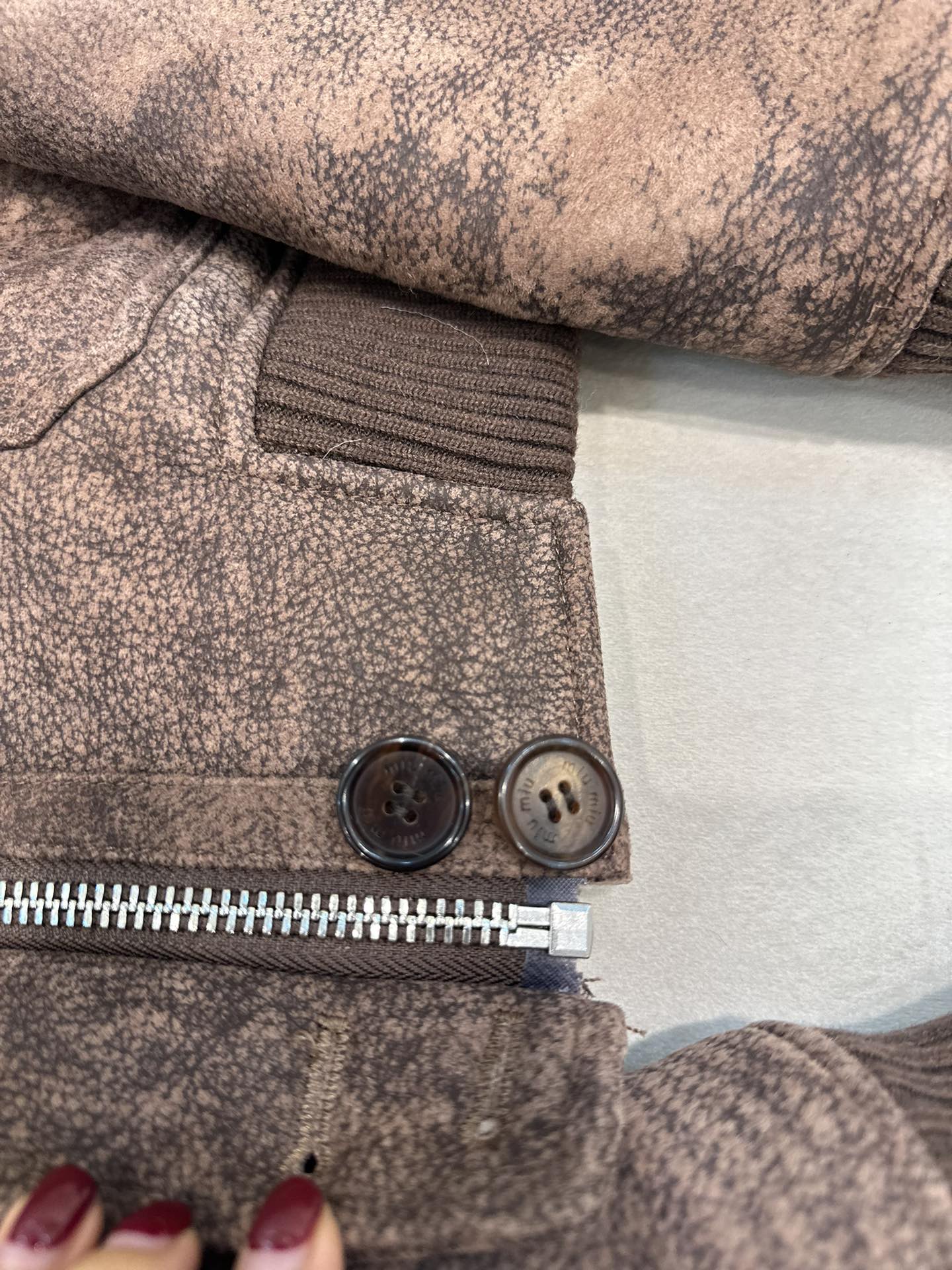 这款衣服是AAAAA 1:1 质量 (非常棒). 使用了和原版一模一样的材料. 商标部分也保持了和缪缪/Miu Miu一样. 图片拍摄是实物衣服拍摄, 您所收到的实物保证和我们图片一模一样.