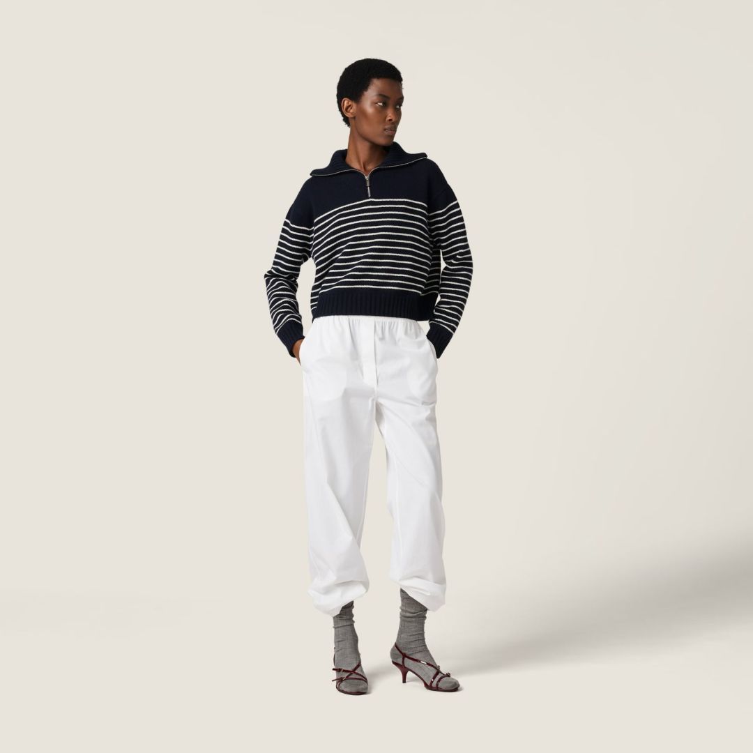 这款衣服是AAAAA 1:1 质量 (非常棒). 使用了和原版一模一样的材料. 商标部分也保持了和缪缪/Miu Miu一样. 图片拍摄是实物衣服拍摄, 您所收到的实物保证和我们图片一模一样.