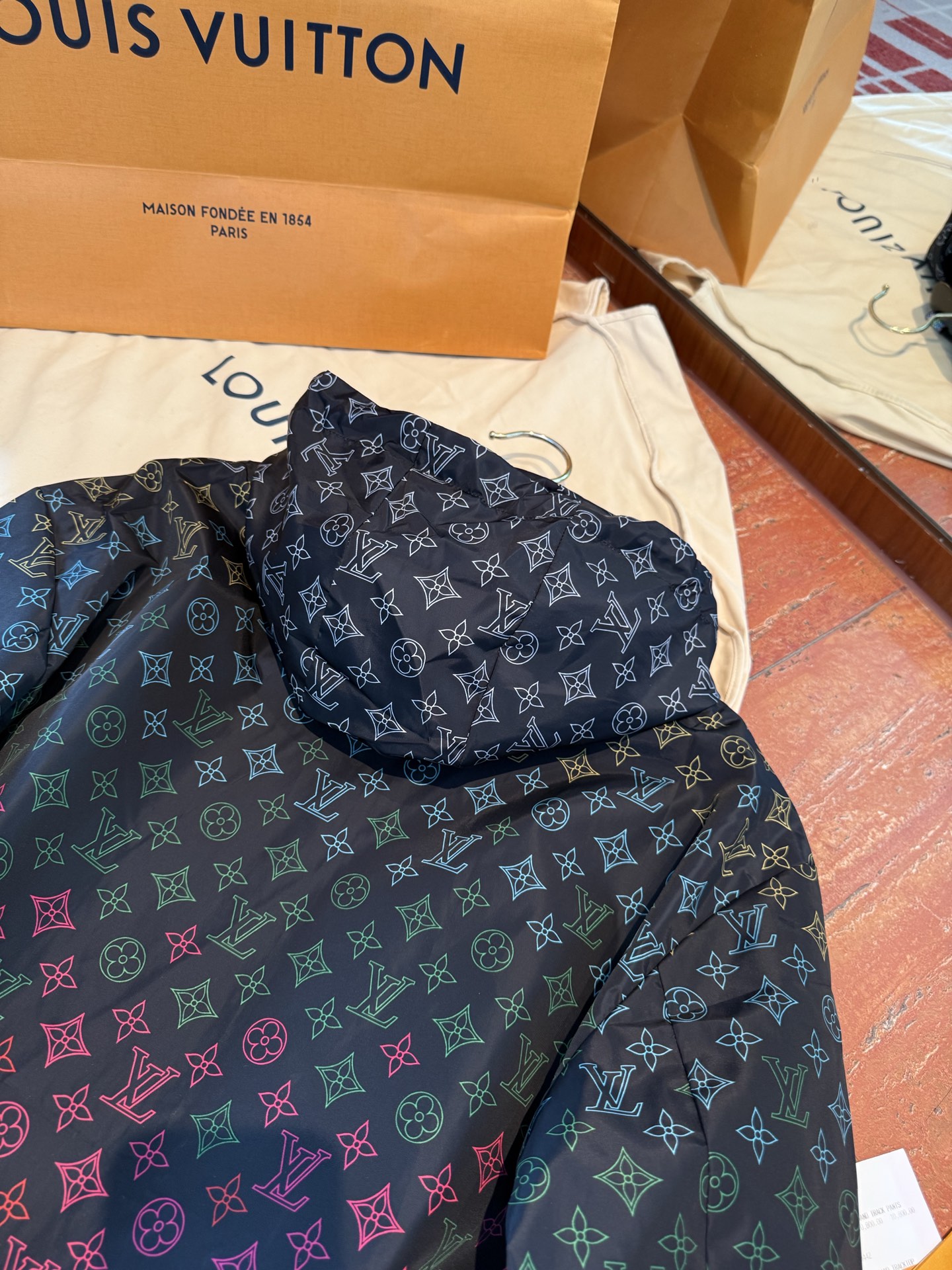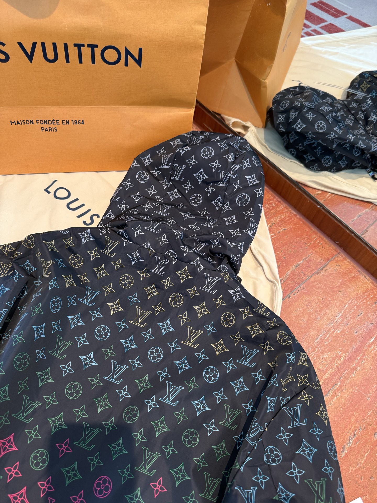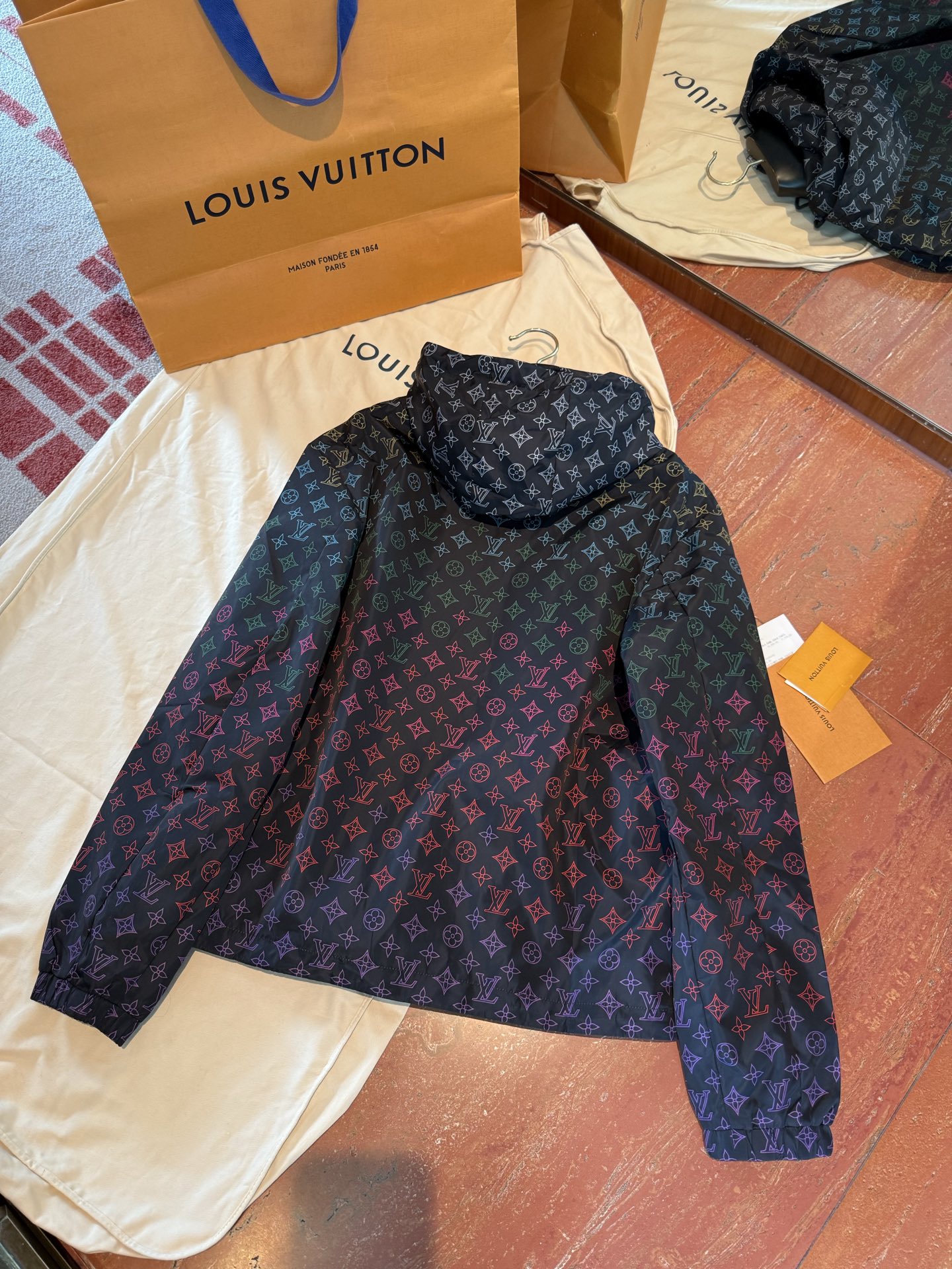 这款衣服是AAAAA 1:1 质量 (非常棒). 使用了和原版一模一样的材料. 商标部分也保持了和路易威登/Louis Vuitton一样. 图片拍摄是实物衣服拍摄, 您所收到的实物保证和我们图片一模一样.