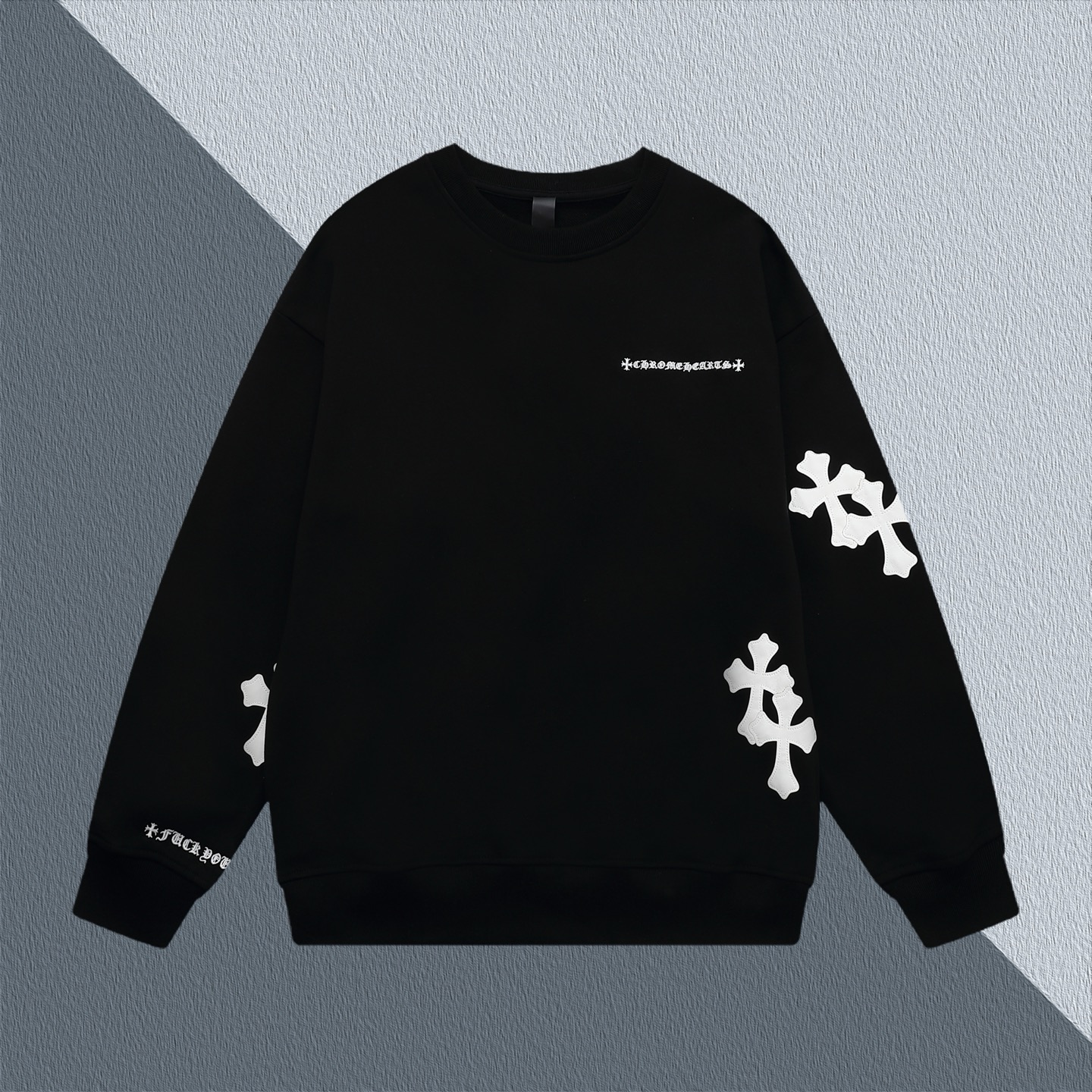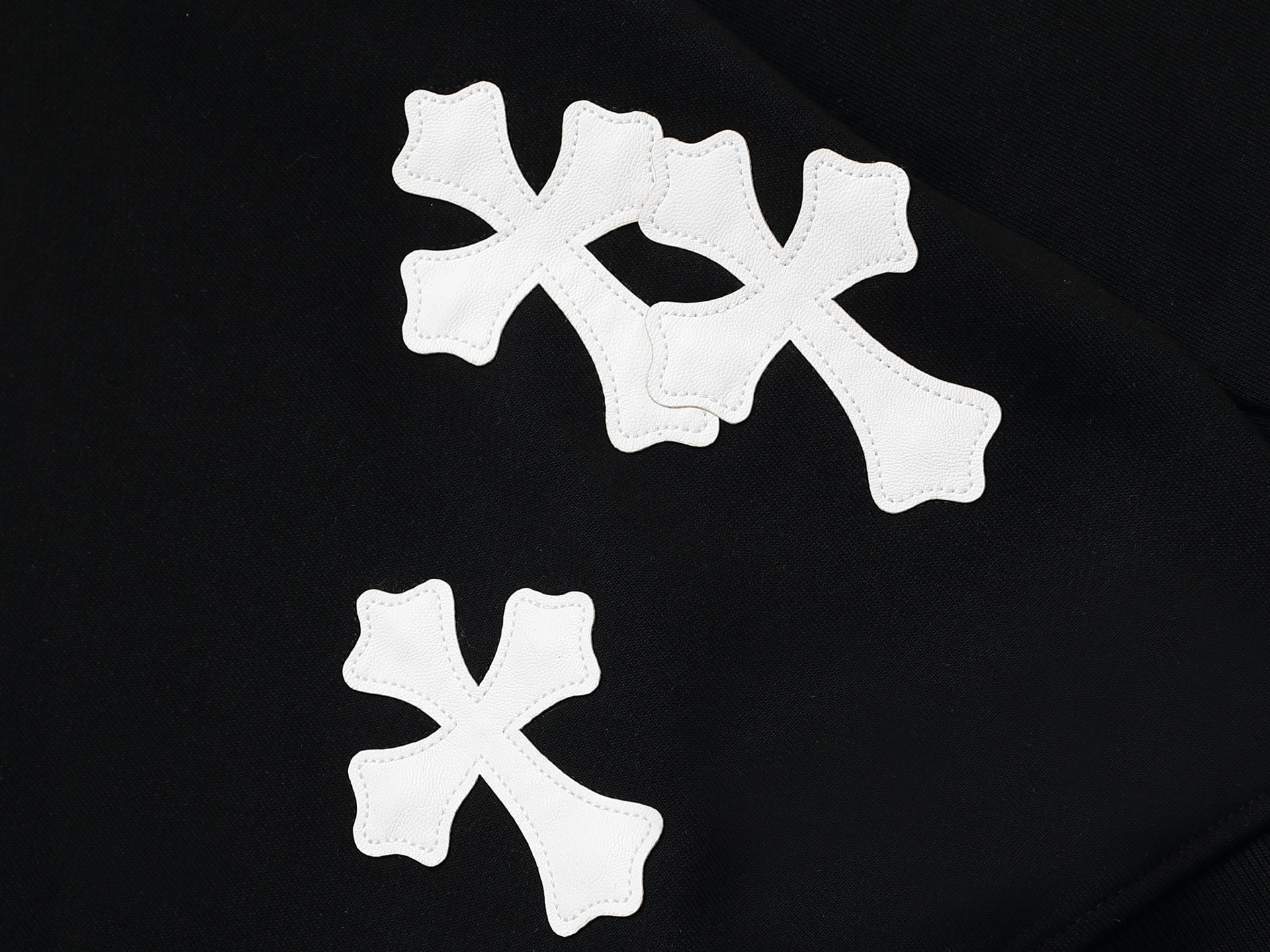 这款衣服是AAAAA 1:1 质量 (非常棒). 使用了和原版一模一样的材料. 商标部分也保持了和克罗心/Chrome Hearts一样. 图片拍摄是实物衣服拍摄, 您所收到的实物保证和我们图片一模一样.