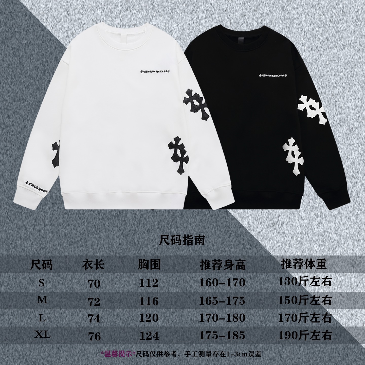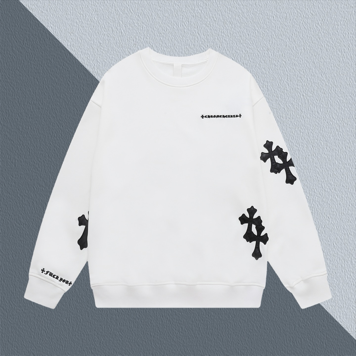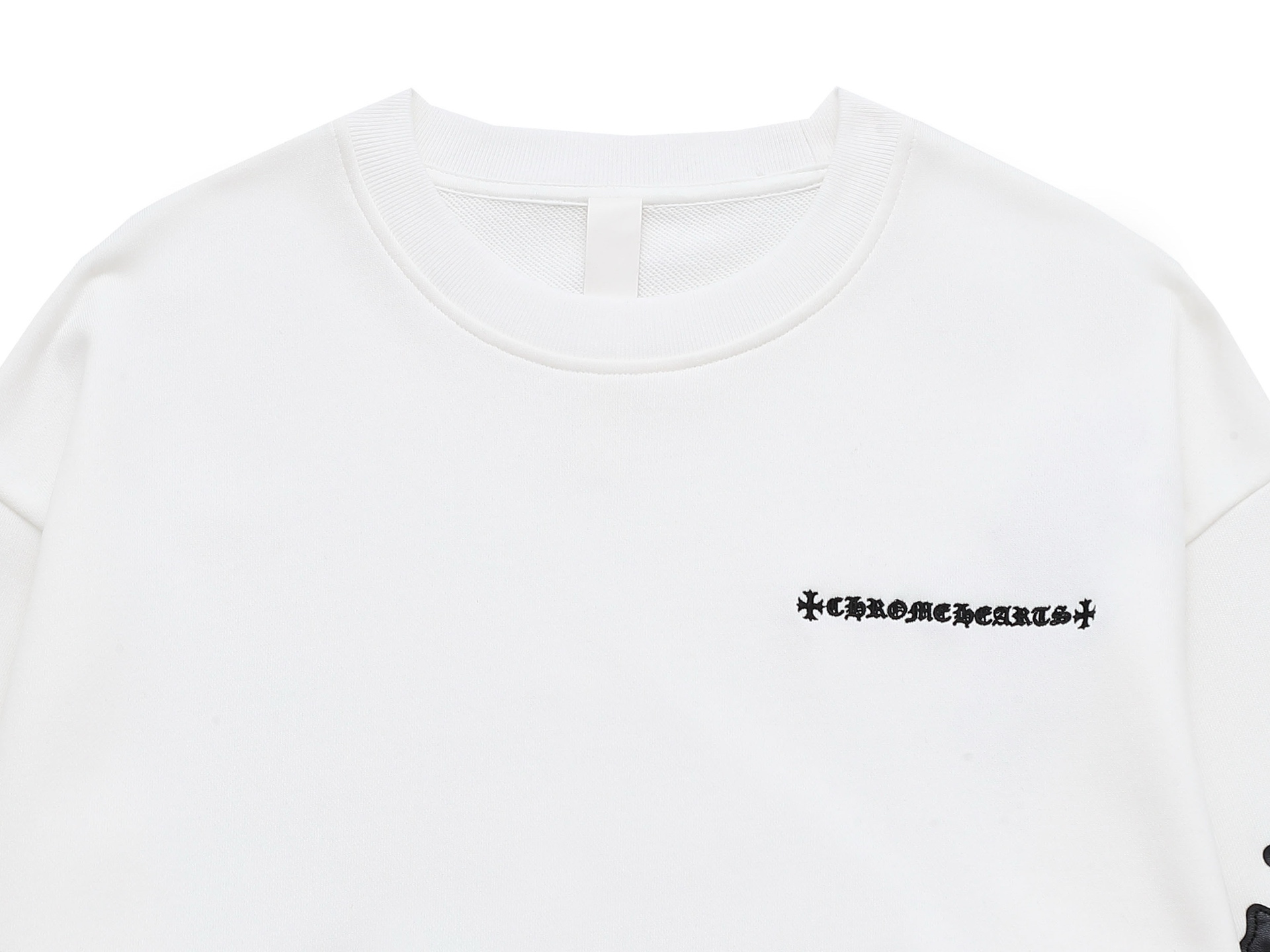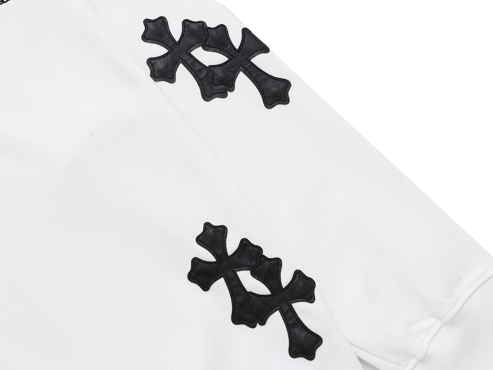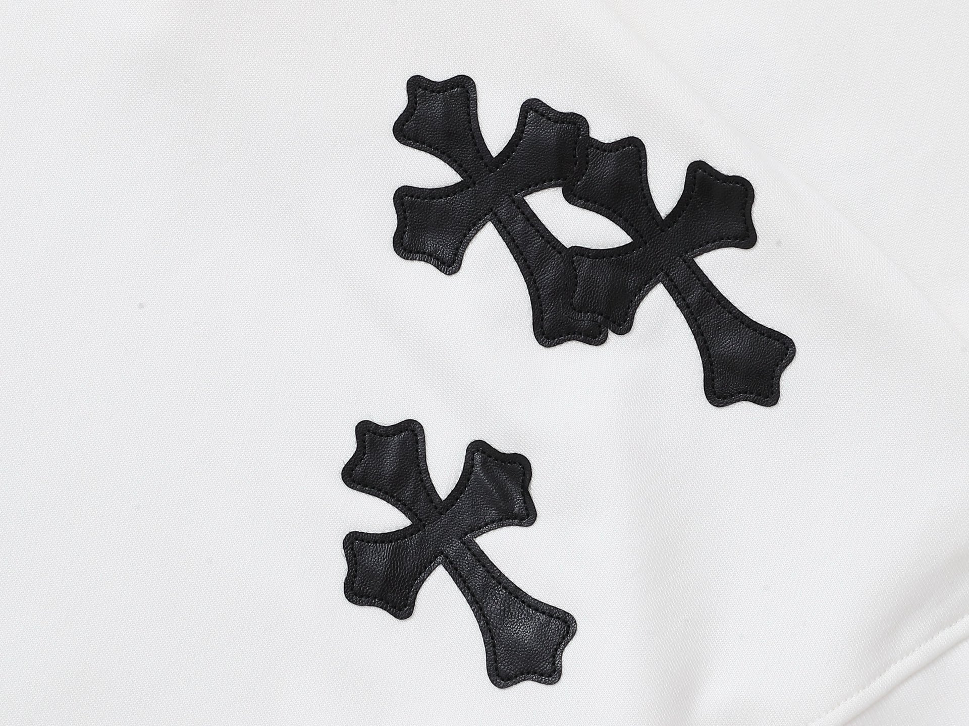 这款衣服是AAAAA 1:1 质量 (非常棒). 使用了和原版一模一样的材料. 商标部分也保持了和克罗心/Chrome Hearts一样. 图片拍摄是实物衣服拍摄, 您所收到的实物保证和我们图片一模一样.