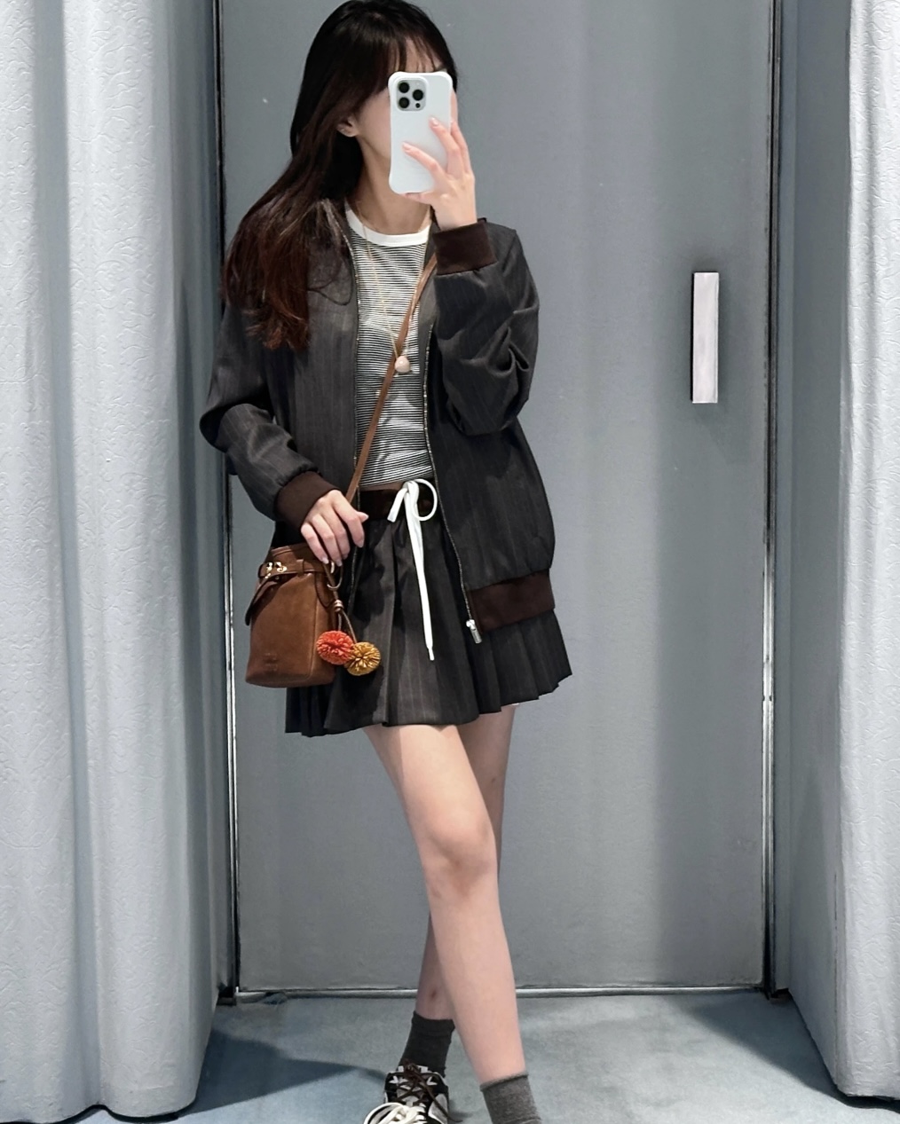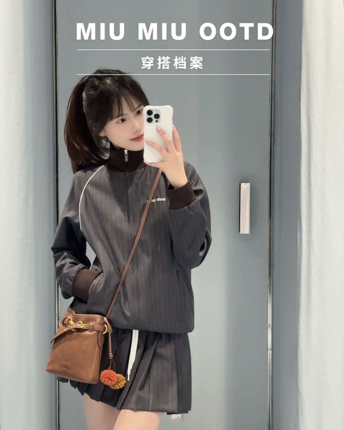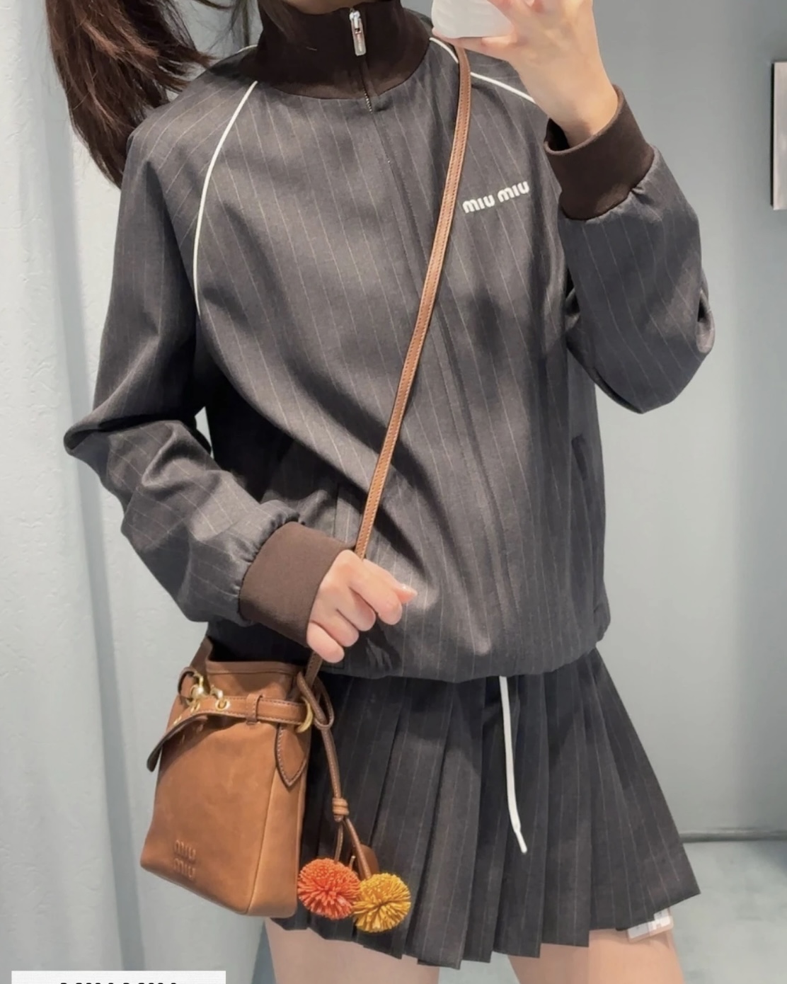 这款衣服是AAAAA 1:1 质量 (非常棒). 使用了和原版一模一样的材料. 商标部分也保持了和缪缪/Miu Miu一样. 图片拍摄是实物衣服拍摄, 您所收到的实物保证和我们图片一模一样.