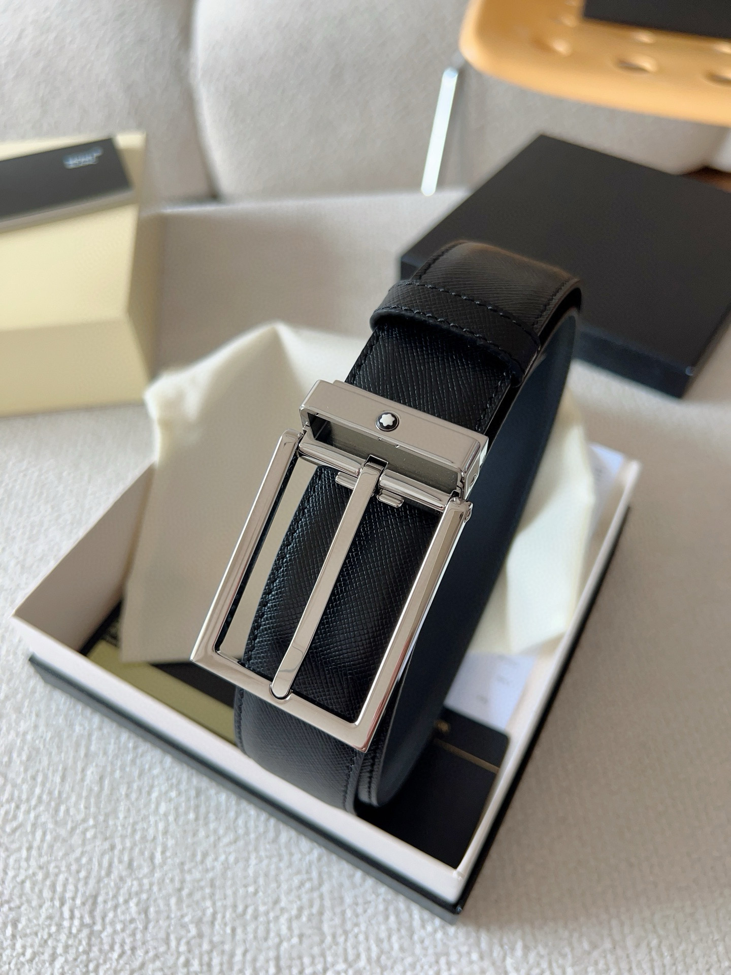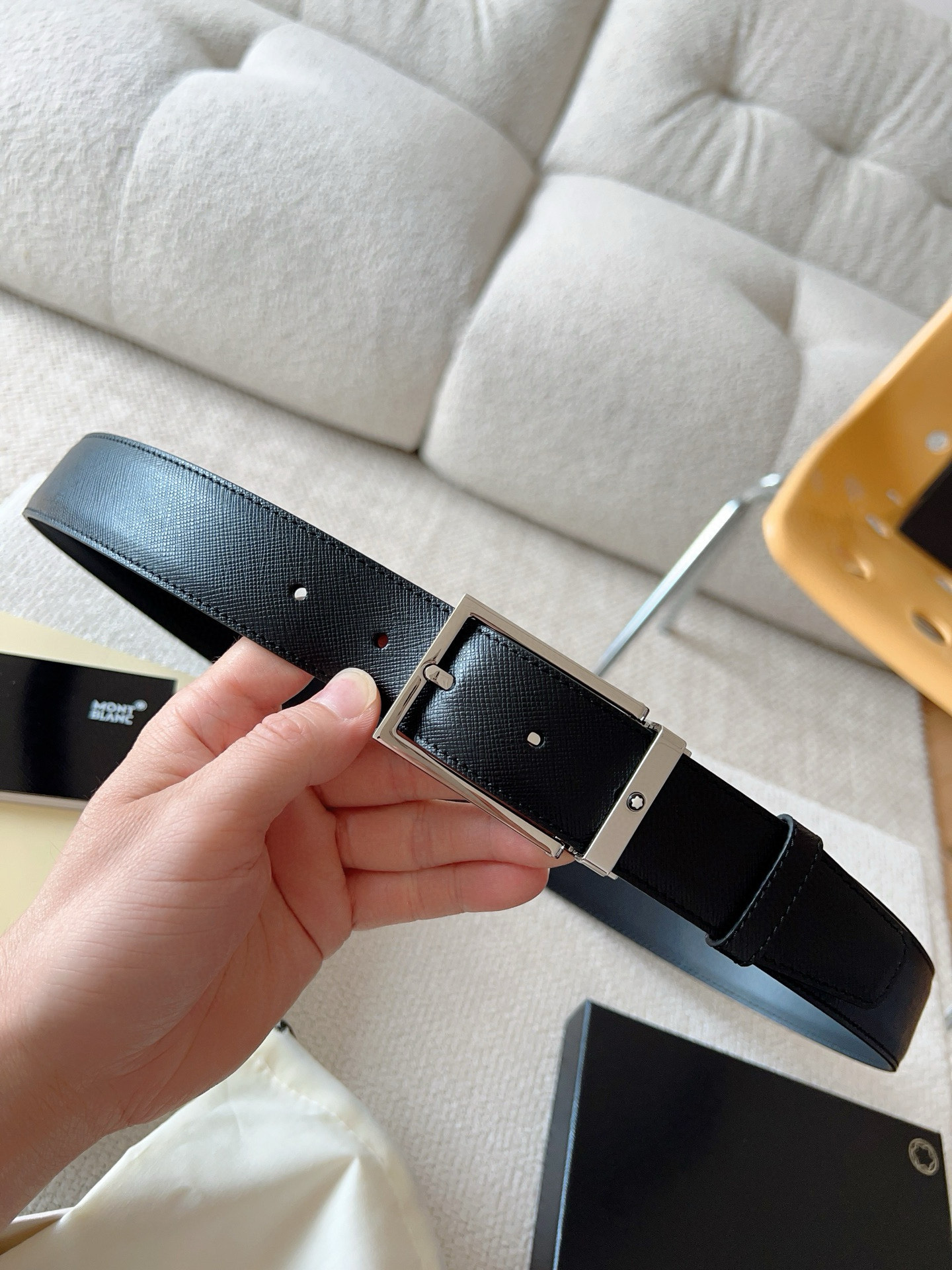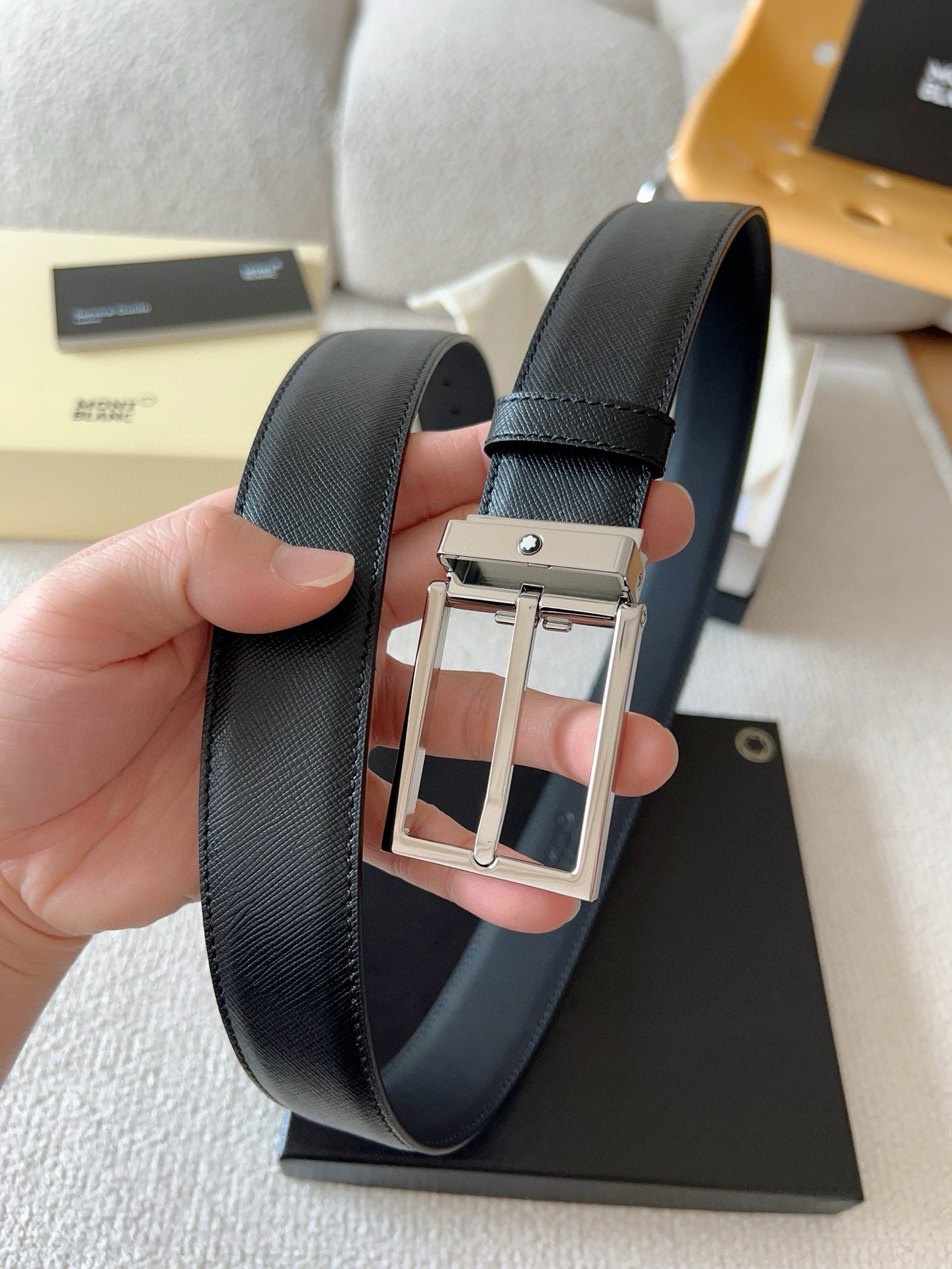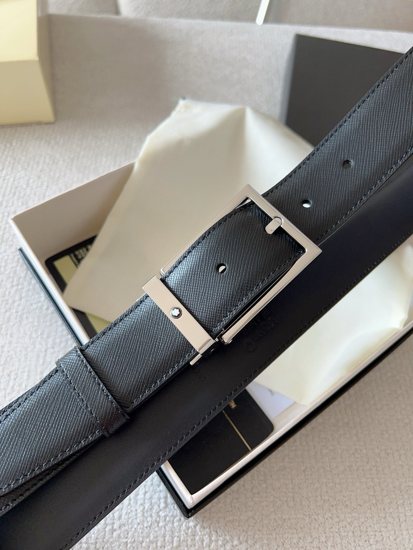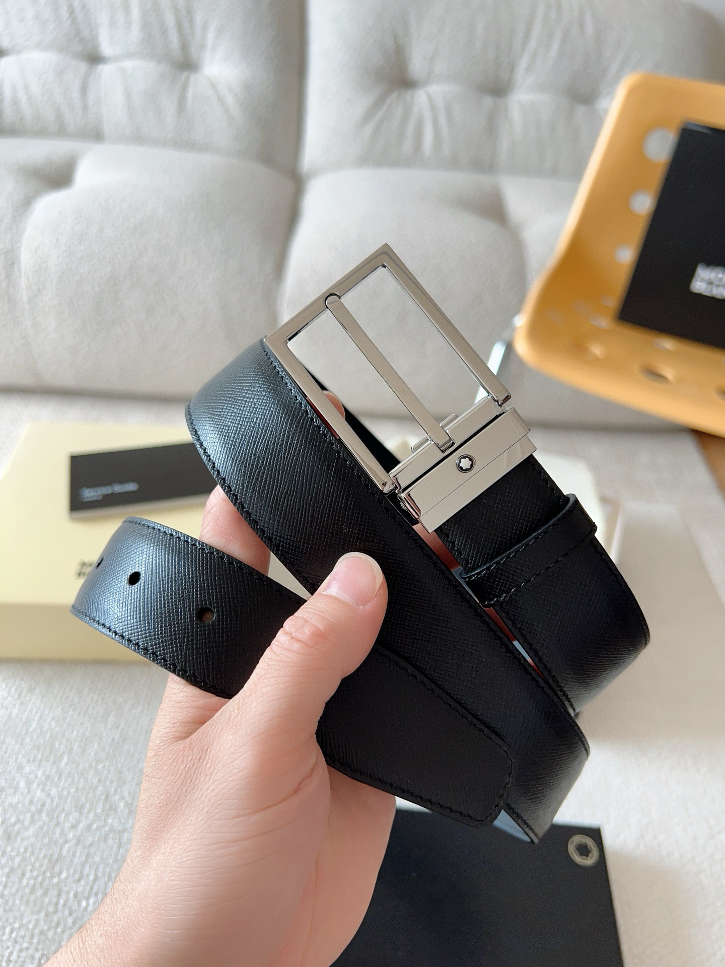 这款皮带是AAAAA 1:1 质量 (非常棒). 使用了和原版一模一样的材料. 商标部分也保持了和万宝龙/Montblanc一样. 图片拍摄是实物皮带拍摄, 您所收到的实物保证和我们图片一模一样.