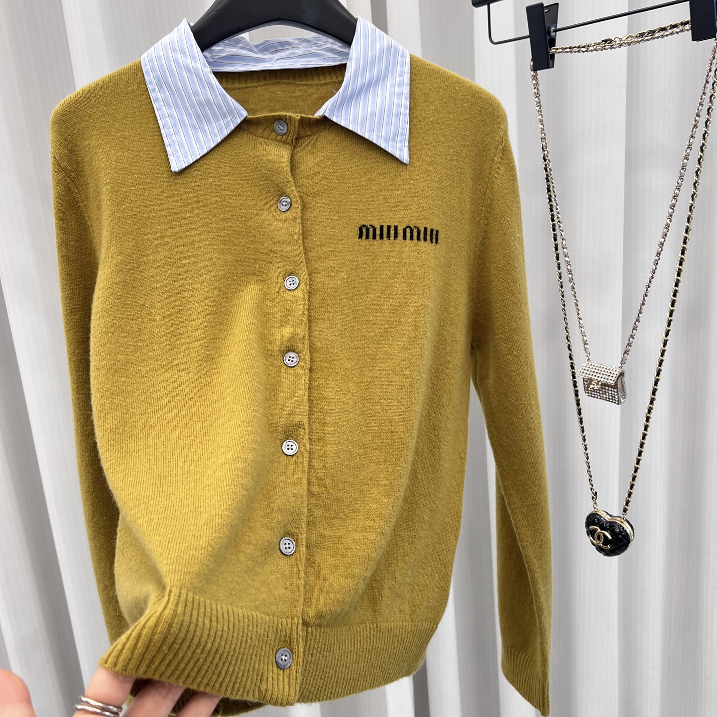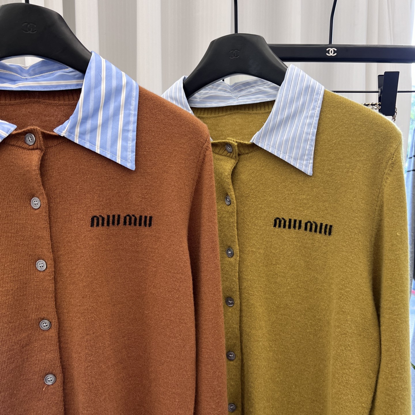 这款衣服是AAAAA 1:1 质量 (非常棒). 使用了和原版一模一样的材料. 商标部分也保持了和缪缪/Miu Miu一样. 图片拍摄是实物衣服拍摄, 您所收到的实物保证和我们图片一模一样.